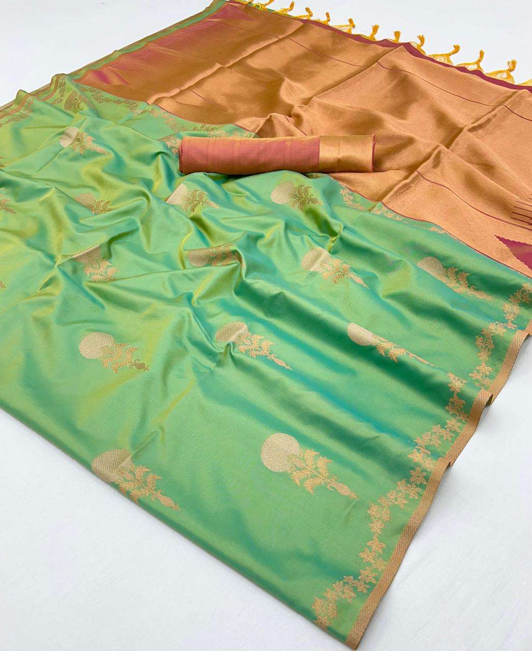💯*FEATURES*💯 *TWO TONE SILK - HANDLOOM WEAVING - CONTRAST PALLU & BLOUSE*