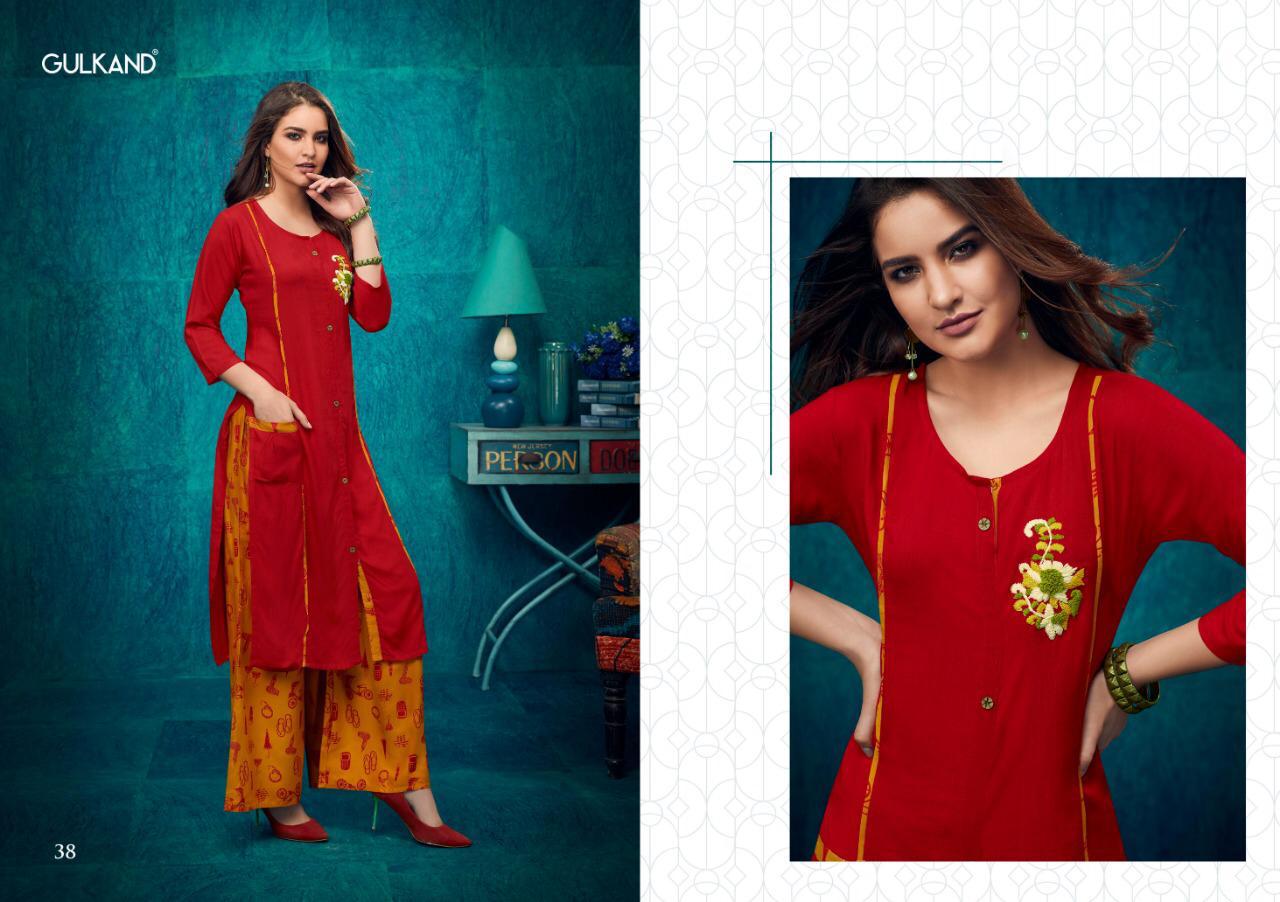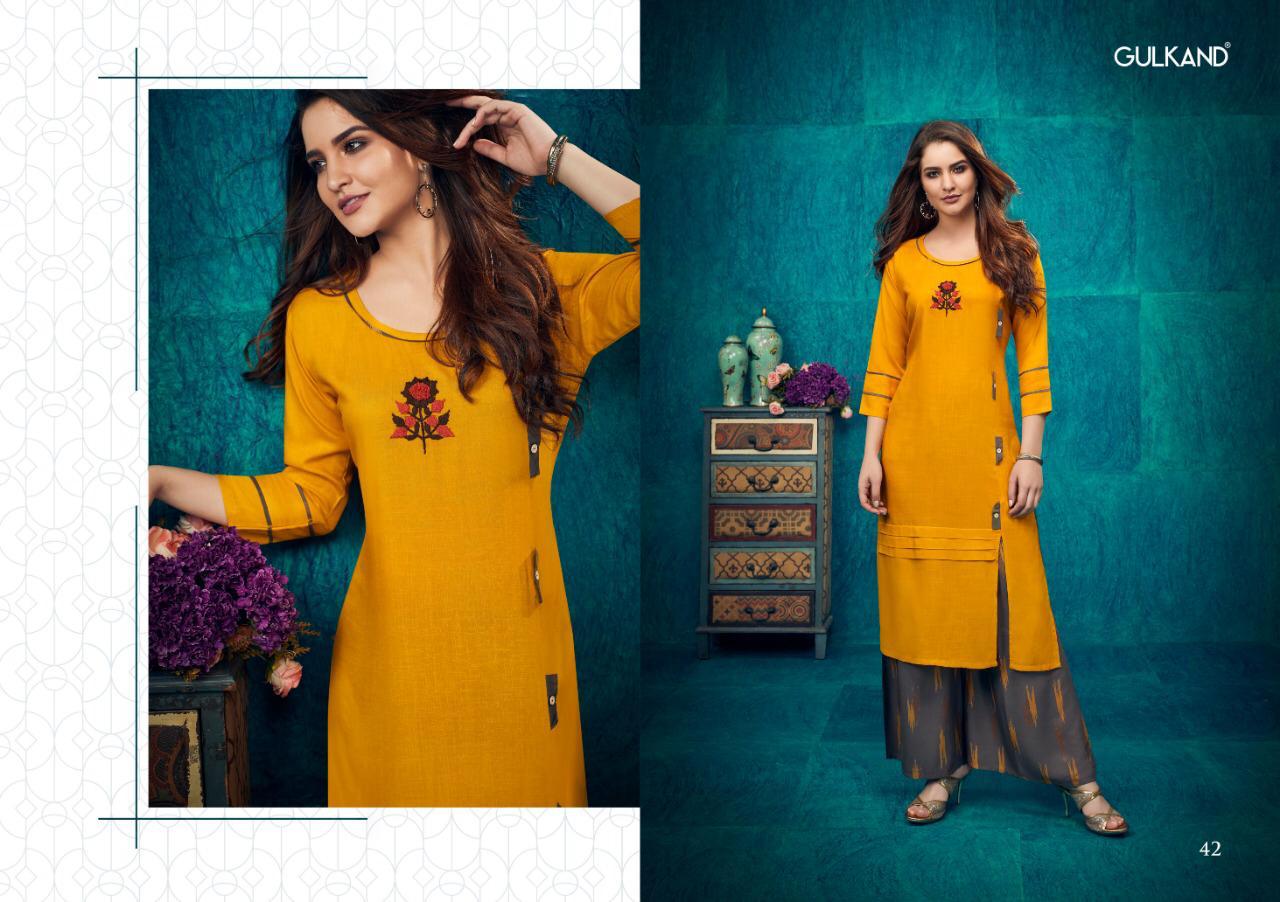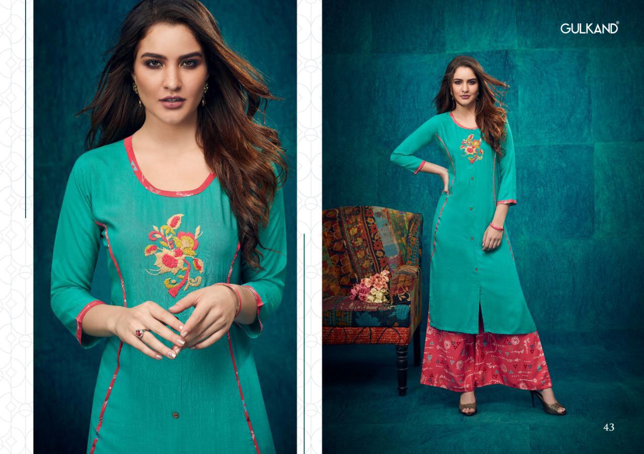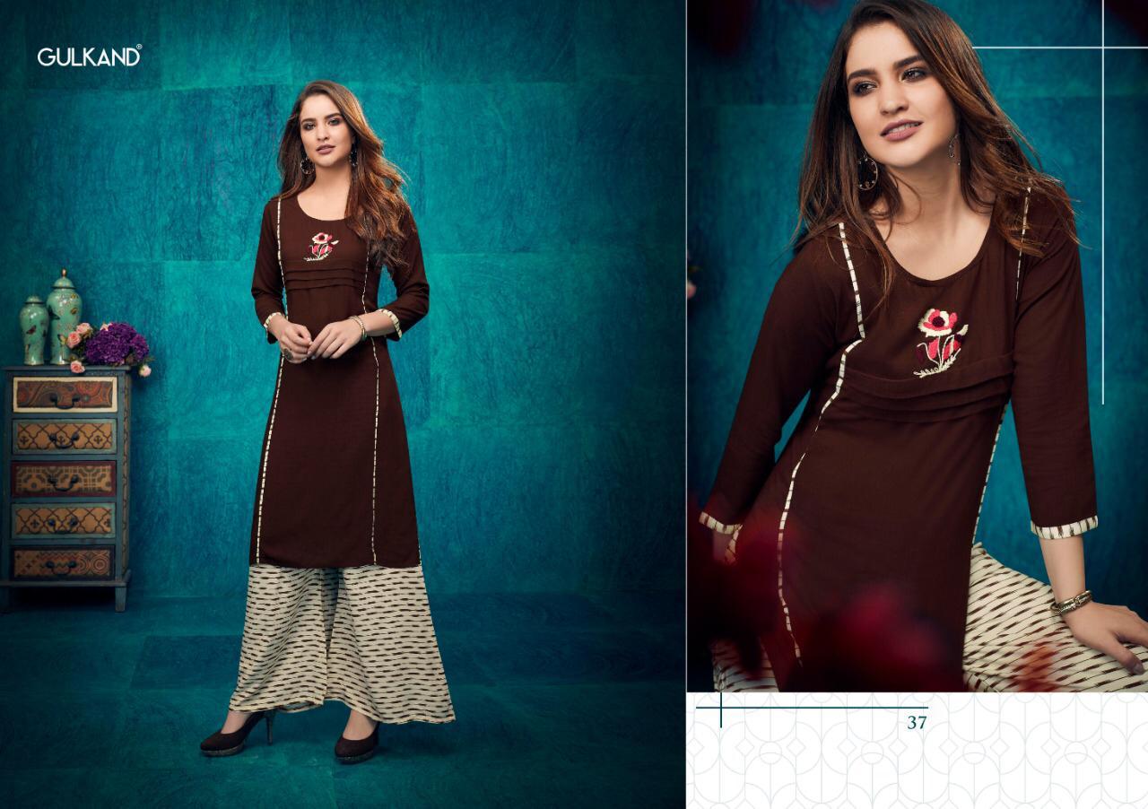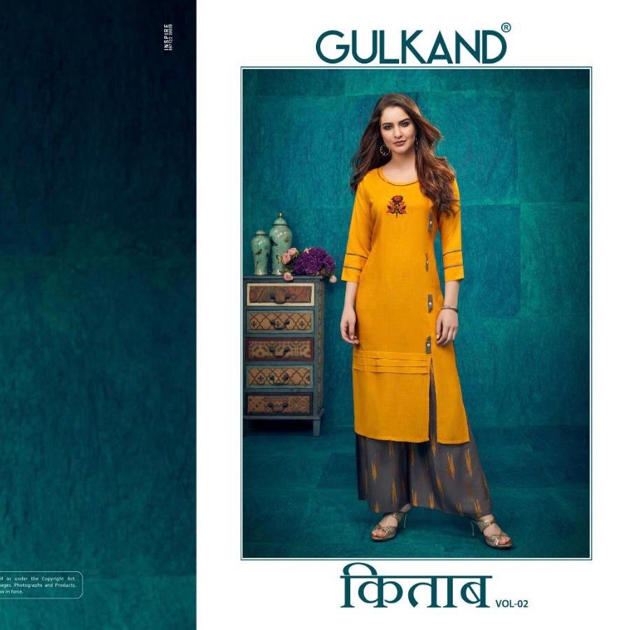 Buy Online Kitab Vol 2 By Gulkand Reyon Kurti With Plazzo Wholesale Supplier Surat 8 Pcs of Full Catalogue at Wholesale Price. Looking for Kitab Vol 2 By Gulkand Reyon Kurti With Plazzo Wholesale Supplier Surat Full Catalouge at Best Price? Buy Now Kitab Vol 2 By Gulkand Reyon Kurti With Plazzo Wholesale Supplier Surat at Wholesale Rate of Rs 5800 with Total 8 Pcs from authroized dealer and supplier of Brand. Cost of Each piece is just only Rs 725 which is very low and affordable price to resale the product in your retail store ,This is Surat based Wholesale Supplier & Dealer of Brand. Click on Brand name to Know more about Brand's products.Call or Whatsapp on 9898838984 for booking or enquiry