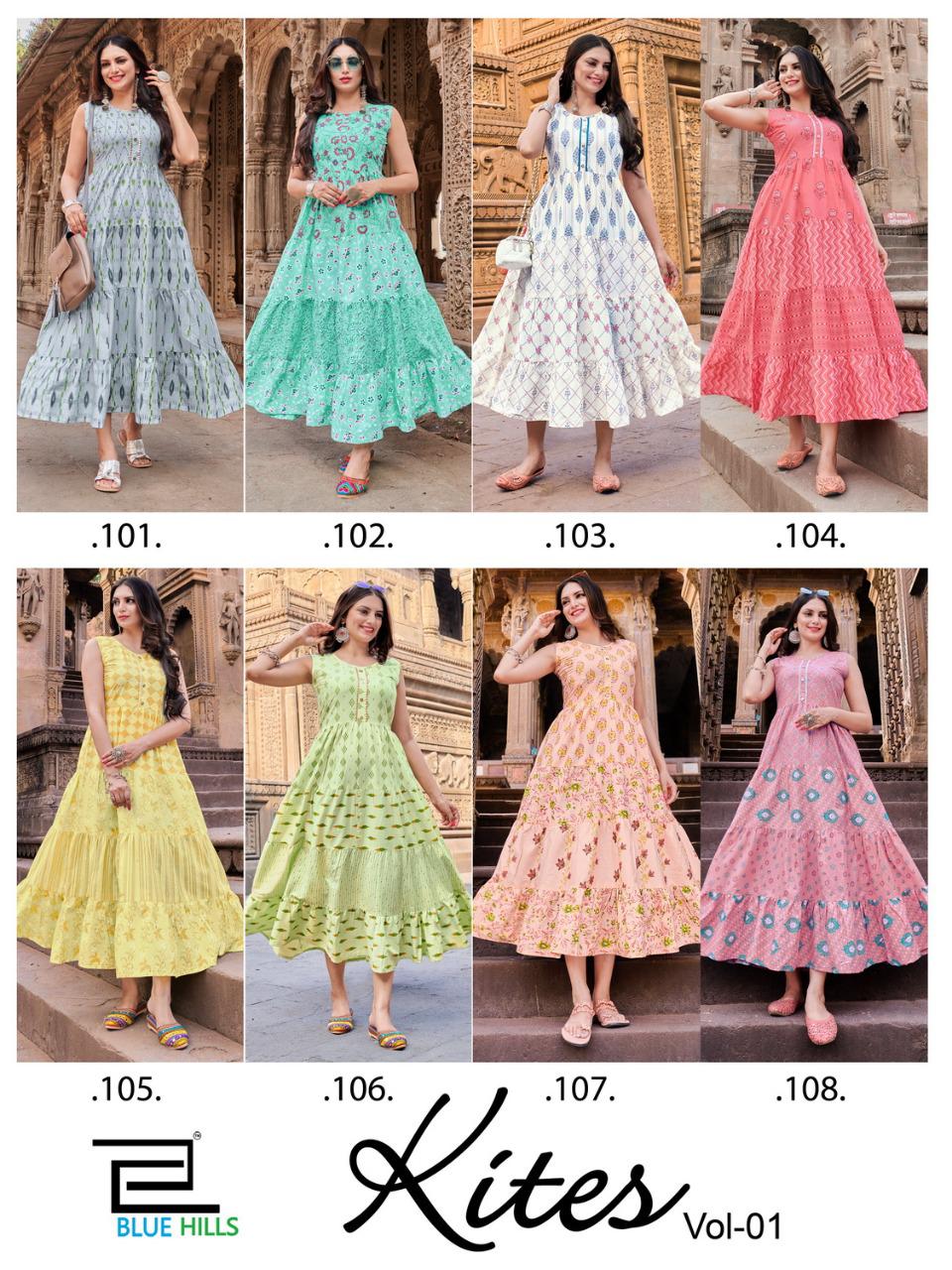 # *BLUE HILLS* Presents *KITES VOL 1* We are launching our new catalogue Fabric - *COTTON CAMRIC* Length - 50+ Size - M (38) L (40) XL (42) XXL (44) 3XL (46) 4XL (48) 5XL (50) 6XL (52) *Rate - 599+GST* Set to set 8 Beautiful Colors Dispatch - 3 to 5 days |