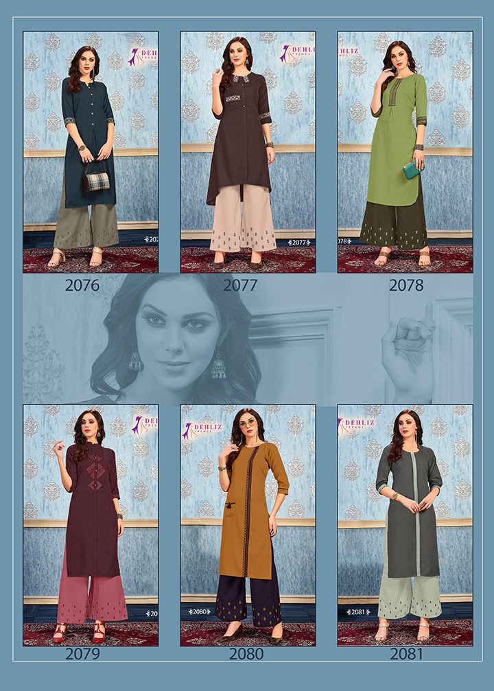 Buy Online Kitty By Dehliz Trendz Kurtis With Plazzo Wholesale Supplier Surat 6 Pcs of Full Catalogue at Wholesale Price. Looking for Kitty By Dehliz Trendz Kurtis With Plazzo Wholesale Supplier Surat Full Catalouge at Best Price? Buy Now Kitty By Dehliz Trendz Kurtis With Plazzo Wholesale Supplier Surat at Wholesale Rate of Rs 3570 with Total 6 Pcs from authroized dealer and supplier of Brand. Cost of Each piece is just only Rs 595 which is very low and affordable price to resale the product in your retail store ,This is Surat based Wholesale Supplier & Dealer of Brand. Click on Brand name to Know more about Brand's products.Call or Whatsapp on 9898838984 for booking or enquiry