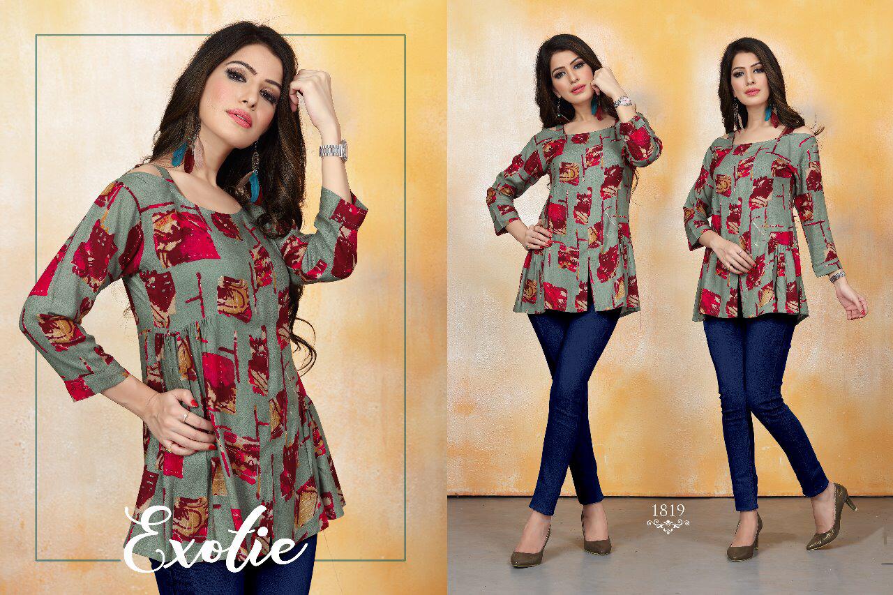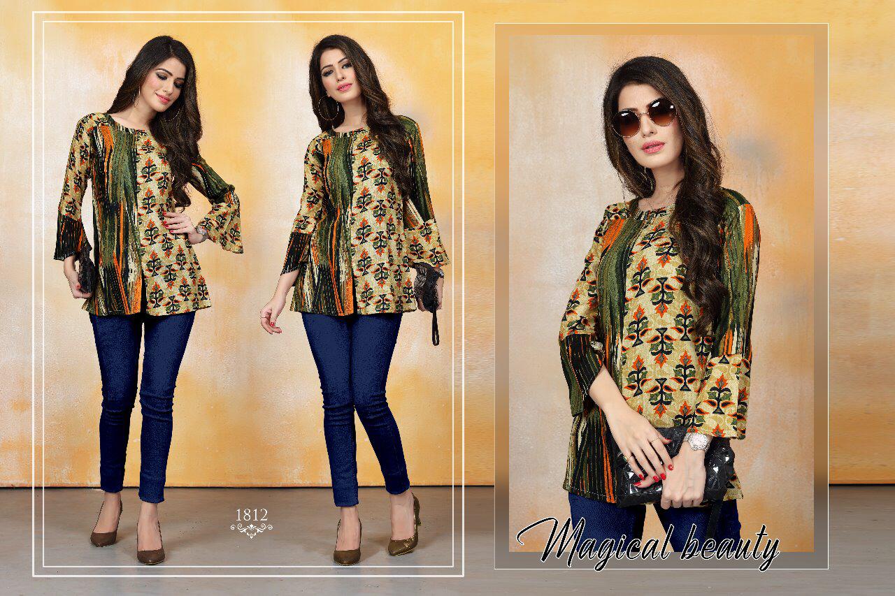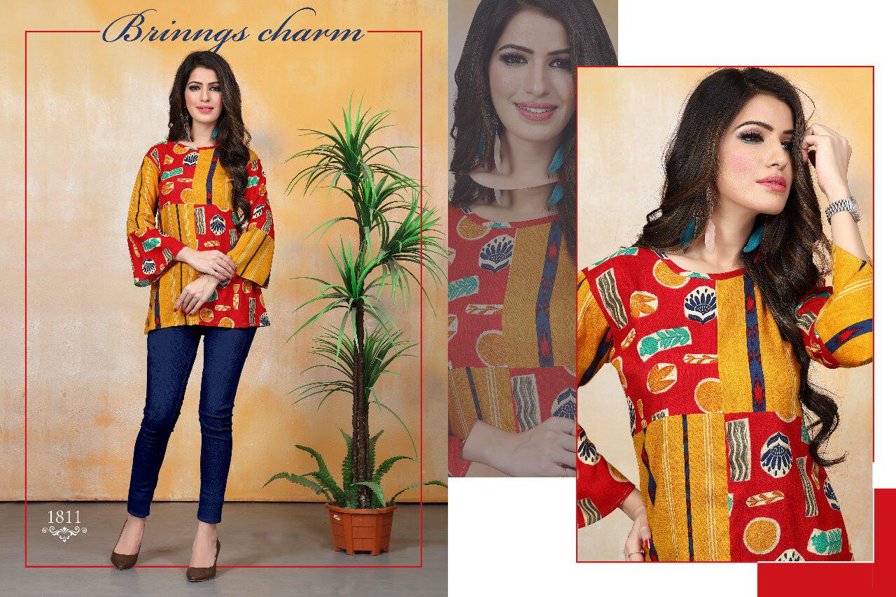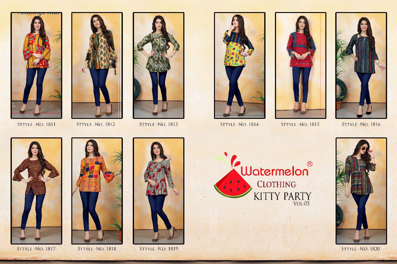 Buy Online Kitty Party 5 By Watermelon Reyon Printed Desinger Western Tops Wholesale Supplier Surat 10 Pcs of Full Catalogue at Wholesale Price. Looking for Kitty Party 5 By Watermelon Reyon Printed Desinger Western Tops Wholesale Supplier Surat Full Catalouge at Best Price? Buy Now Kitty Party 5 By Watermelon Reyon Printed Desinger Western Tops Wholesale Supplier Surat at Wholesale Rate of Rs 3450 with Total 10 Pcs from authroized dealer and supplier of WATERMELON Brand. Cost of Each piece is just only Rs 345 which is very low and affordable price to resale the product in your retail store ,This is Surat based Wholesale Supplier & Dealer of WATERMELON Brand. Click on Brand name to Know more about WATERMELON Brand's products.Call or Whatsapp on 9898838984 for booking or enquiry