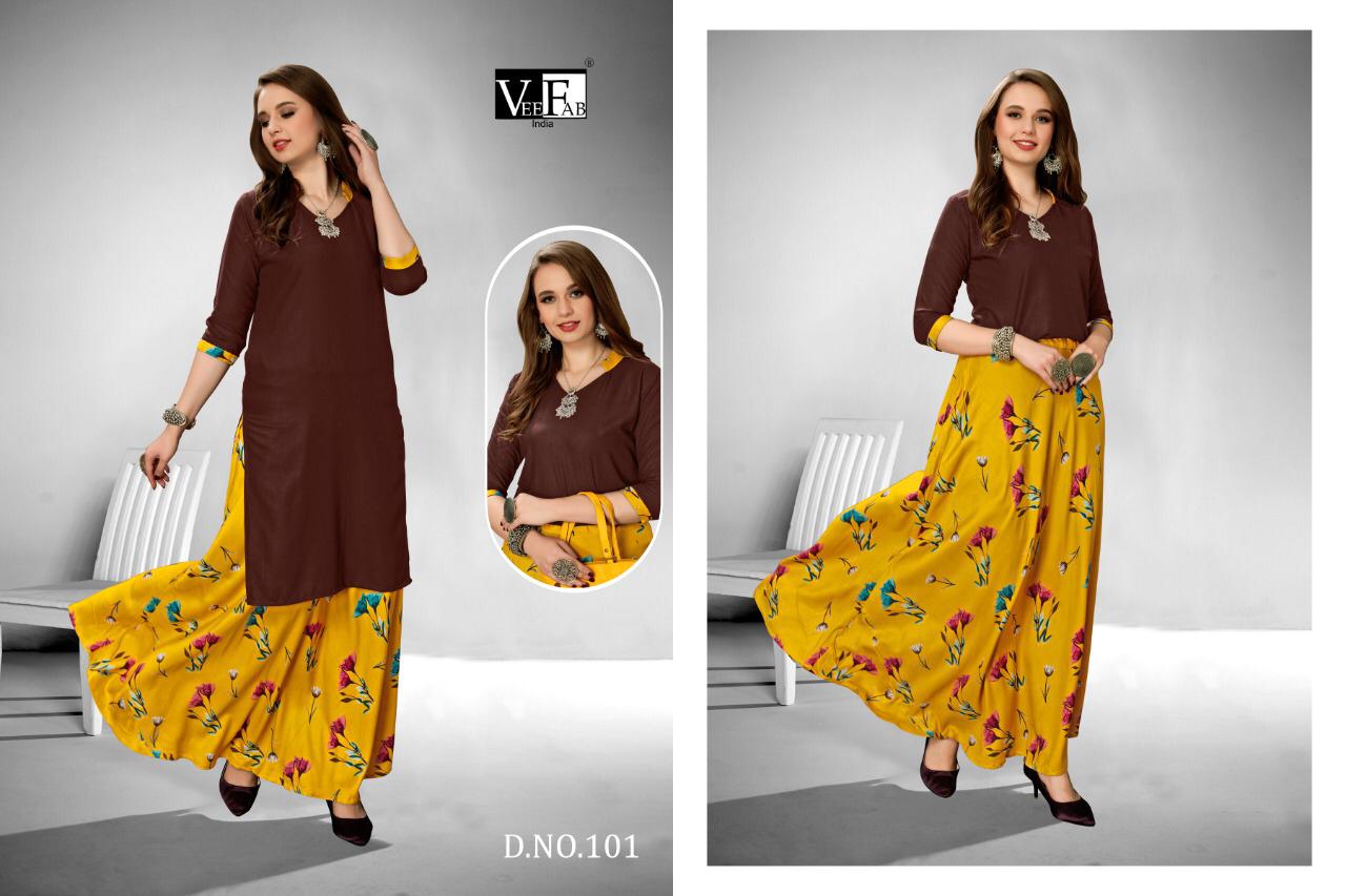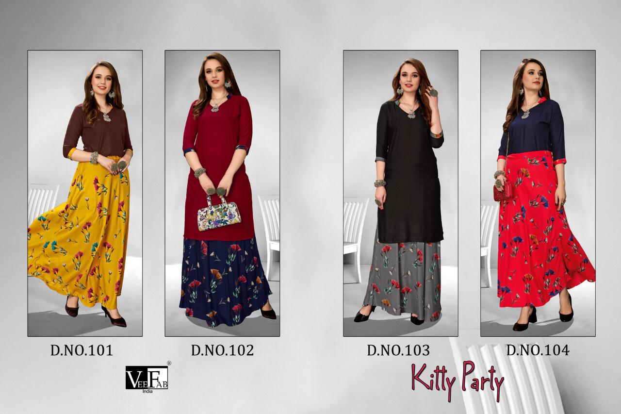 Buy Online Kitty Party By Vee Fab India Reyon Top Skirts Wholesale Supplier Gujarat 4 Pcs of Full Catalogue at Wholesale Price. Looking for Kitty Party By Vee Fab India Reyon Top Skirts Wholesale Supplier Gujarat Full Catalouge at Best Price? Buy Now Kitty Party By Vee Fab India Reyon Top Skirts Wholesale Supplier Gujarat at Wholesale Rate of Rs 2700 with Total 4 Pcs from authroized dealer and supplier of Veefab india Brand. Cost of Each piece is just only Rs 675 which is very low and affordable price to resale the product in your retail store ,This is Surat based Wholesale Supplier & Dealer of Veefab india Brand. Click on Brand name to Know more about Veefab india Brand's products.Call or Whatsapp on 9898838984 for booking or enquiry