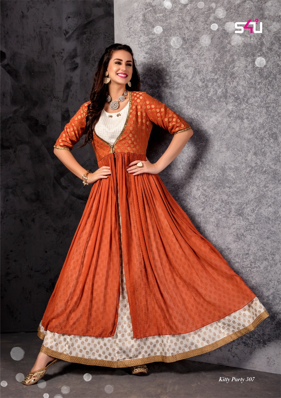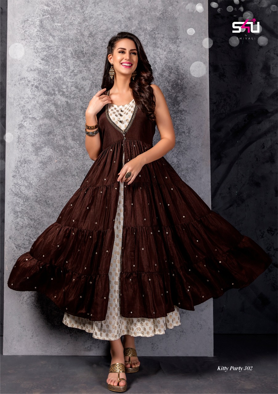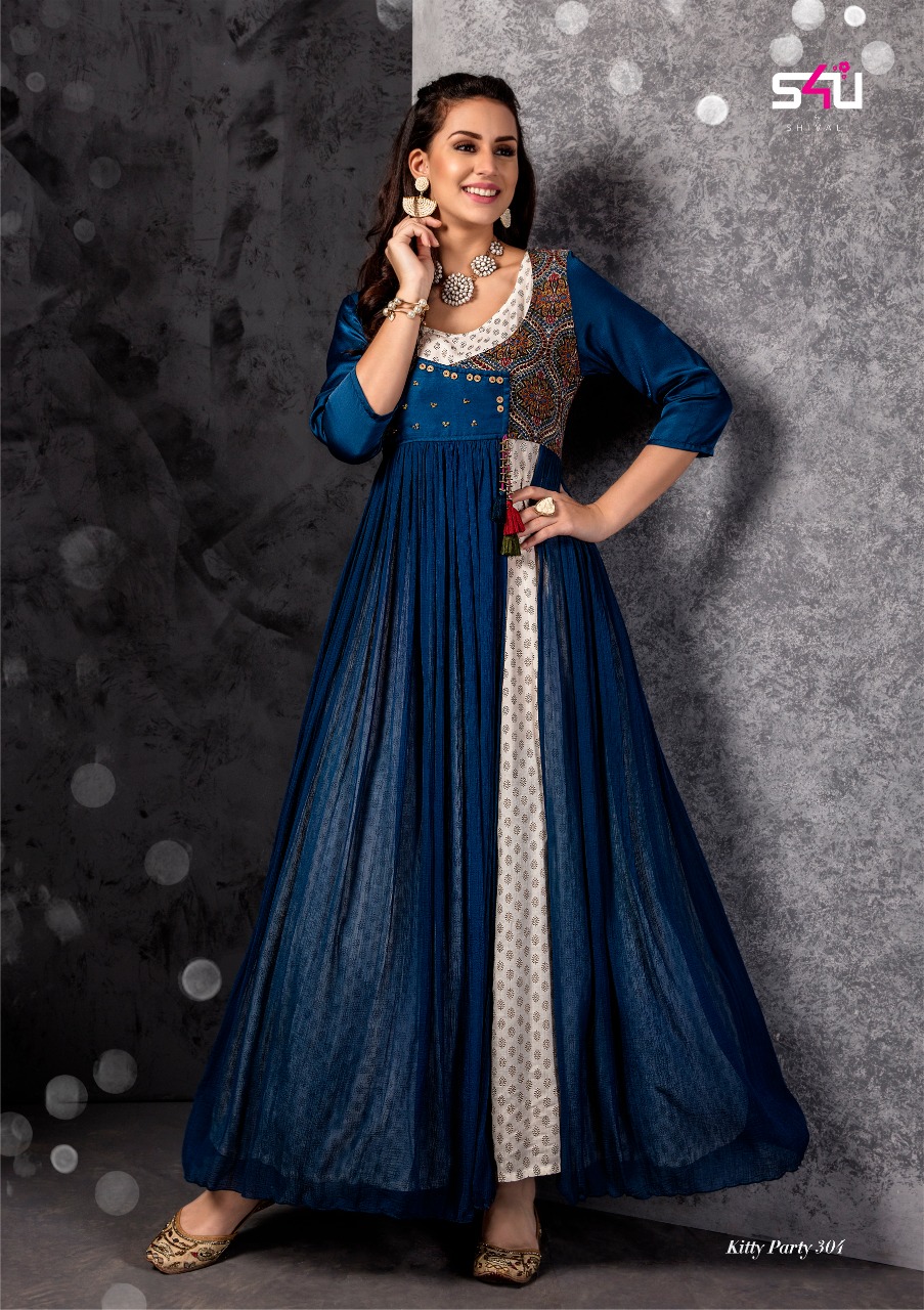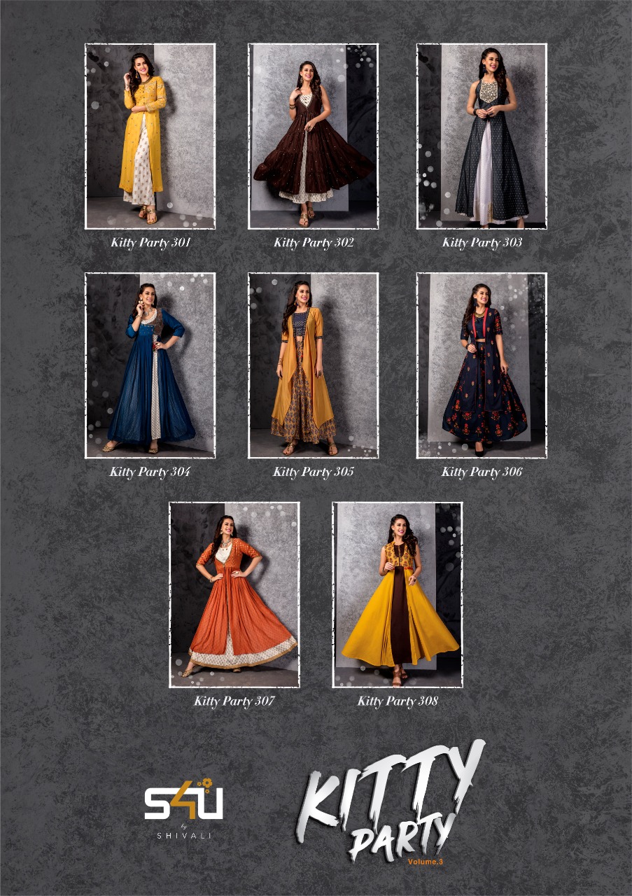 Kitty Party Vol 3 By S4u Shivali 301 Series Designer Party Wear Gown Style Kurti Catlog Wholesale Dealer Surat