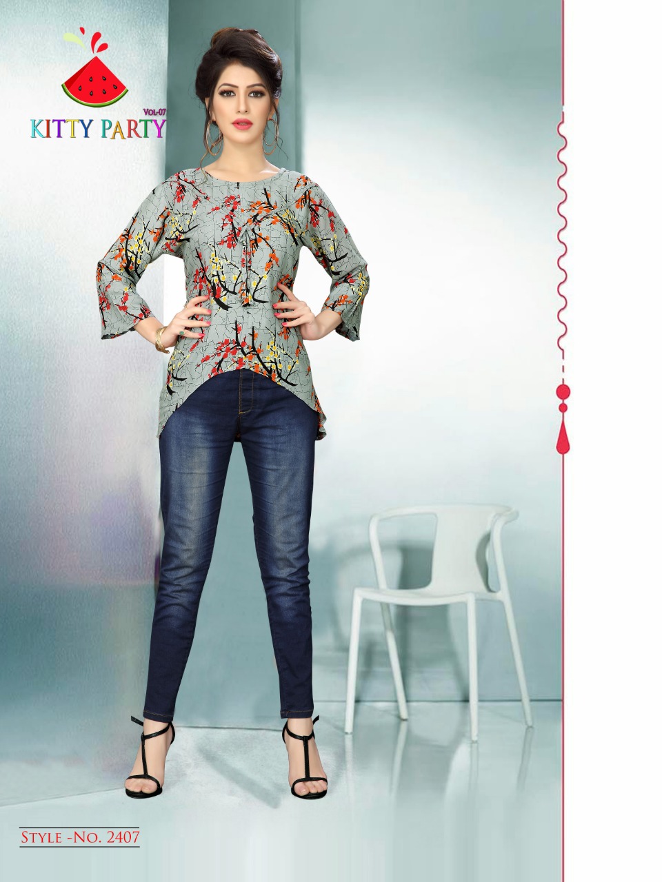 Kitty Party Vol 7 By Watermelon Reyon Printed Tops Wholesale Supplier Gujarat