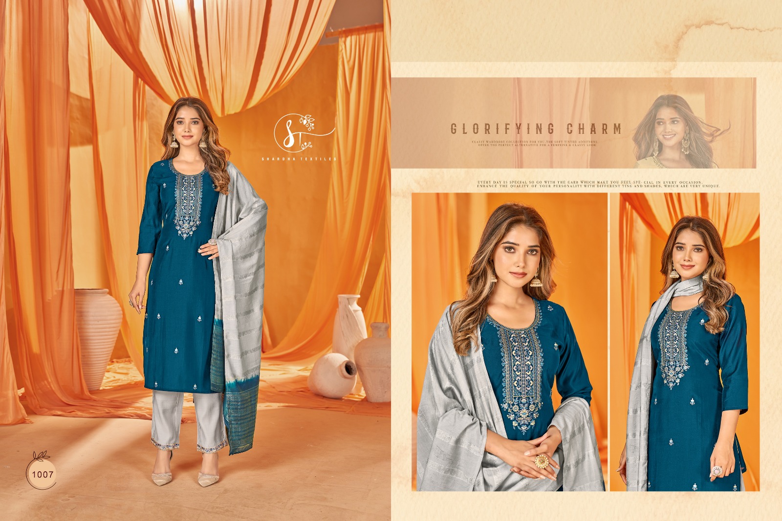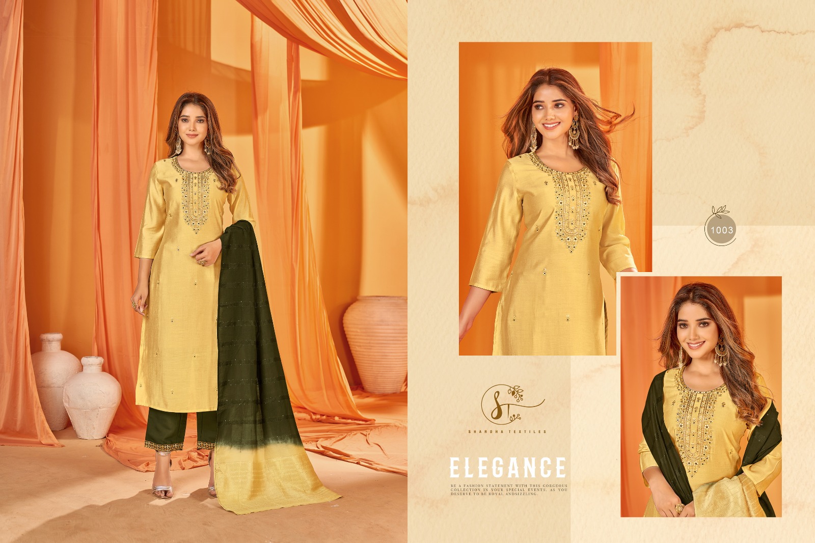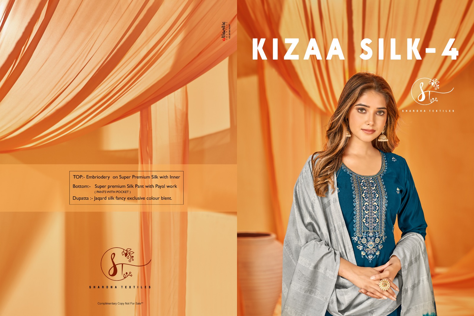 Buy Online Kizaa Silk Vol 4 By Shardha Textiles Fancy Top Bottom Duppata 9 Pcs of Full Catalogue at Wholesale Price. Looking for Kizaa Silk Vol 4 By Shardha Textiles Fancy Top Bottom Duppata Full Catalouge at Best Price? Buy Now Kizaa Silk Vol 4 By Shardha Textiles Fancy Top Bottom Duppata at Wholesale Rate of Rs 9585 with Total 9 Pcs from authroized dealer and supplier of Brand. Cost of Each piece is just only Rs 1065 which is very low and affordable price to resale the product in your retail store ,This is Surat based Wholesale Supplier & Dealer of Brand. Click on Brand name to Know more about Brand's products.Call or Whatsapp on 9898838984 for booking or enquiry