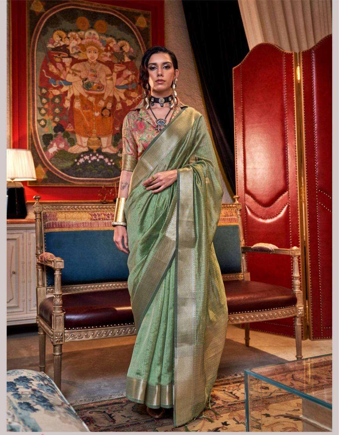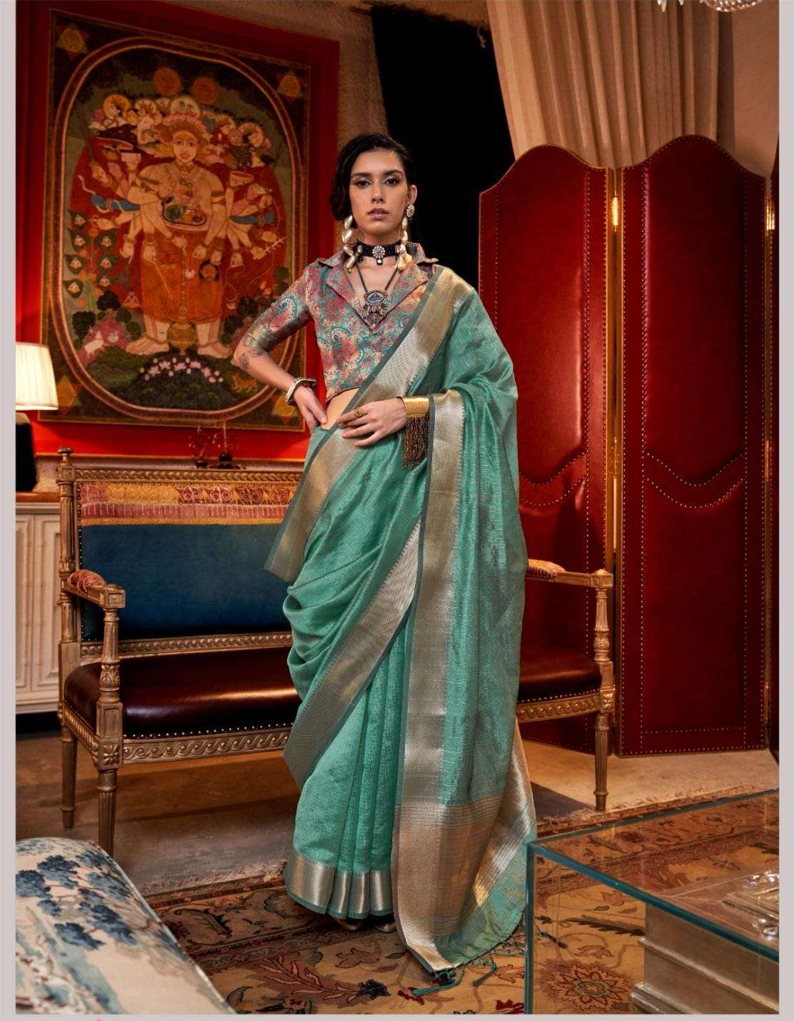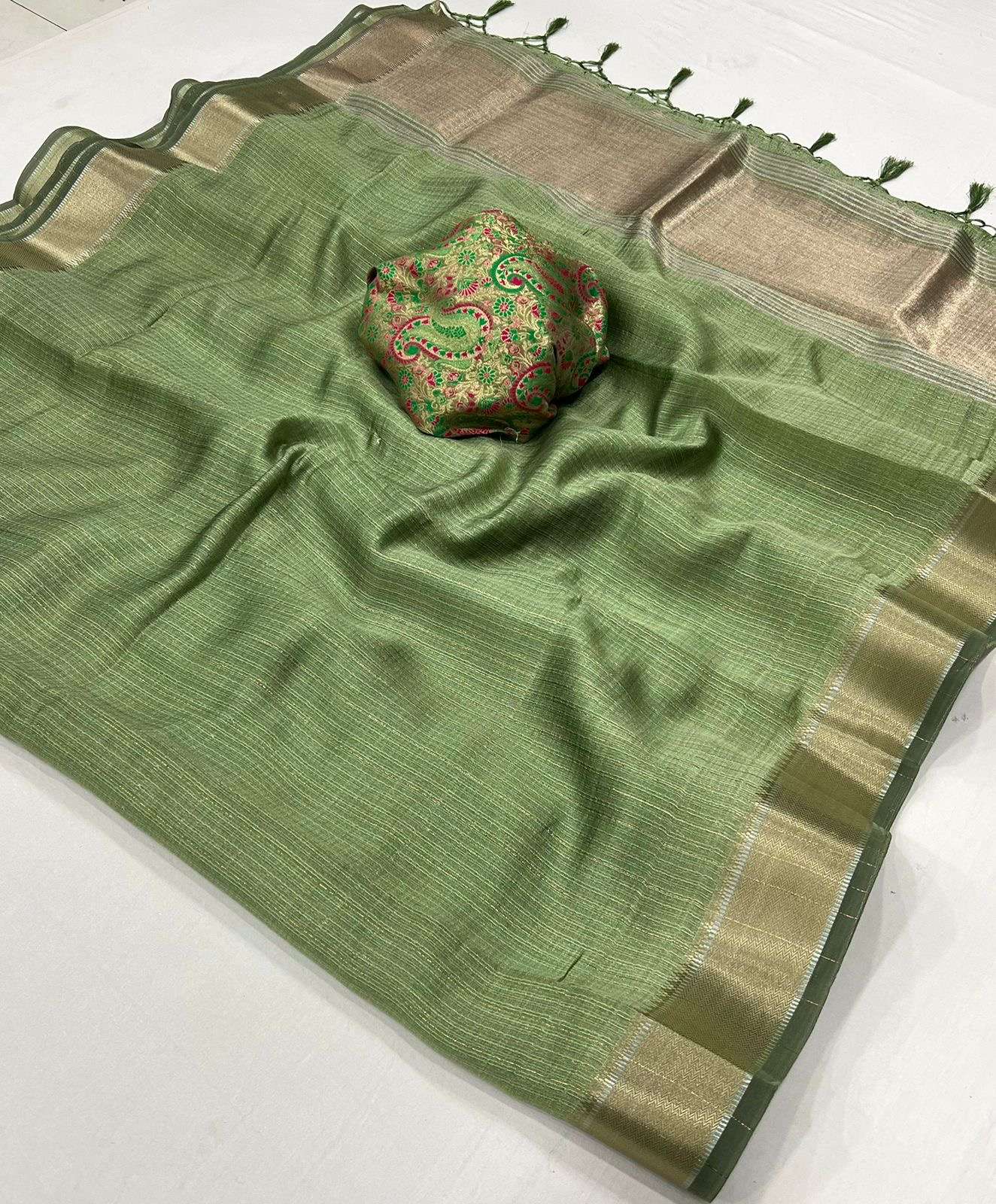 🔰 *Fabric*- *HANDWOVEN MOSS CHIFFON - HEAVY JEQUARD BLOUSE*