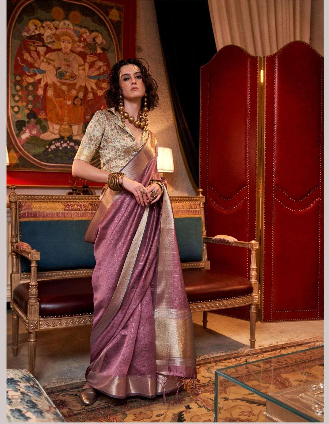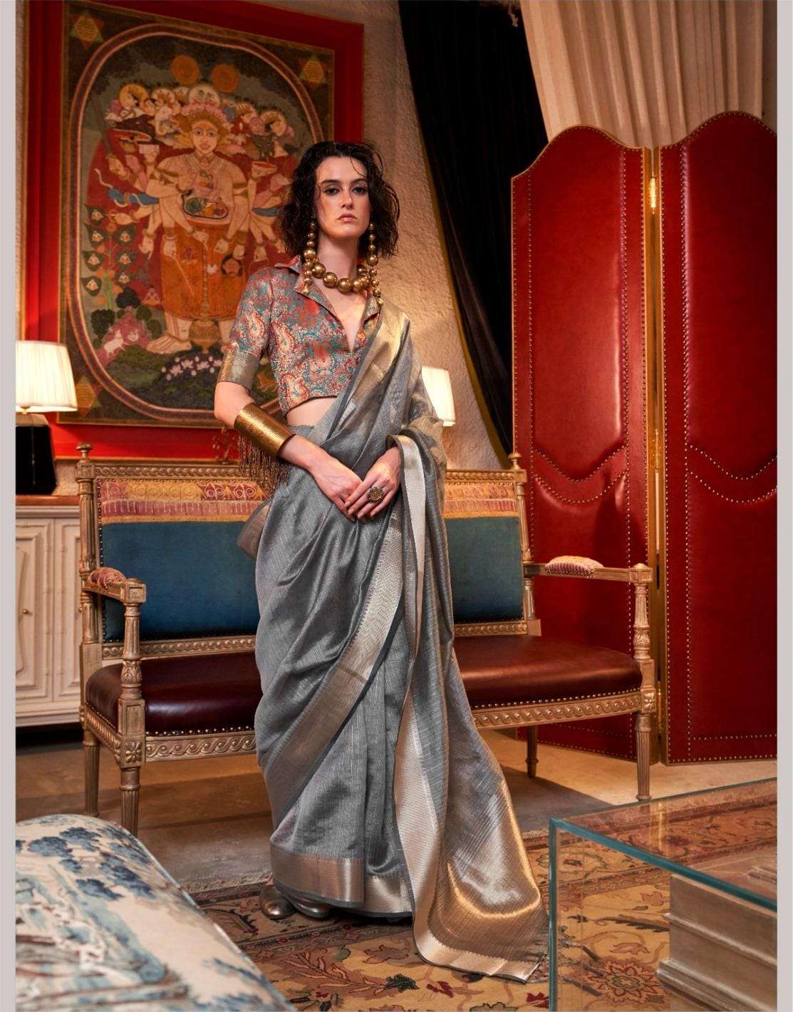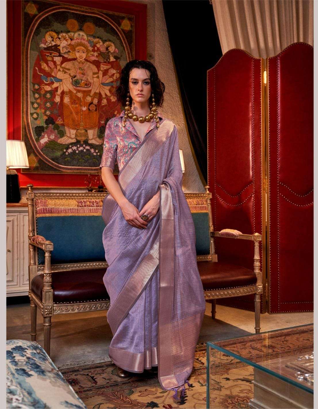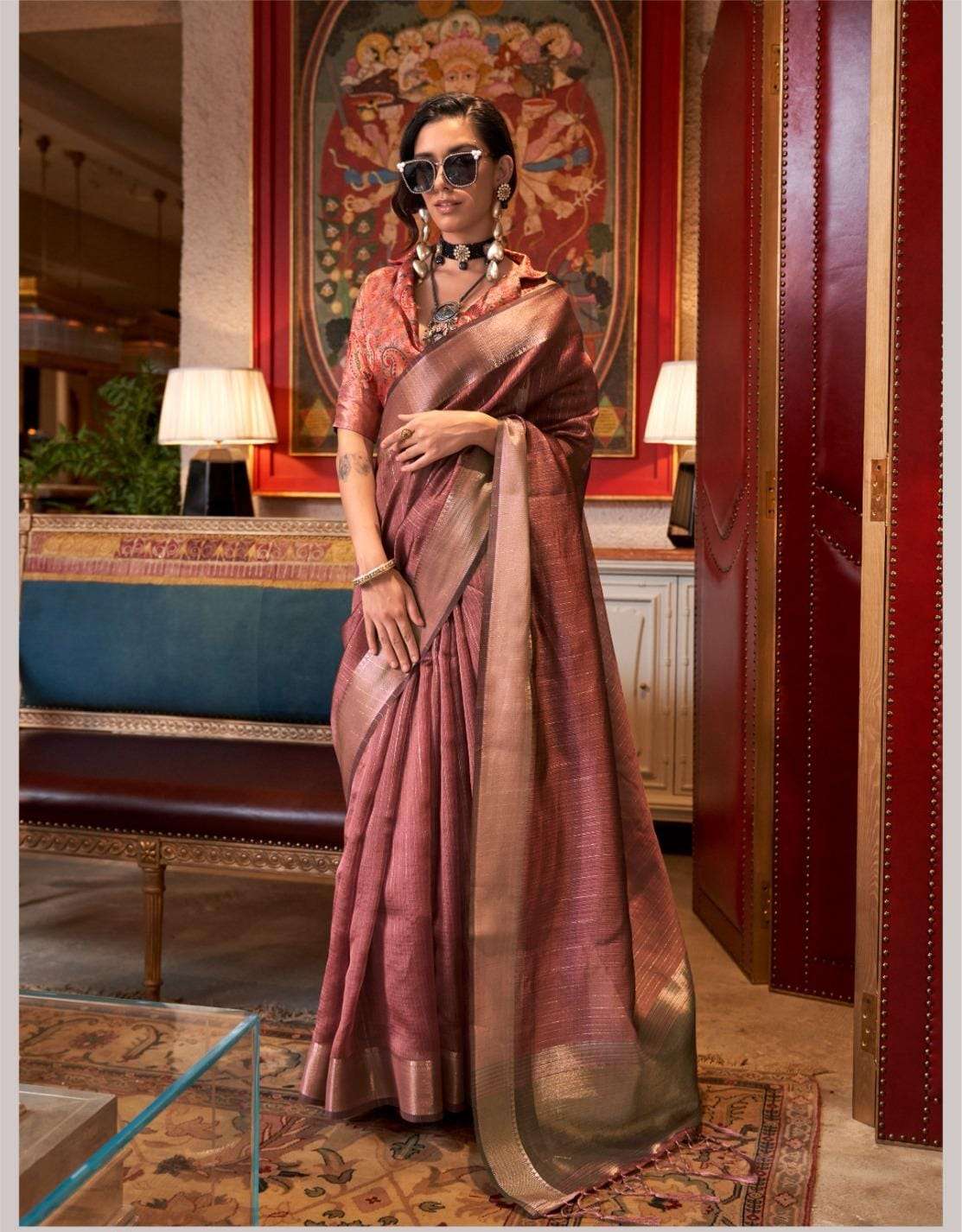 🔰 *Fabric*- *HANDWOVEN MOSS CHIFFON - HEAVY JEQUARD BLOUSE*
