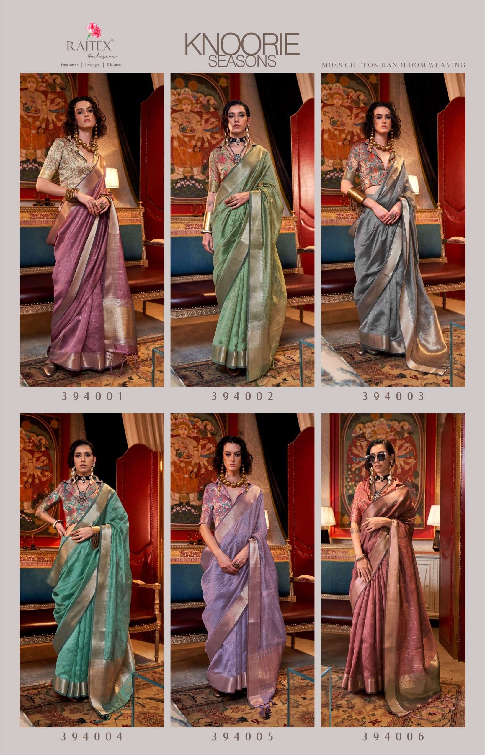 KNOORIE SERIES 394001 TO 394006 BY RAJTEX HANDLOOM CHIFFON SAREE