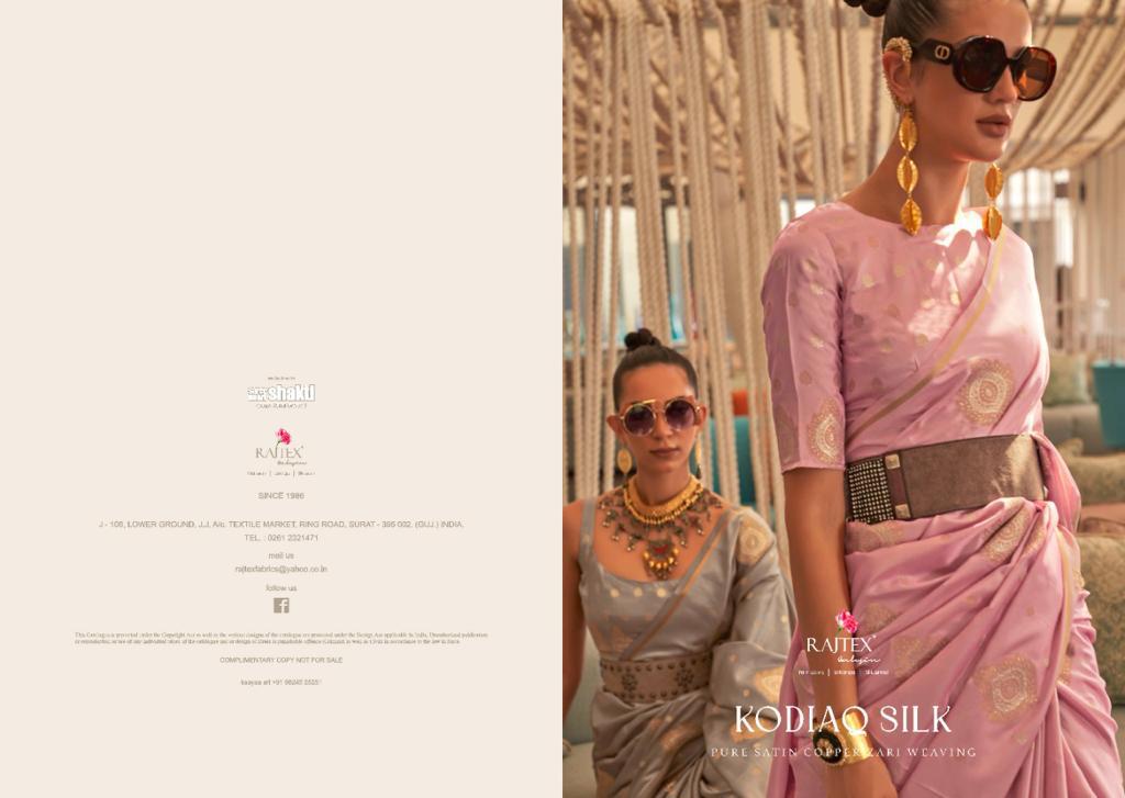 Brand - RajTex Series- 302001 to 302006. *KODIAQ SILK* *PURE ZARI COPPER ZARI WEAVING * *LAUNCHING NOW! ???* *1680? * per pcs GST 5 per extra SINGLE AVAILABLE Today Delivery *Please give orders in group if any.* 100+single |