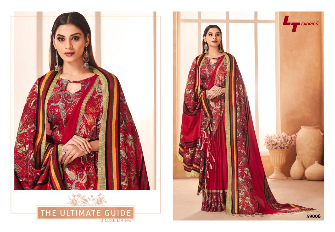 Buy Online Kohinoor By Lt Fabrics 59001 Series Fancy Pashmina Silk Printed Saree With Shawl Collection Wholesale Dealer Surat 10 Pcs of Full Catalogue at Wholesale Price. Looking for Kohinoor By Lt Fabrics 59001 Series Fancy Pashmina Silk Printed Saree With Shawl Collection Wholesale Dealer Surat Full Catalouge at Best Price? Buy Now Kohinoor By Lt Fabrics 59001 Series Fancy Pashmina Silk Printed Saree With Shawl Collection Wholesale Dealer Surat at Wholesale Rate of Rs 7850 with Total 10 Pcs from authroized dealer and supplier of LT FABRICS Brand. Cost of Each piece is just only Rs 785 which is very low and affordable price to resale the product in your retail store ,This is Surat based Wholesale Supplier & Dealer of LT FABRICS Brand. Click on Brand name to Know more about LT FABRICS Brand's products.Call or Whatsapp on 9898838984 for booking or enquiry