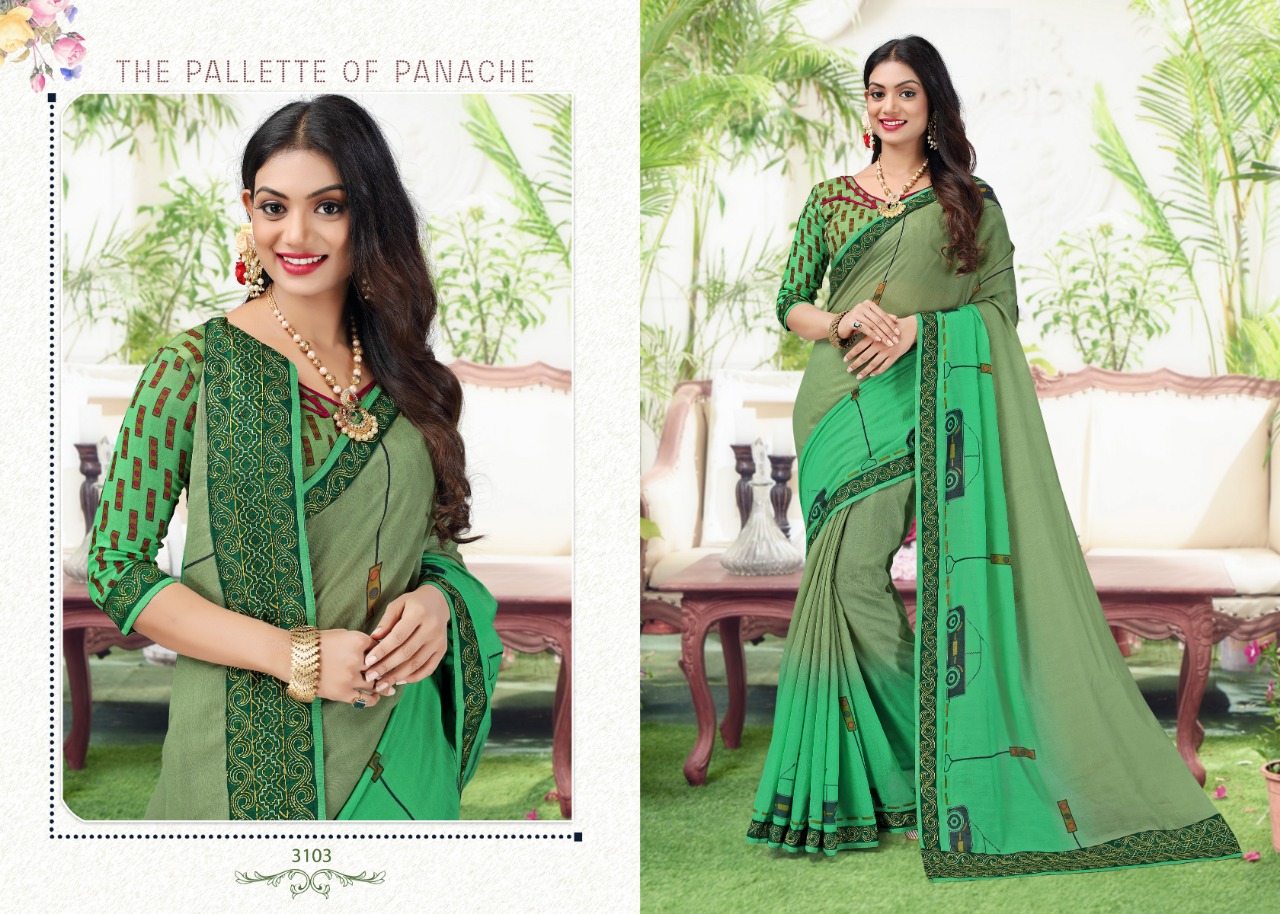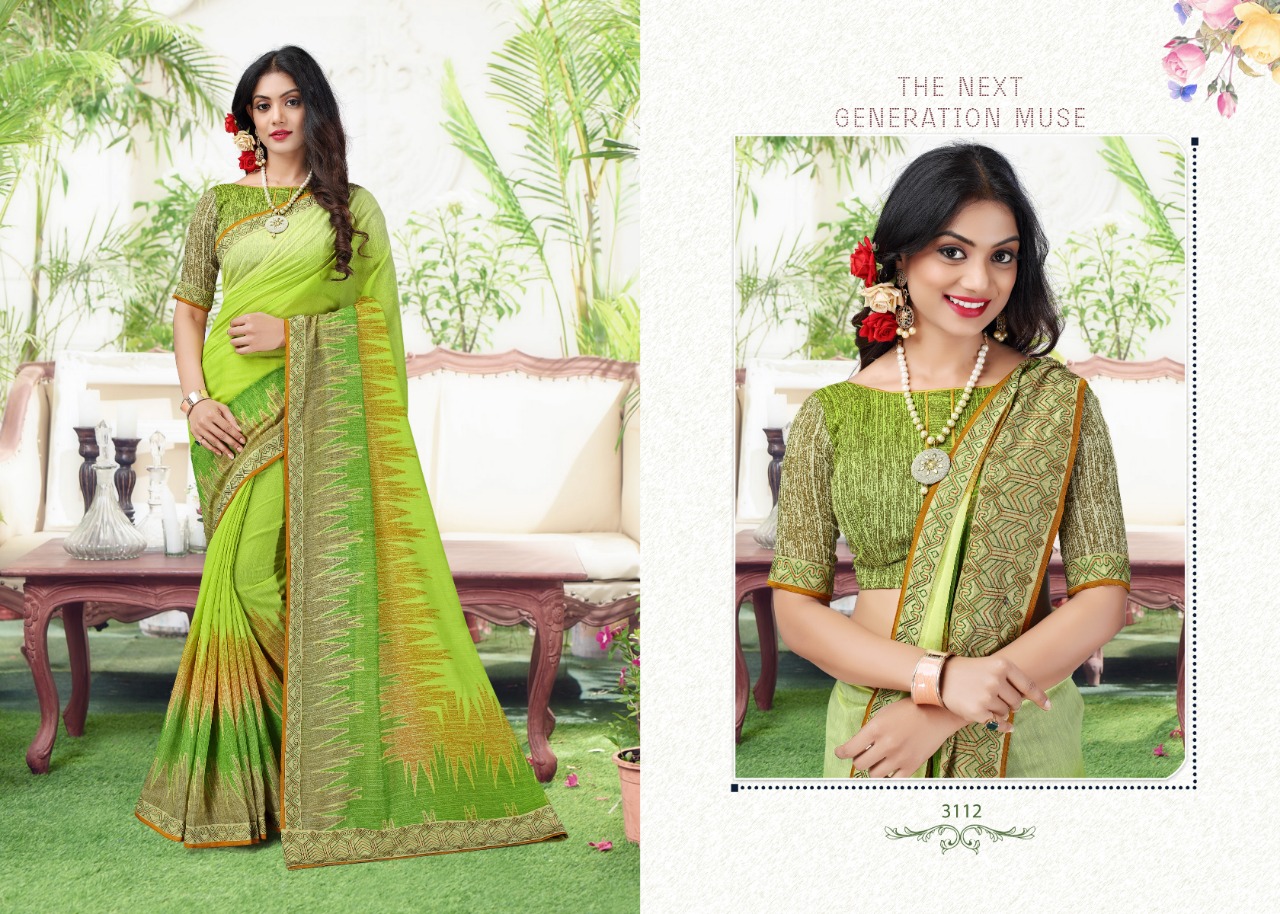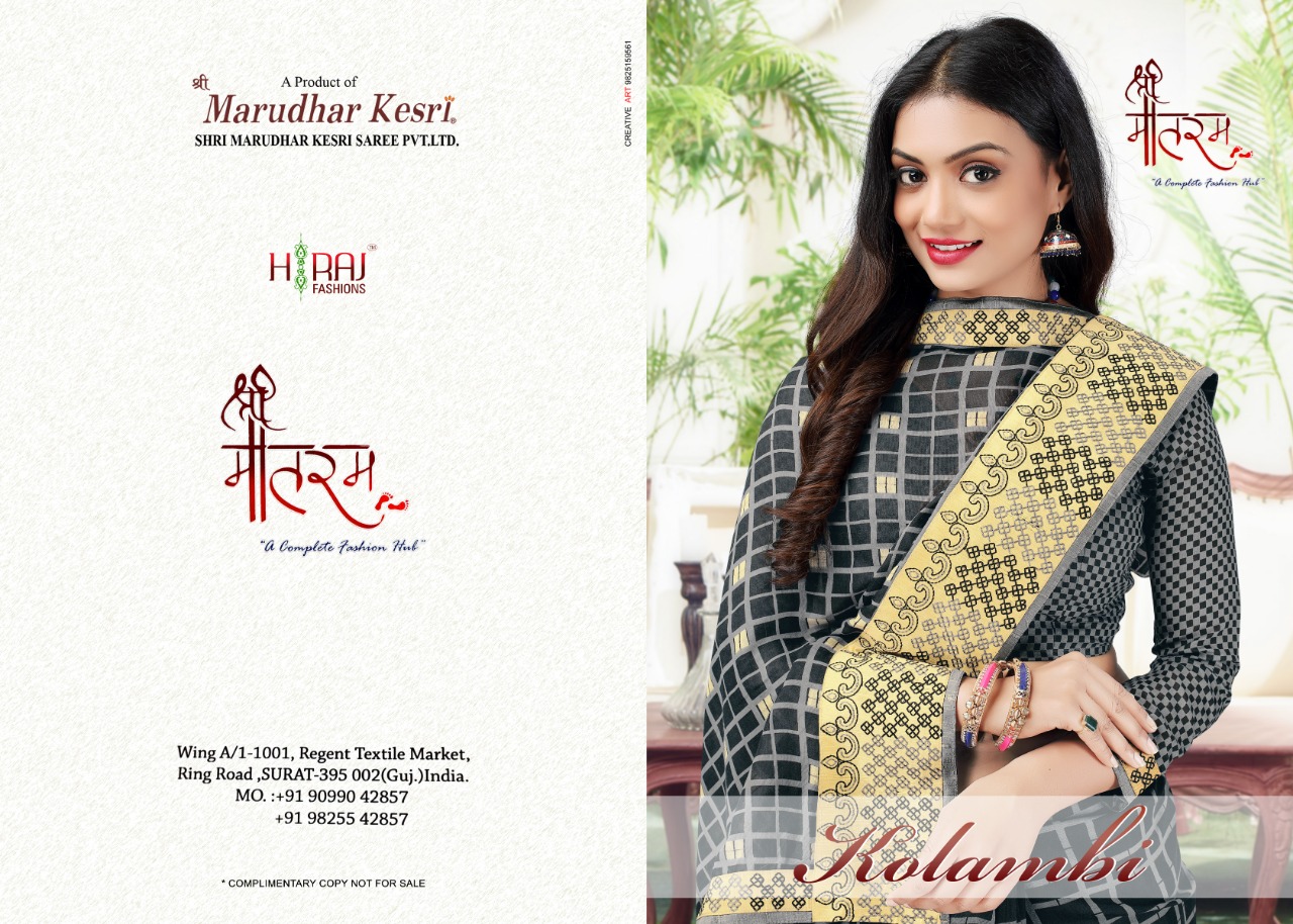 Brand Â? ???? Maataram product by ???? Marudhar kesri saree pvt ltd -Surat Catlog name Â? Kolambi Fabrics- Daisy silk with pure kattha work style border with short pallu Total 12 saree in one set . *Rate - 725 per Pcs * Set to set . Book your order |