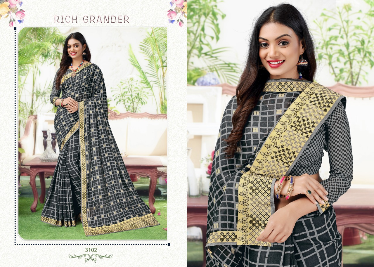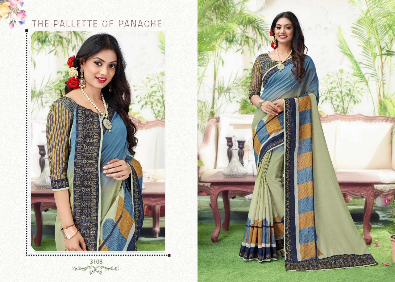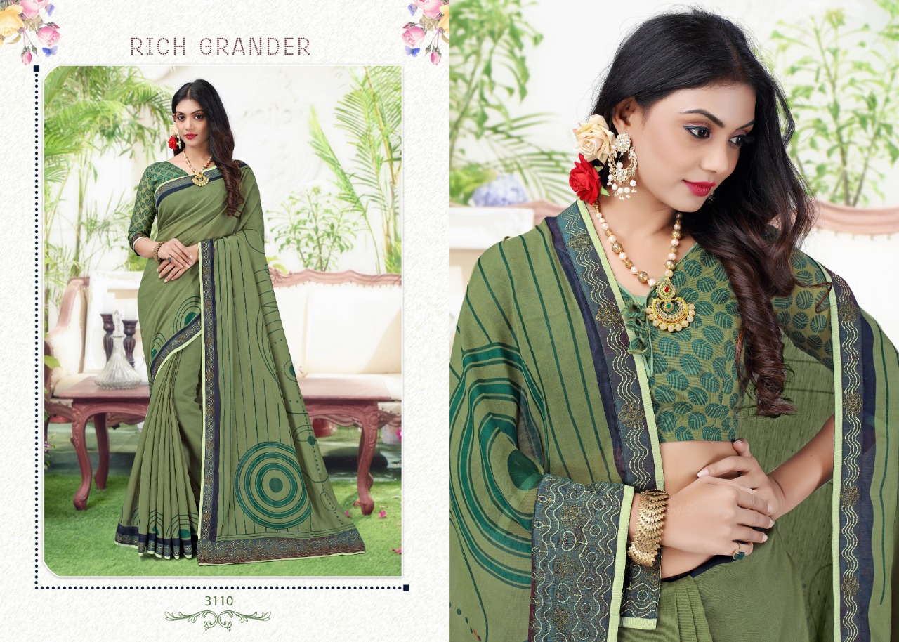 Brand Â? ???? Maataram product by ???? Marudhar kesri saree pvt ltd -Surat Catlog name Â? Kolambi Fabrics- Daisy silk with pure kattha work style border with short pallu Total 12 saree in one set . *Rate - 725 per Pcs * Set to set . Book your order |