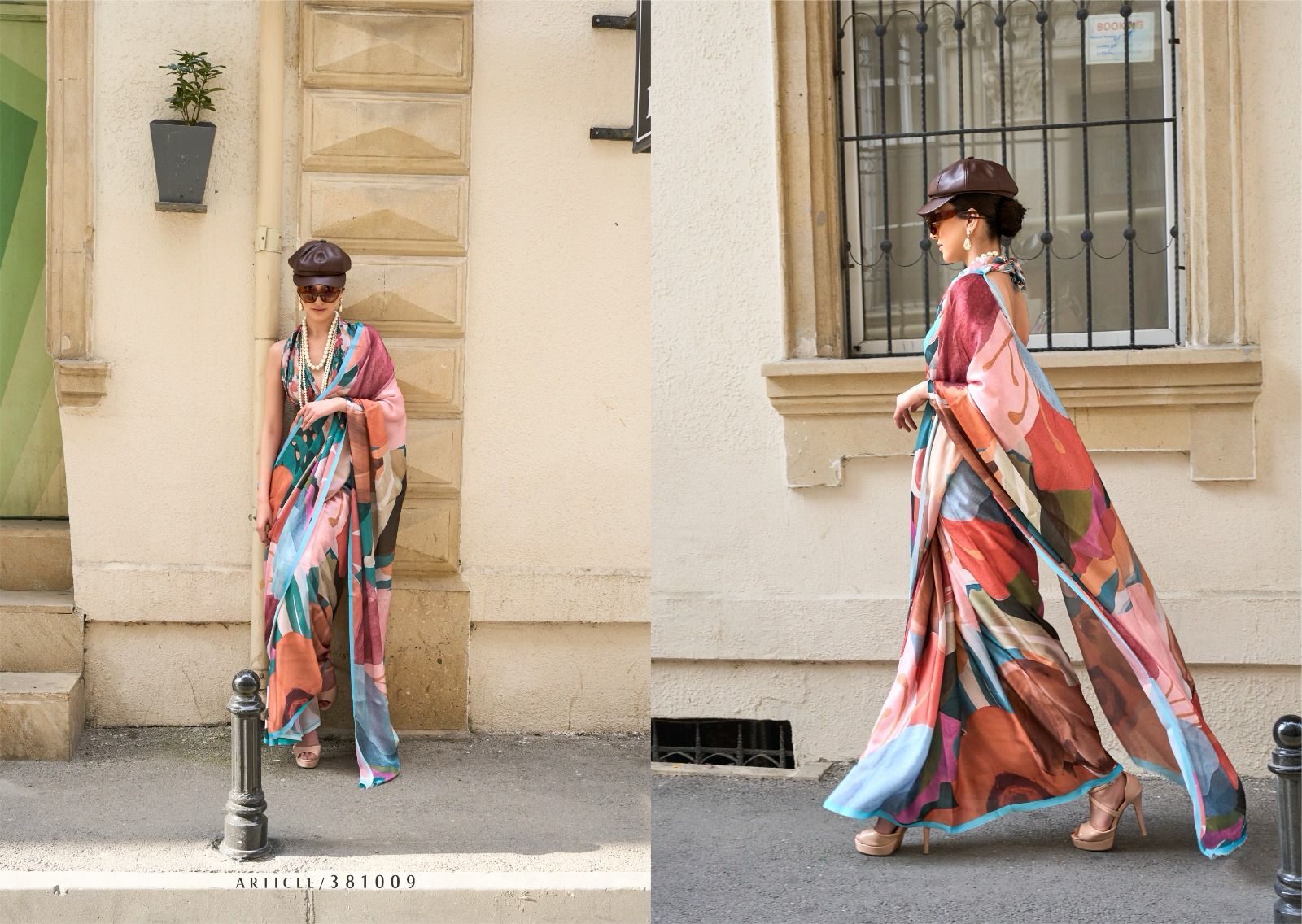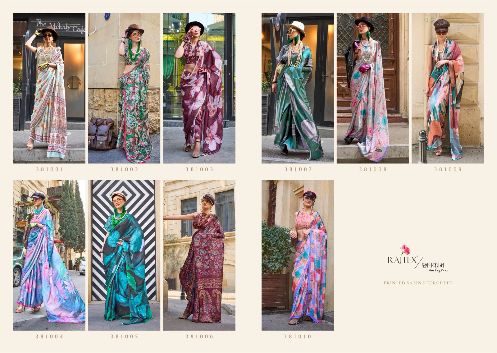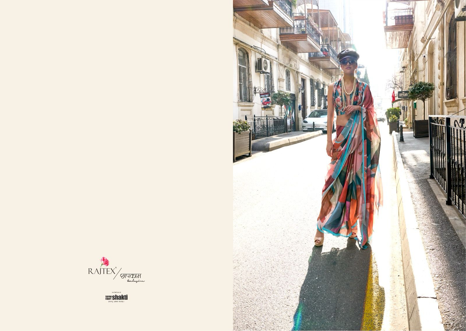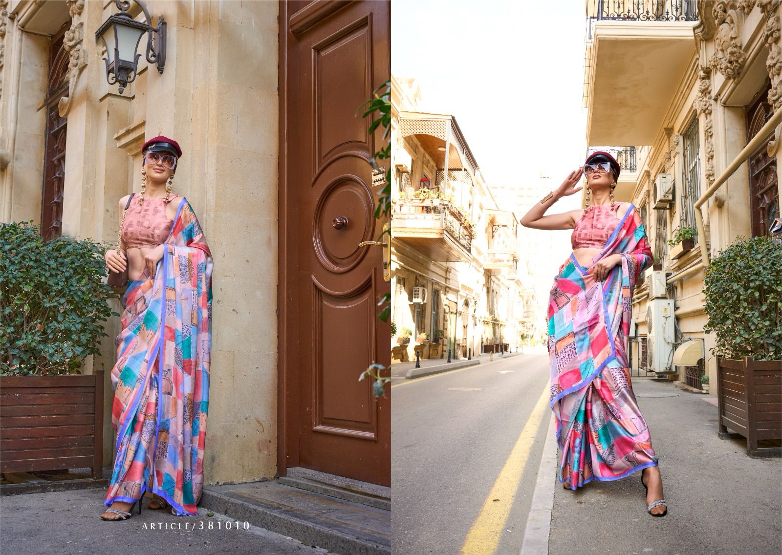 Kolumbus Series 381001 To 381010 By Rajtex Pure Satin Georgette Digital Print Saree Collection Manufacturer Surat