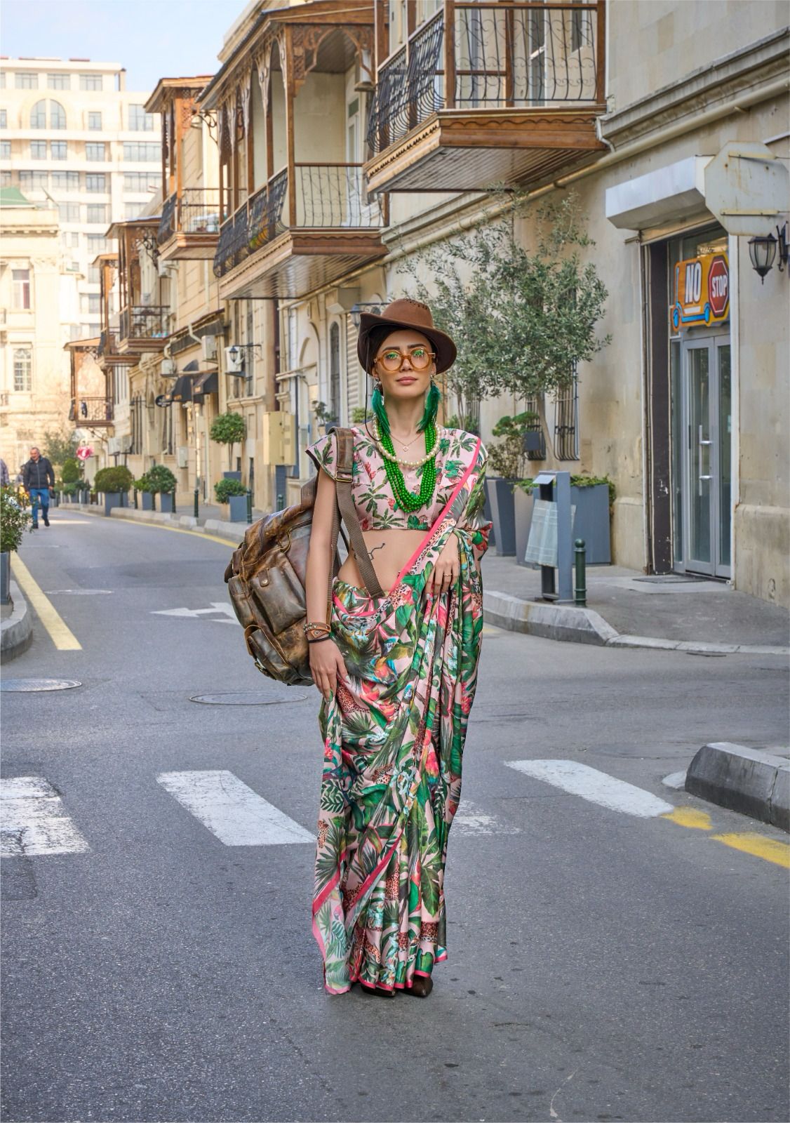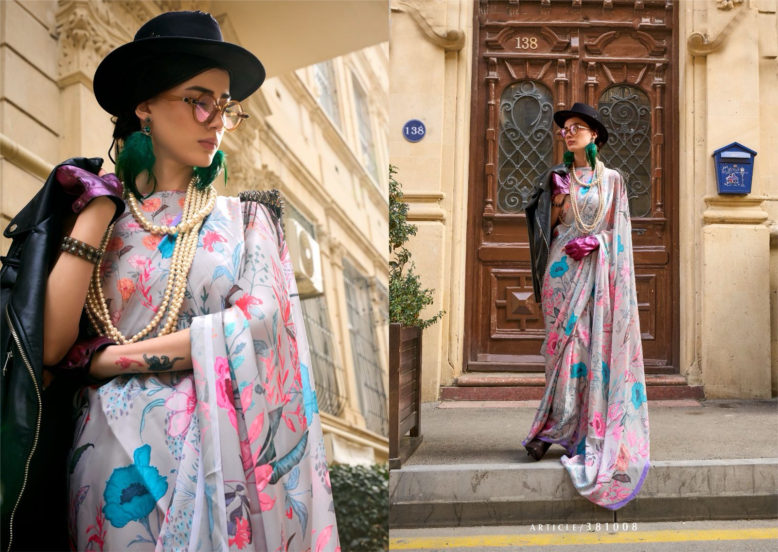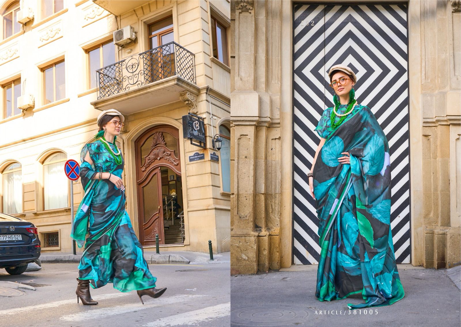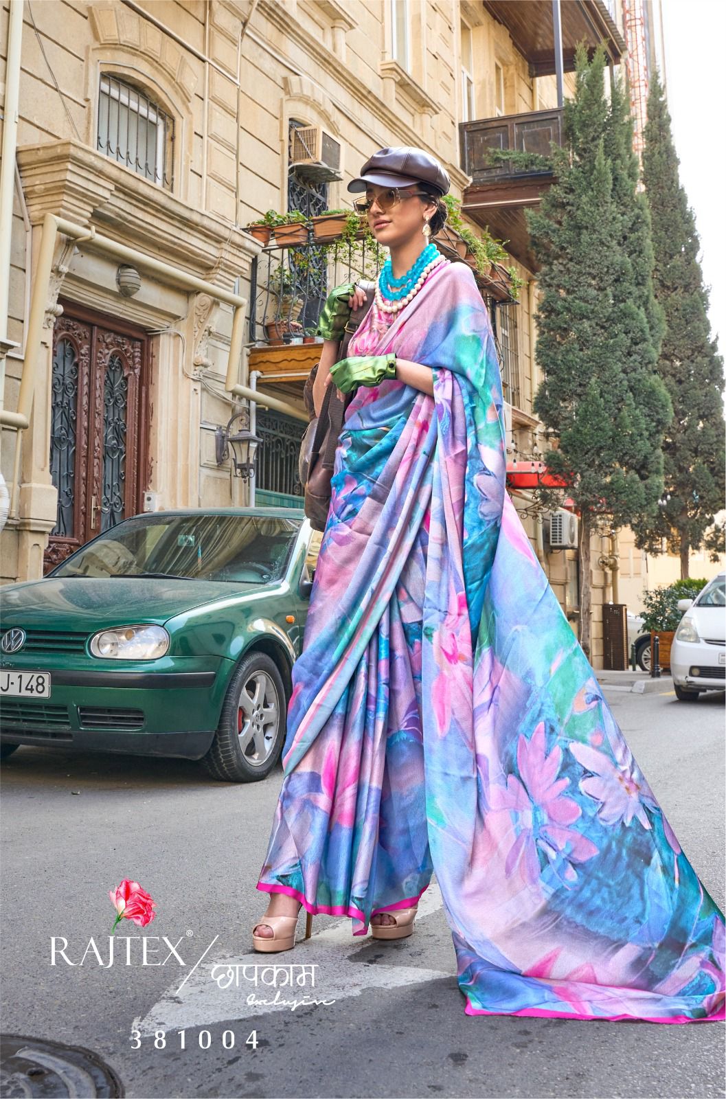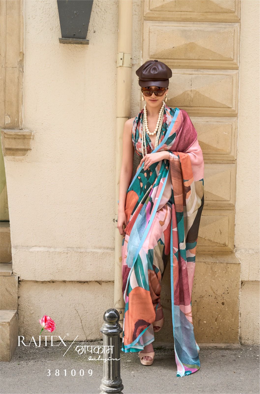 Kolumbus Series 381001 To 381010 By Rajtex Pure Satin Georgette Digital Print Saree Collection Manufacturer Surat