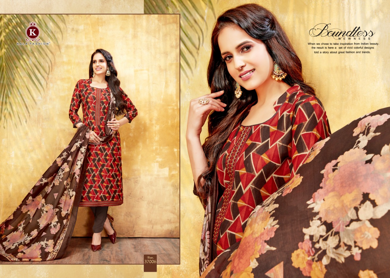 Buy Online Komal By Kala Fashions 37001 Series Fancy Pure Pashmina Printed Salwar Kameez Catlog Wholesaler Surat 6 Pcs of Full Catalogue at Wholesale Price. Looking for Komal By Kala Fashions 37001 Series Fancy Pure Pashmina Printed Salwar Kameez Catlog Wholesaler Surat Full Catalouge at Best Price? Buy Now Komal By Kala Fashions 37001 Series Fancy Pure Pashmina Printed Salwar Kameez Catlog Wholesaler Surat at Wholesale Rate of Rs 5106 with Total 6 Pcs from authroized dealer and supplier of KALA FASHIONS Brand. Cost of Each piece is just only Rs 851 which is very low and affordable price to resale the product in your retail store ,This is Surat based Wholesale Supplier & Dealer of KALA FASHIONS Brand. Click on Brand name to Know more about KALA FASHIONS Brand's products.Call or Whatsapp on 9898838984 for booking or enquiry