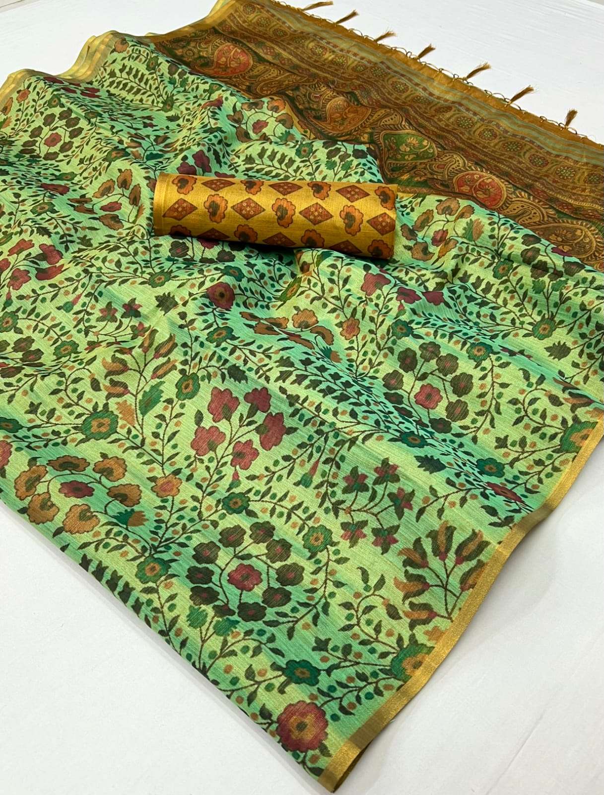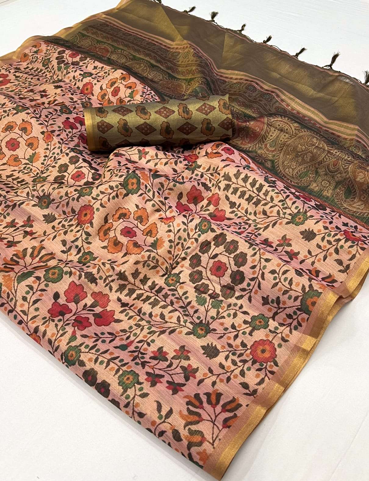 🔰 *Fabric*- *PRINTED ZARI TISSUE HANDLOOM WEAVING SAREES*