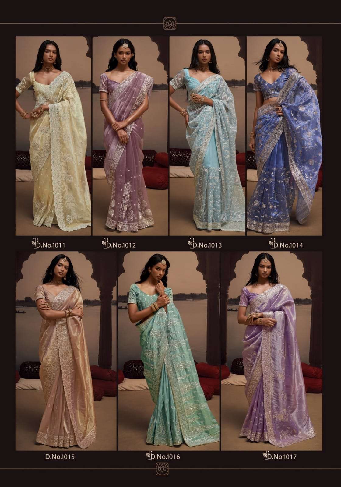 ➡Catalog - Kora ➡Fabric - Pure Based Fancy Fabric(Like Tissue & Viscous Shimmer etc) Pitta Work on it & Amazing Border & Designer Blouse ➡De No. = Rate ~1011 = 4695+5% ~1012 = 5295+5% ~1013 = 5395+5% ~1014 = 5155+5% ~1015 = 5995+5% ~1016 = 5995+5% ~1017 = 5755+5%