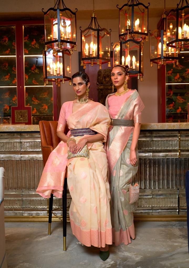 Brand - Raj Tex. Series - 293001 to 293006. *KOSKI LINEN* *Pure Linen Weaving + Contrast Pallu, Border & Blouse * *LAUNCHING NOW! ???* *1360?* Per pcs Set @ loose @ Singel *Give Your Orders if any.* 100+single |