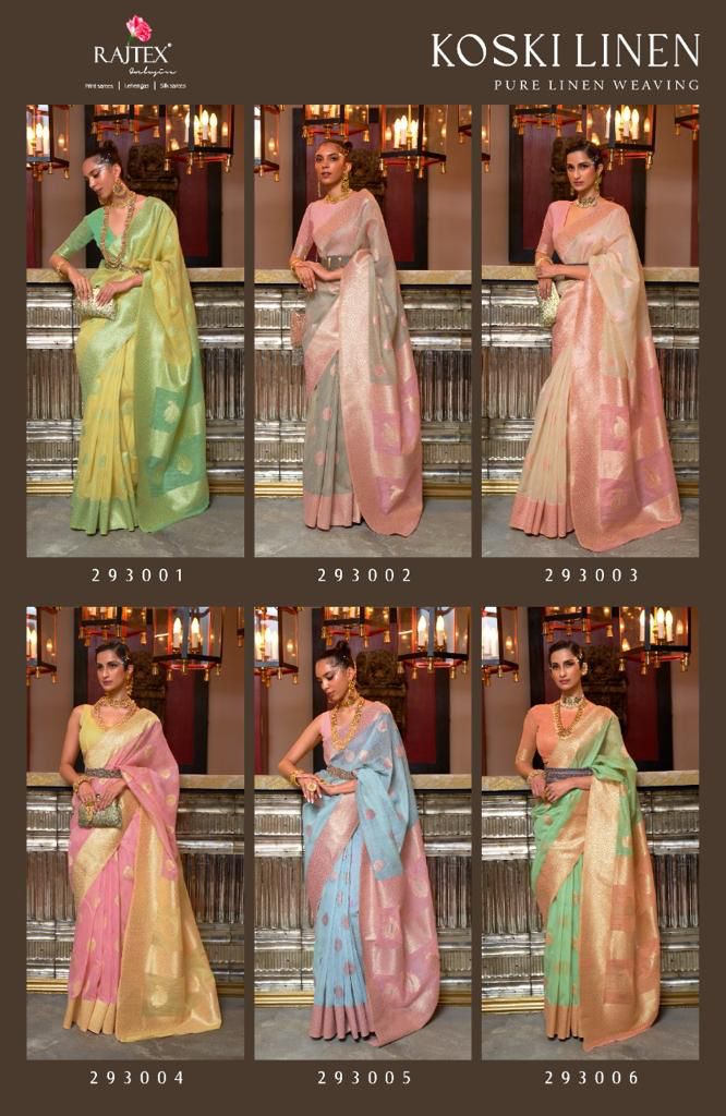 Koski Linen Series 293001 To 293006 By Rajtex Saree Single And Set Stockiest And Supplier From Surat