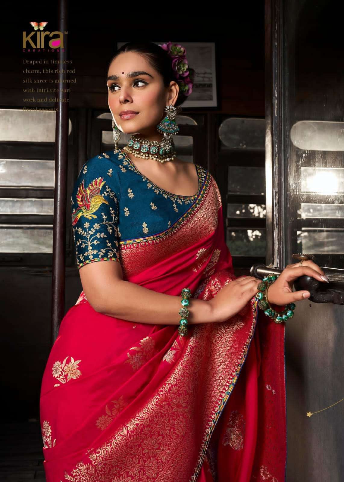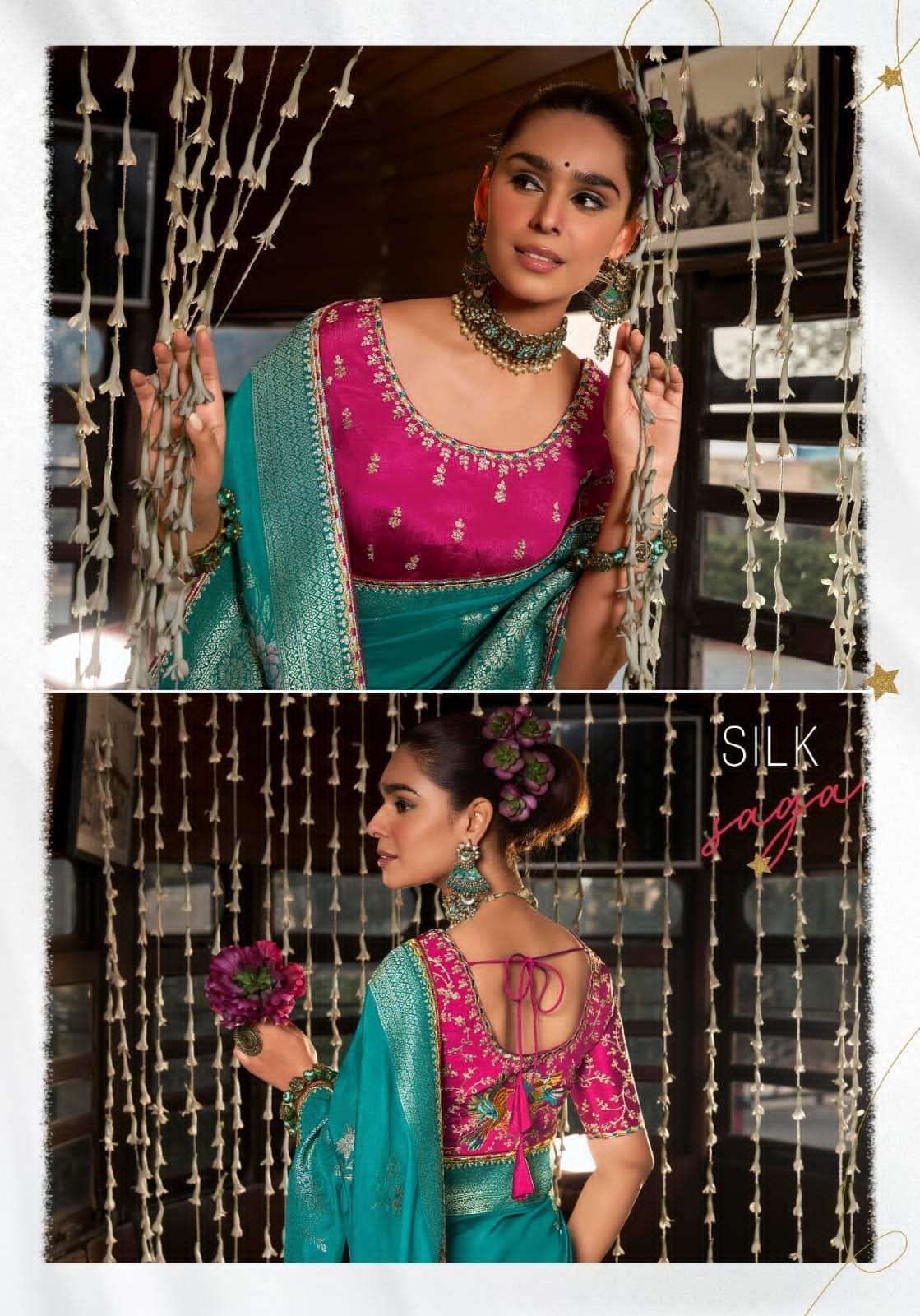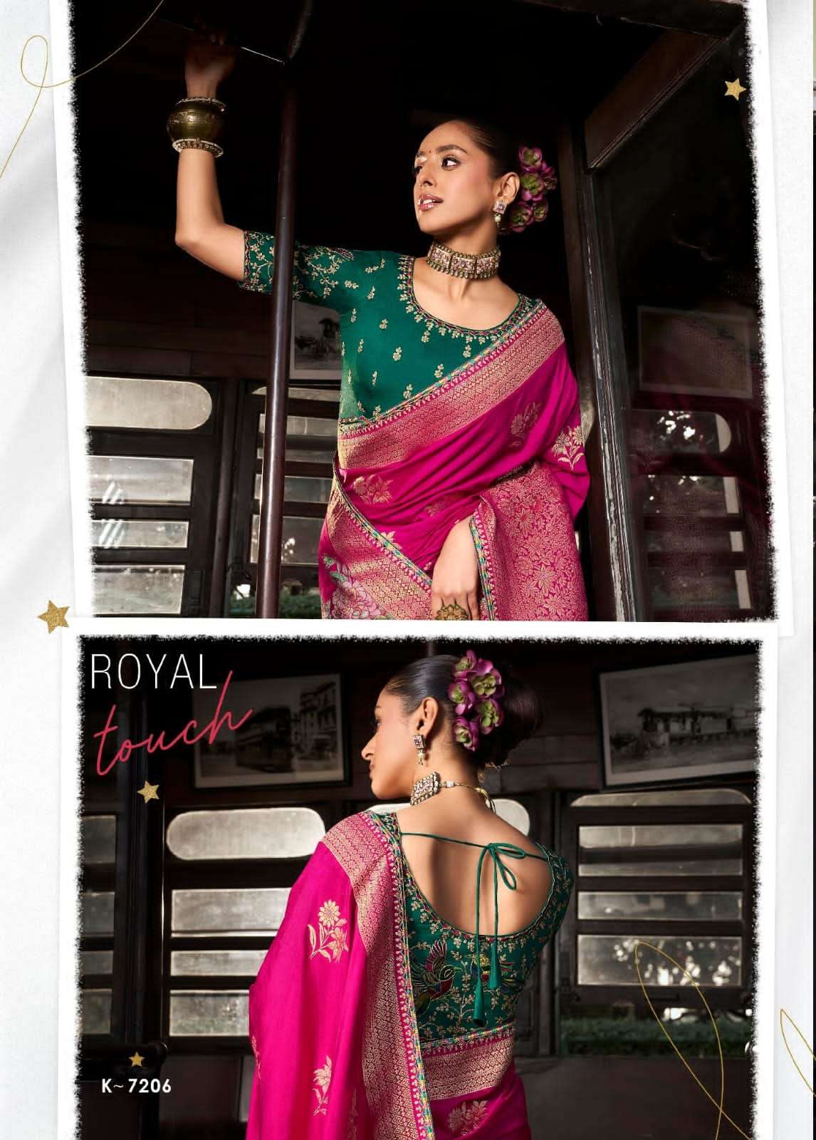 ➡️Catalog - *Krisha* ➡️Rate - *2895+5%* ➡️Fabric - *Soft Dola Viscous Silk with 3d Weaved Pallu & Fancy Lace Border Also with Heavy Embroidered Contrast Blouse*