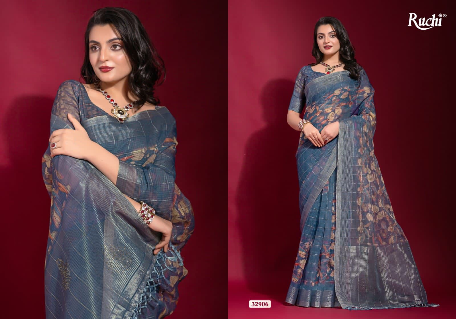Krisha By Ruchi Digital Print Linen Silk Saree