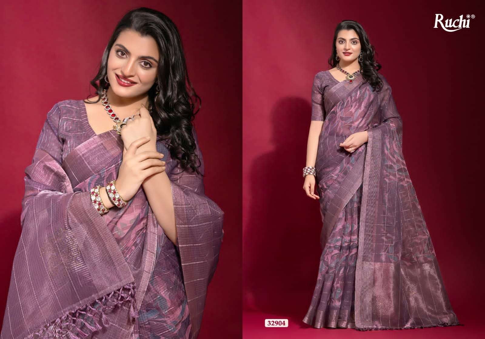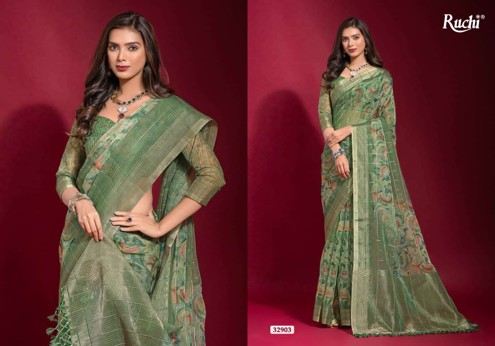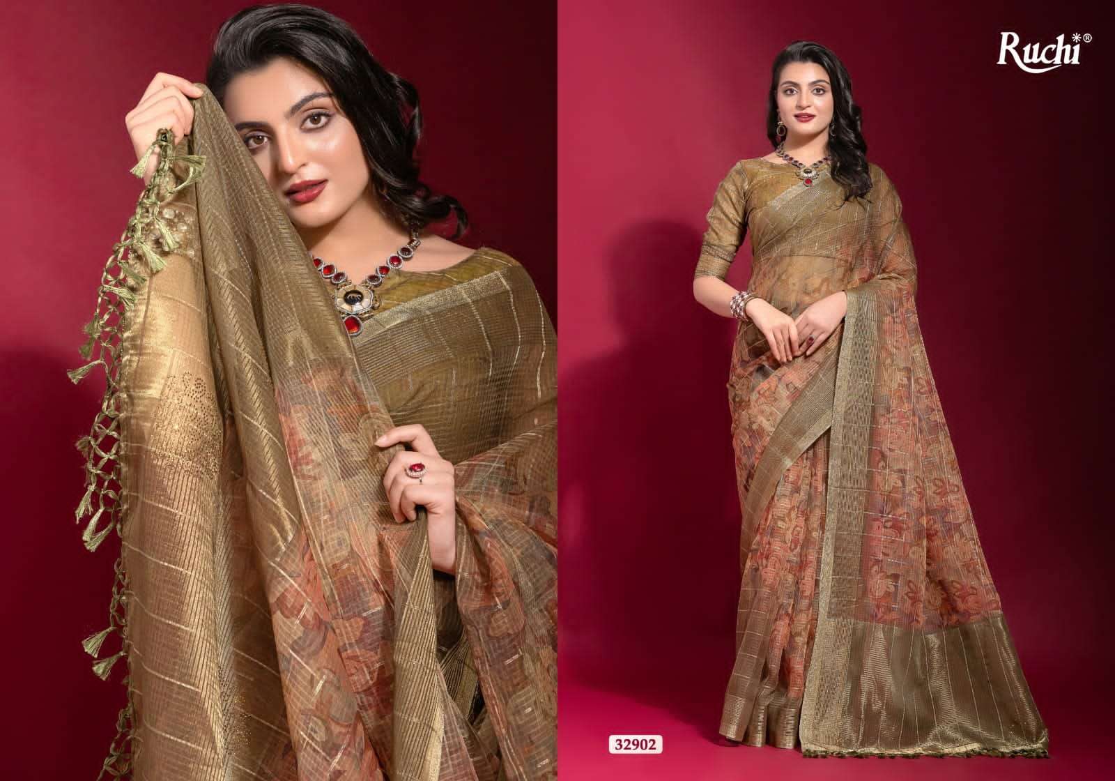 BRAND NAME – *RUCHI* CATALOG NAME – *KRISHA* SERIES – 32901 TO 32906 Fabric - Digital Print Linen Silk Jari Checks Saree with Jari Border. Pcs. - 06. RATE – 1105/- PER PCS GST EXTRA