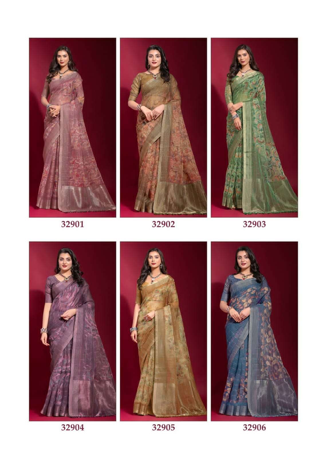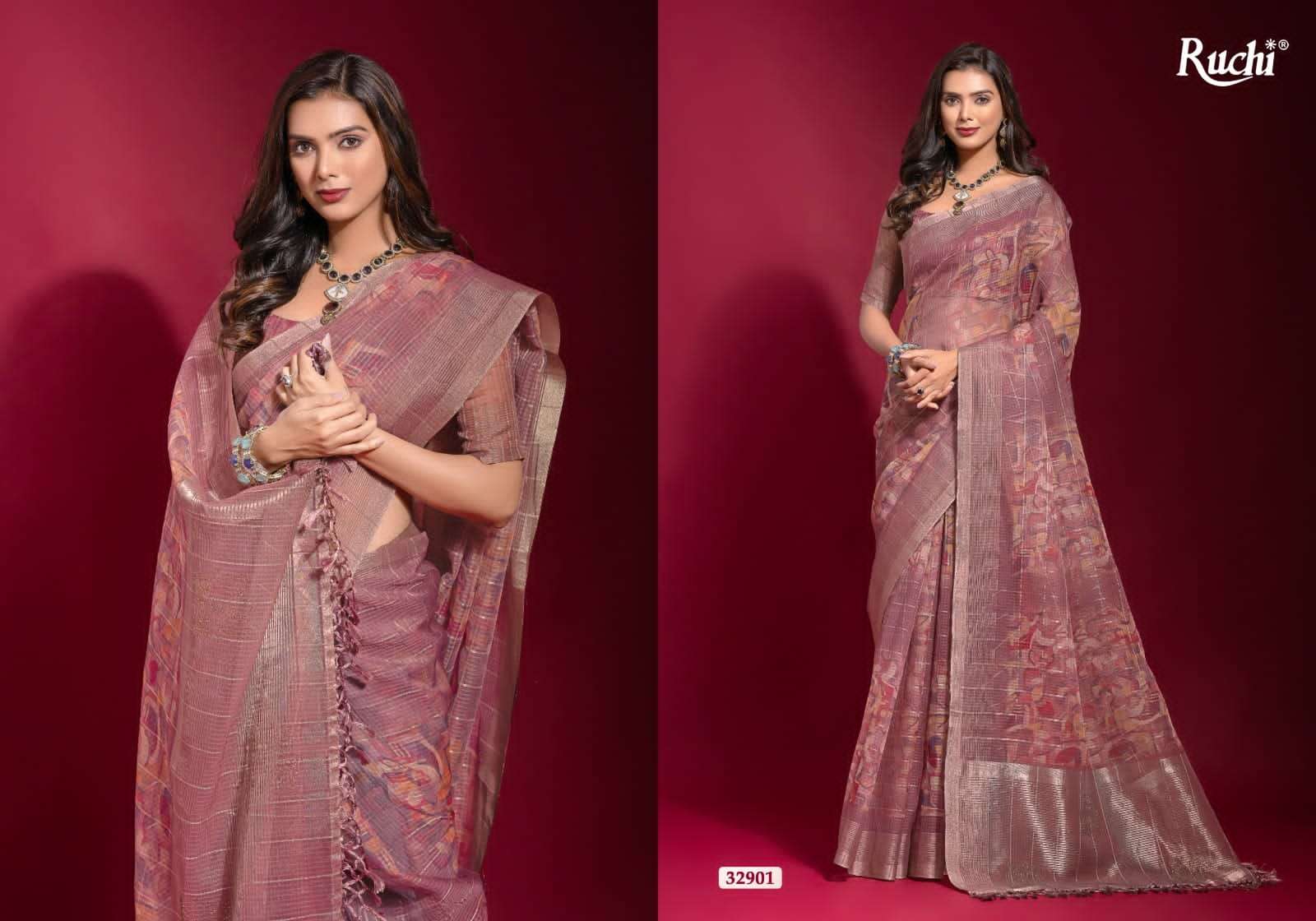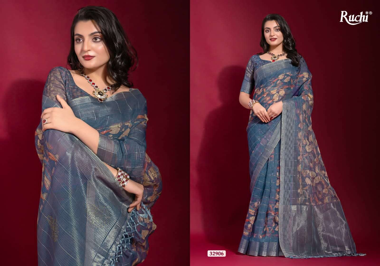 BRAND NAME – *RUCHI* CATALOG NAME – *KRISHA* SERIES – 32901 TO 32906 Fabric - Digital Print Linen Silk Jari Checks Saree with Jari Border. Pcs. - 06. RATE – 1105/- PER PCS GST EXTRA