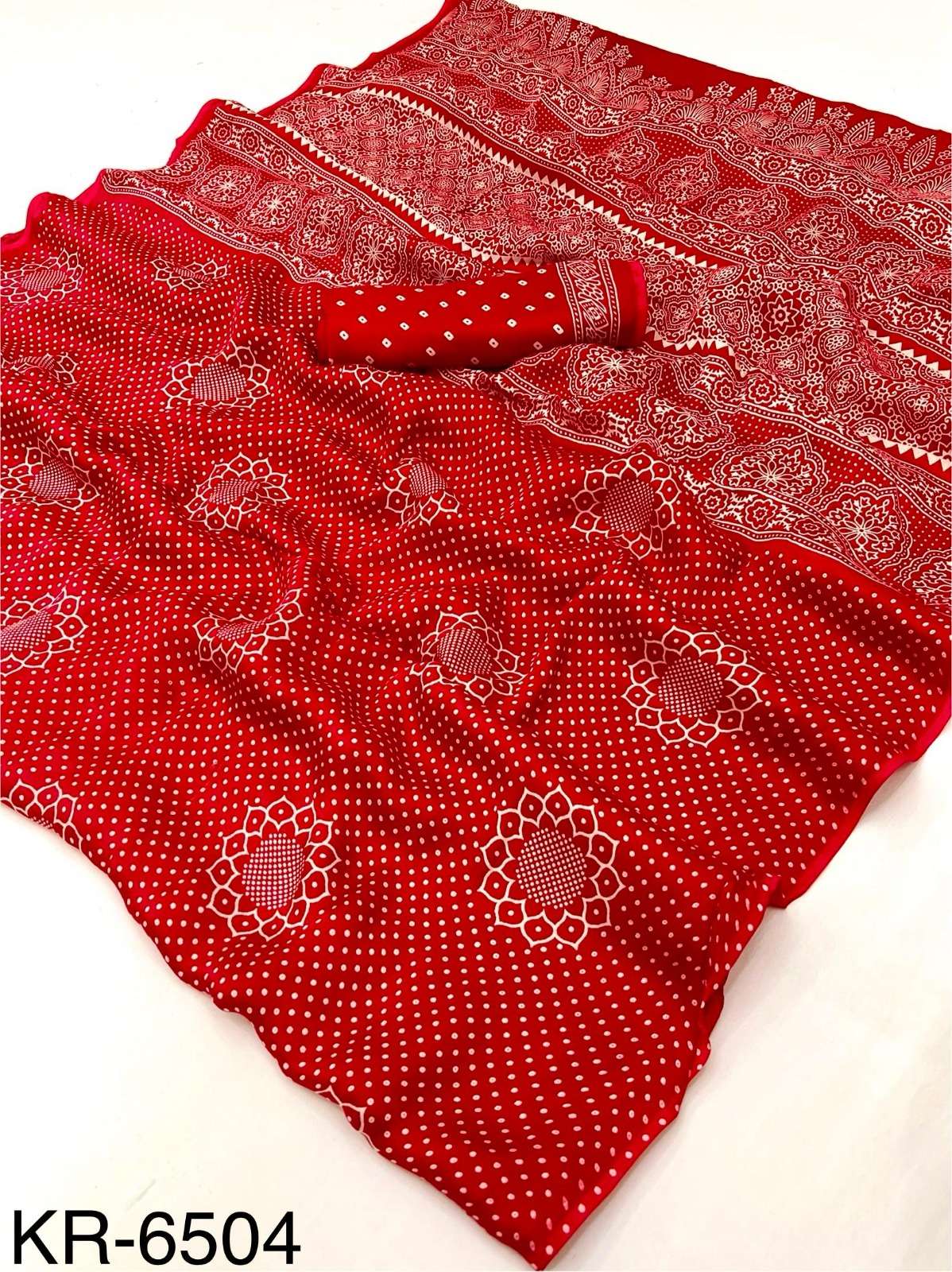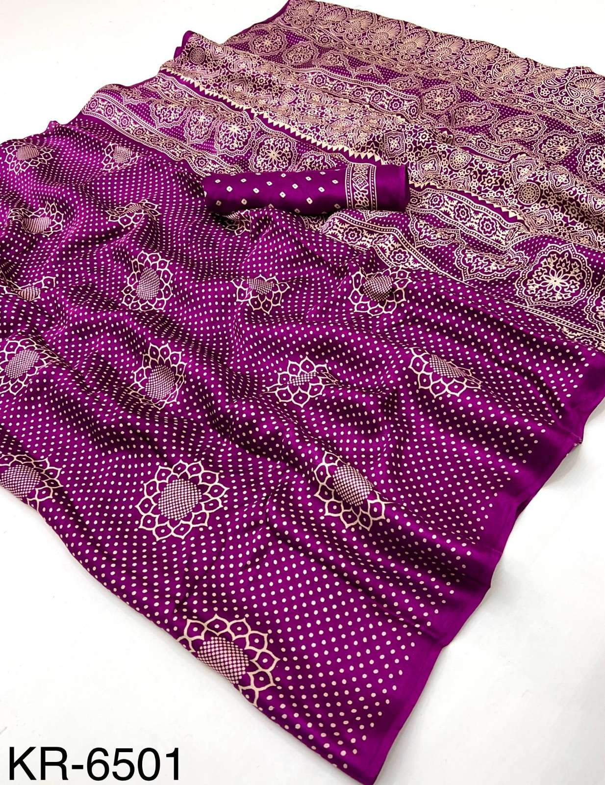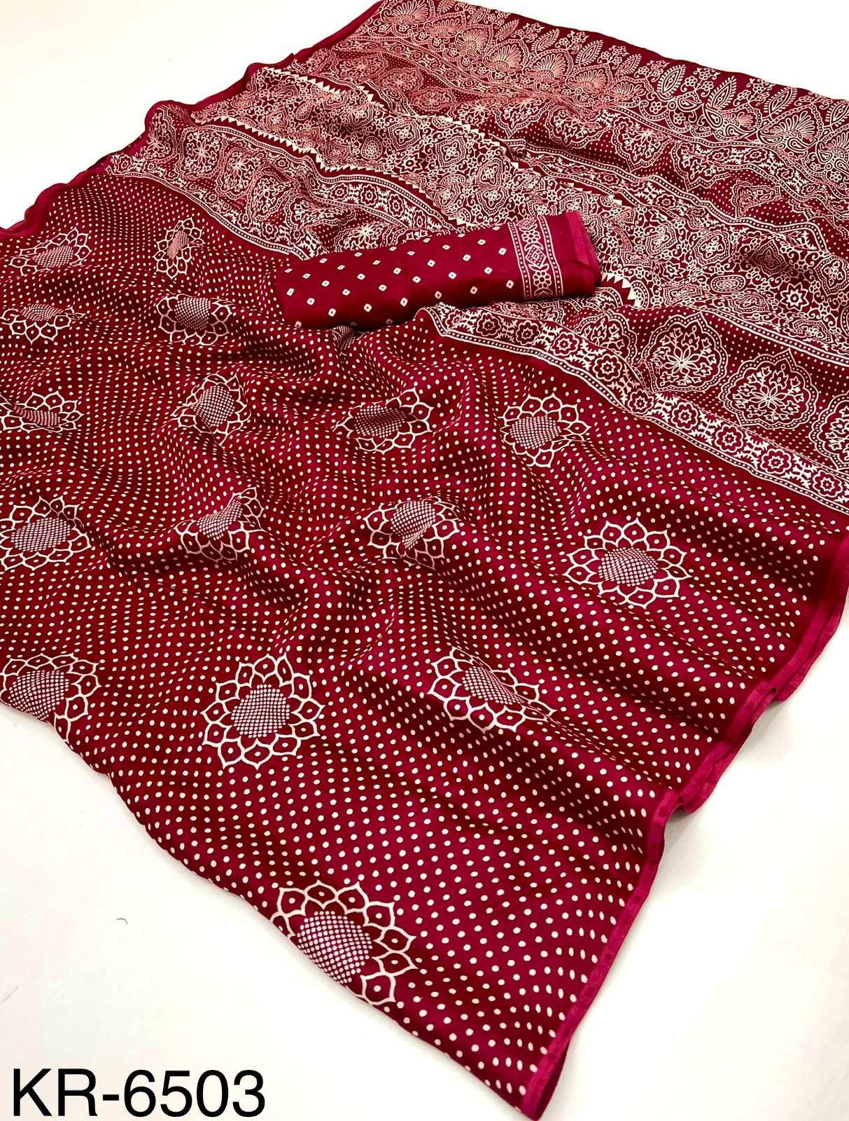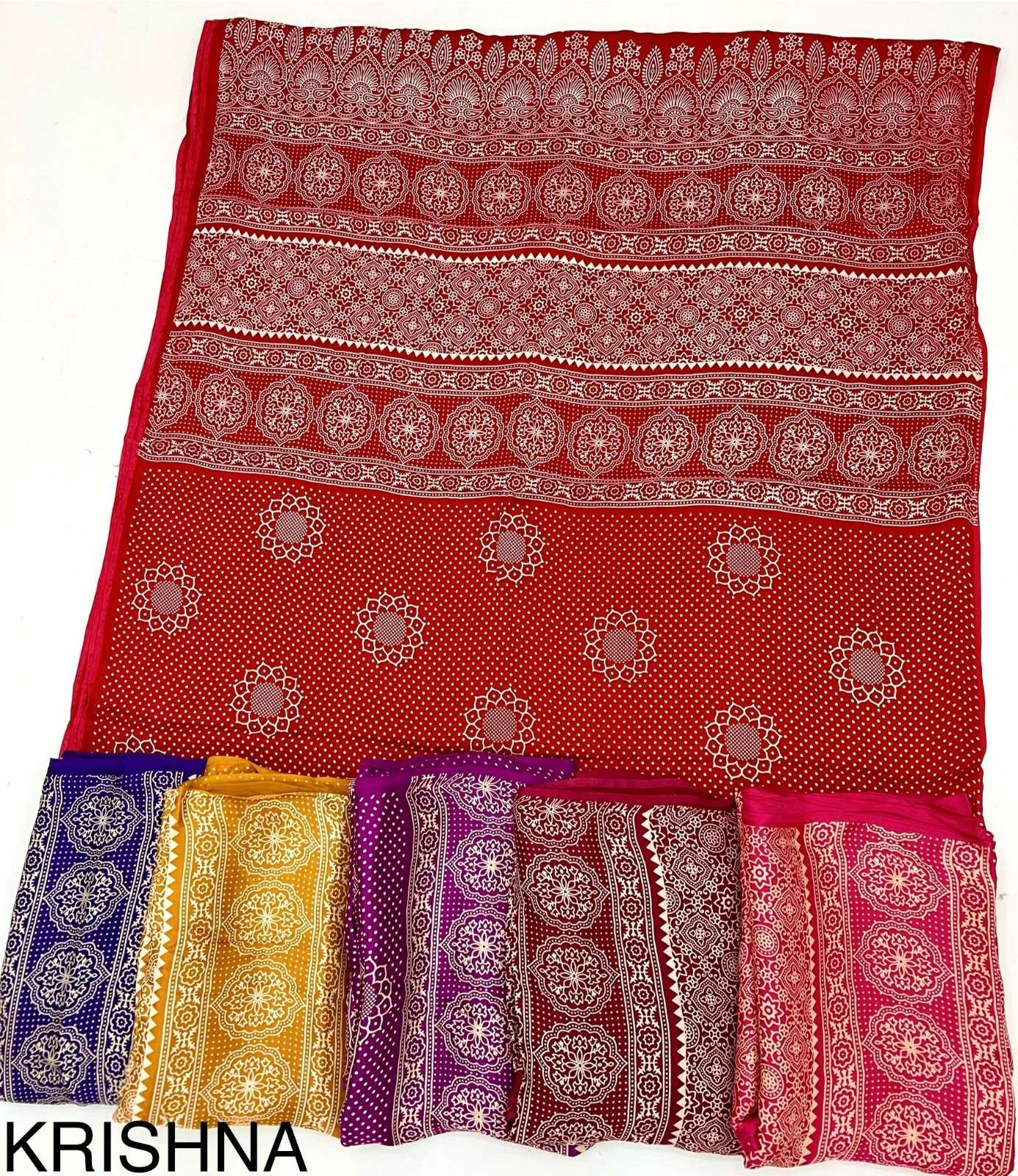 ➡️Catalog - *Krishna* ➡️Fabric - *Pure Modal Bandhani with Hand Block Print* ➡️Rate - *895+5%* *100% Quality assured Item*