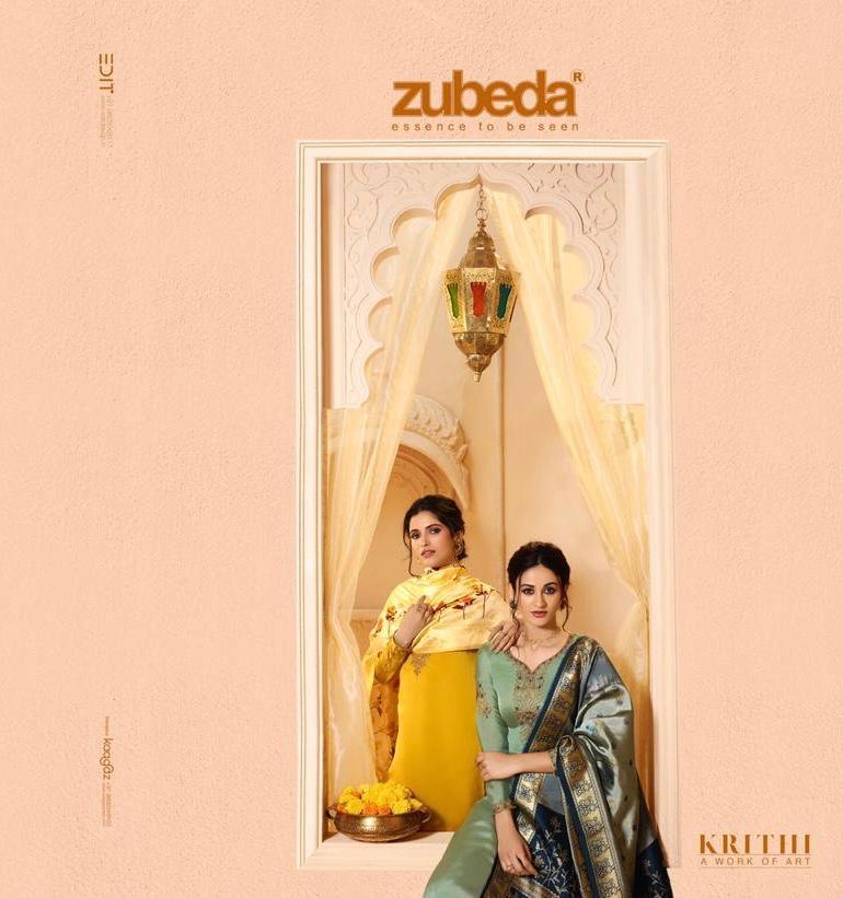Krithi Banarasi Digital Dupatta By Zubeda Series 16401 To 16408 Satin Georgette Embroidered Designer Party Wear Suits Wholesale Supplier Gujarat