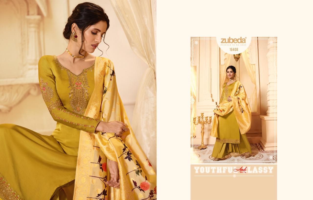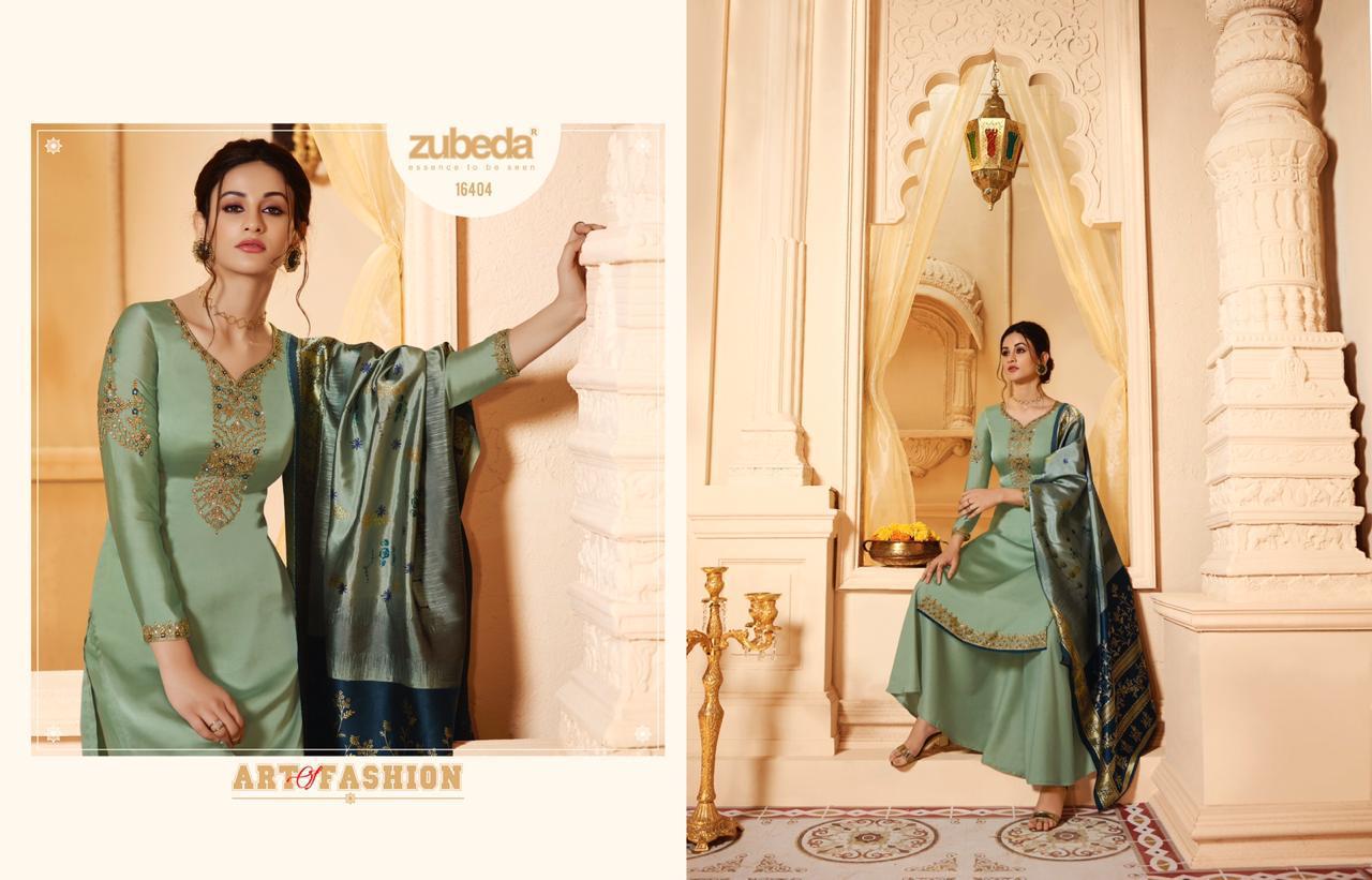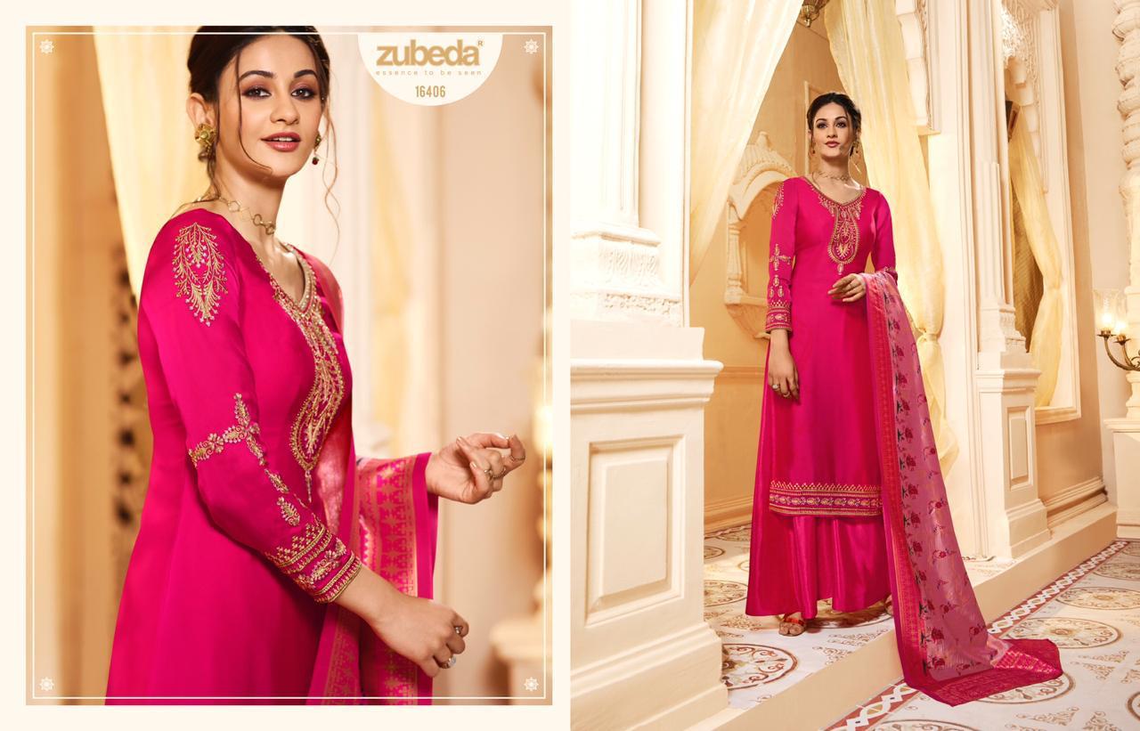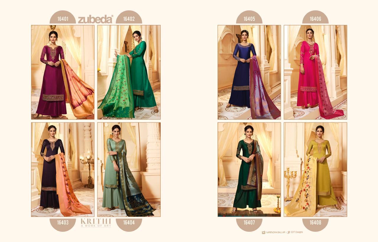 Buy Online Krithi Banarasi Digital Dupatta By Zubeda Series 16401 To 16408 Satin Georgette Embroidered Designer Party Wear Suits Wholesale Supplier Gujarat 8 Pcs of Full Catalogue at Wholesale Price. Looking for Krithi Banarasi Digital Dupatta By Zubeda Series 16401 To 16408 Satin Georgette Embroidered Designer Party Wear Suits Wholesale Supplier Gujarat Full Catalouge at Best Price? Buy Now Krithi Banarasi Digital Dupatta By Zubeda Series 16401 To 16408 Satin Georgette Embroidered Designer Party Wear Suits Wholesale Supplier Gujarat at Wholesale Rate of Rs 13560 with Total 8 Pcs from authroized dealer and supplier of ZUBEDA Brand. Cost of Each piece is just only Rs 1695 which is very low and affordable price to resale the product in your retail store ,This is Surat based Wholesale Supplier & Dealer of ZUBEDA Brand. Click on Brand name to Know more about ZUBEDA Brand's products.Call or Whatsapp on 9898838984 for booking or enquiry