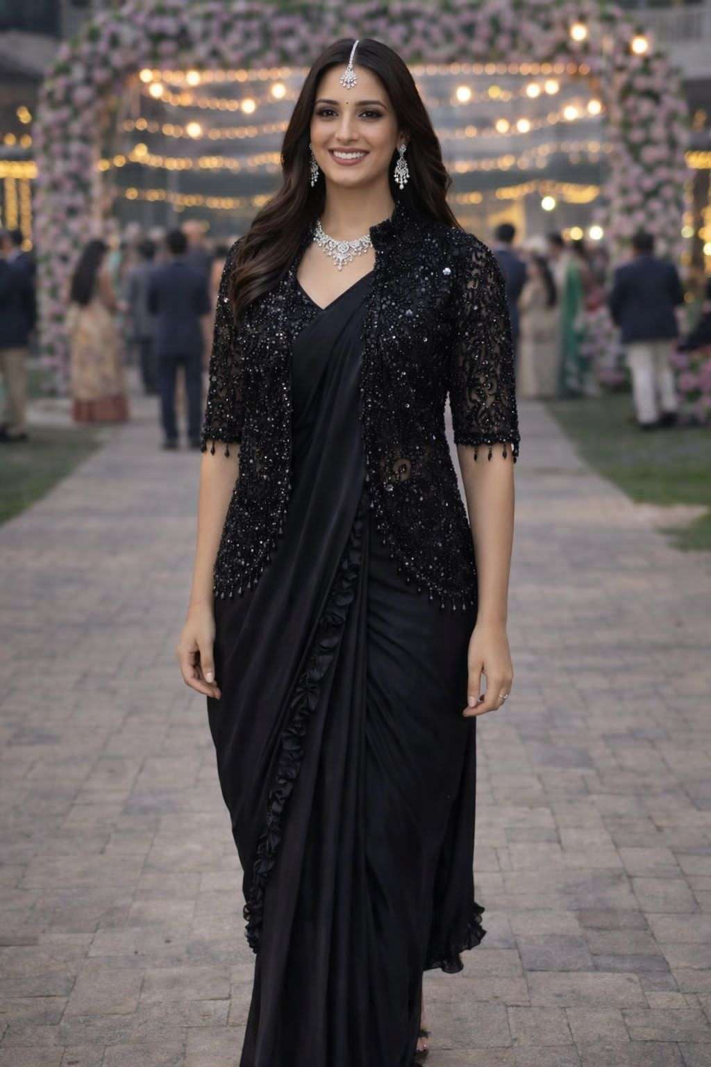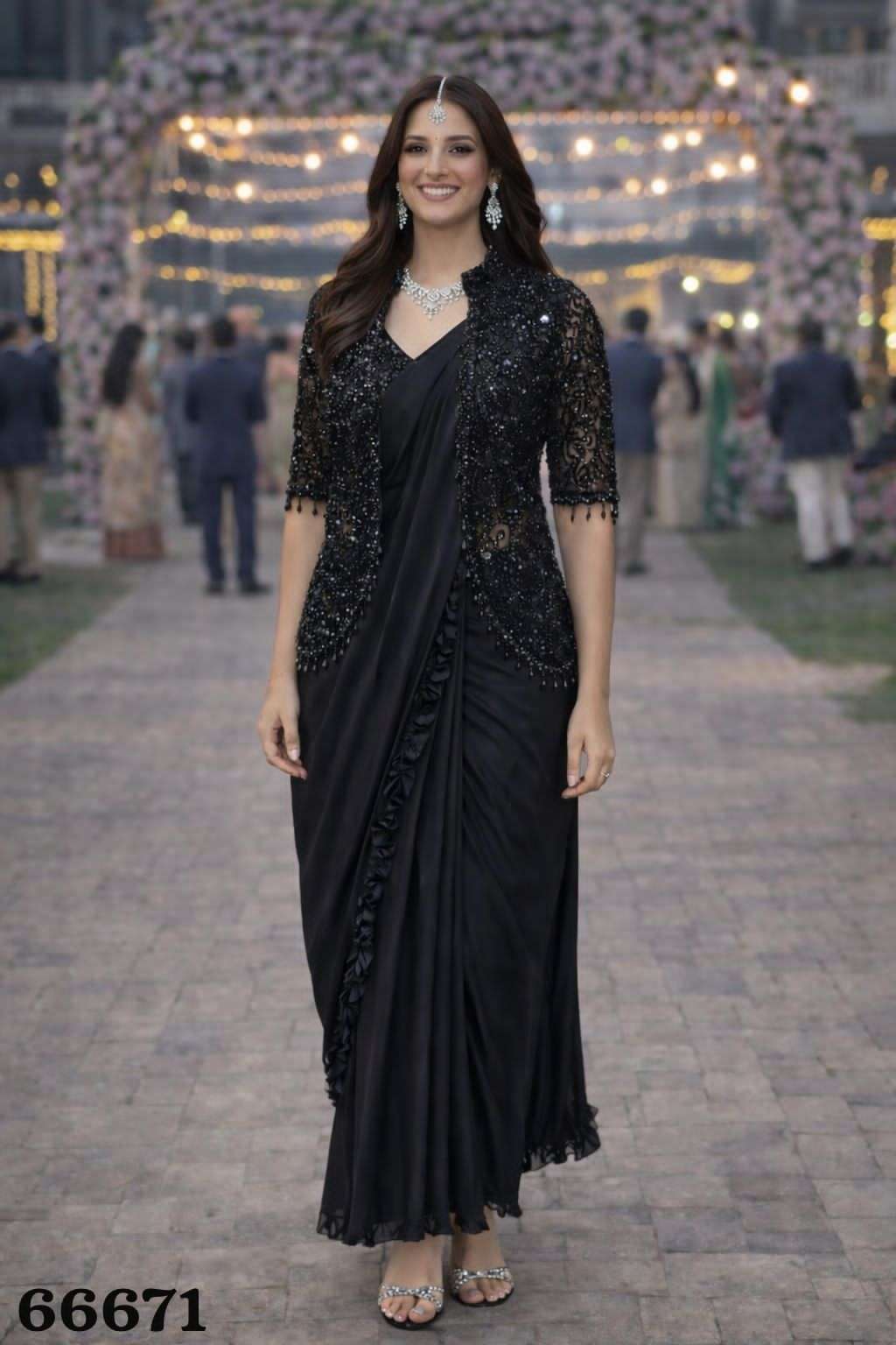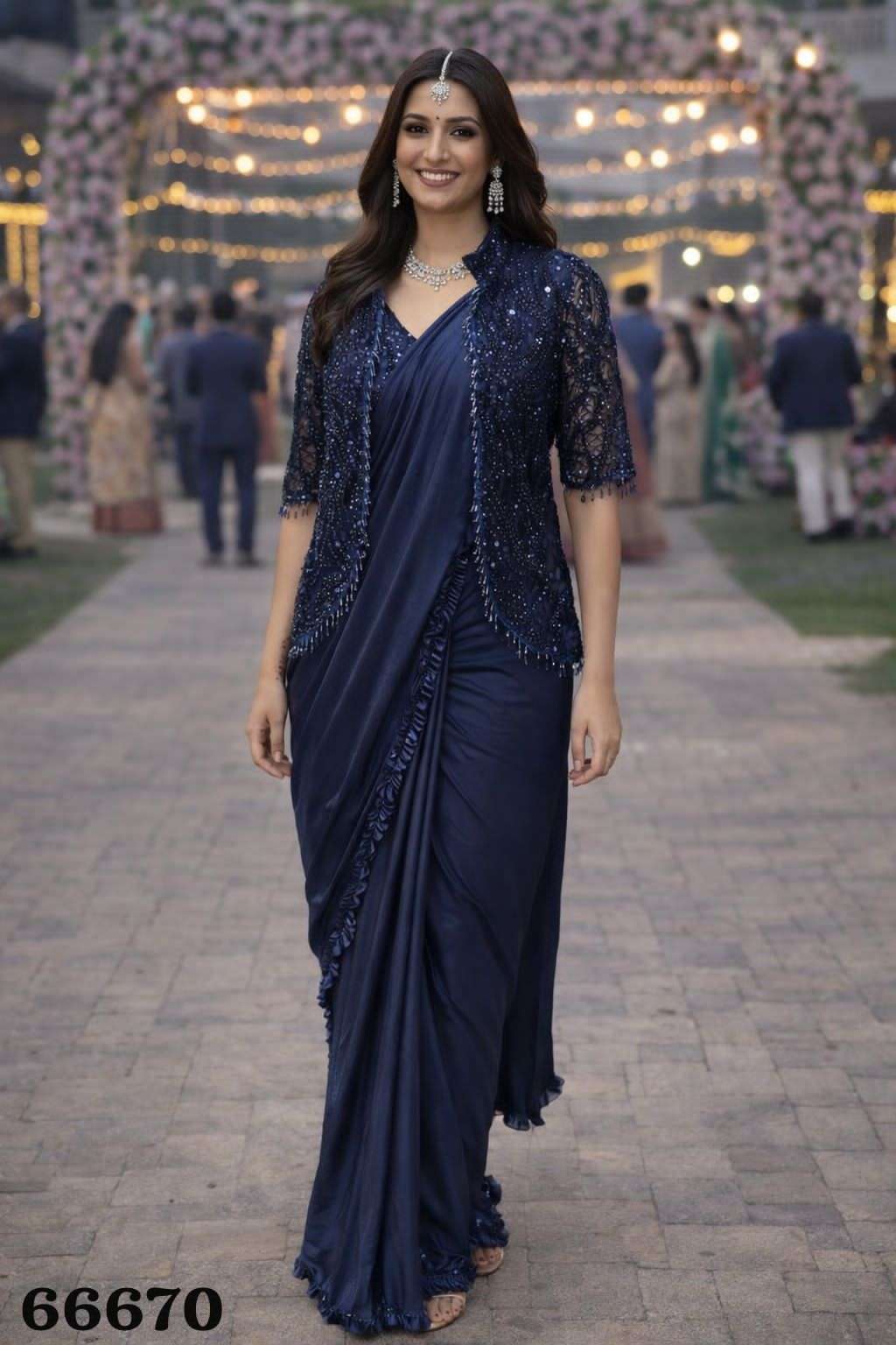FABRIC - REAL PREMIUM COATING SATIN ( READY TO WEAR SAREE WITH FULL JACKET WORK 38 SIZE FULL STICH WITH 4 INCH MARJIN )