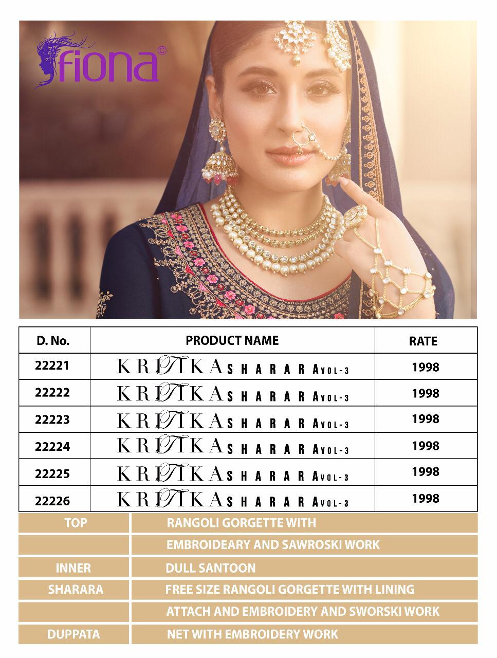 Fiona Kritika Sharara vol -3 . Set to set . Rate -1998 per pcs . Set to set. GST 5 Percent Extra. Delivery 2 days . * Limited sets * |