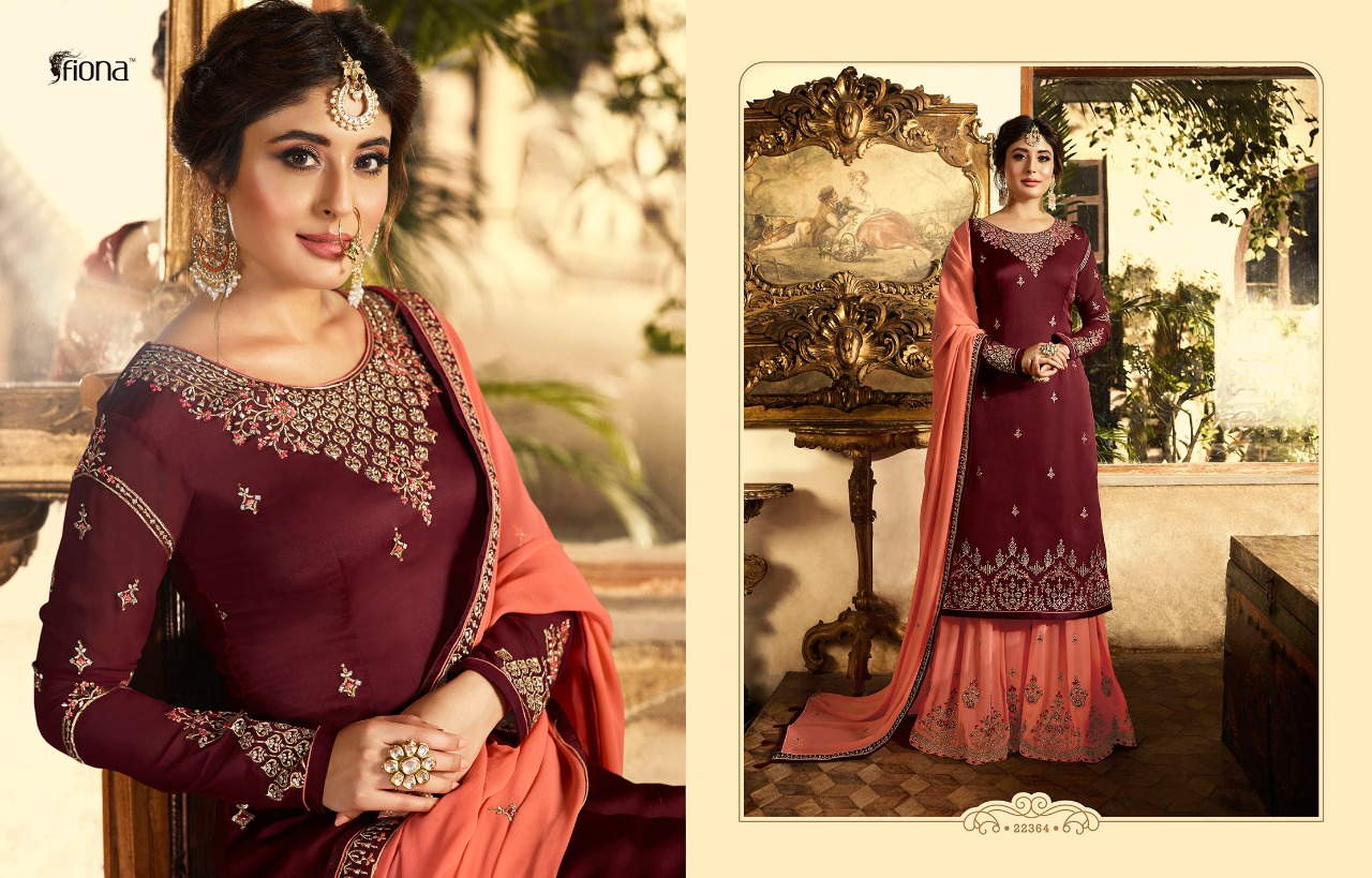 Kritika Sarara Vol 6 By Fiona 22361 Series Fancy Satin Georgette Sarara Suit Catlog Wholesaler Surat