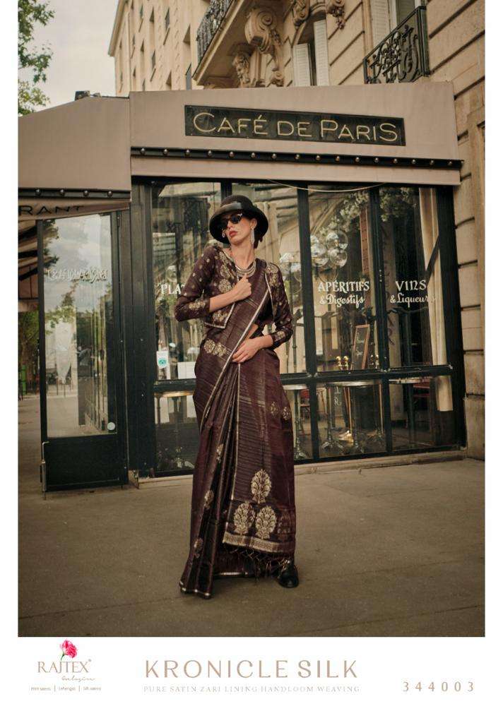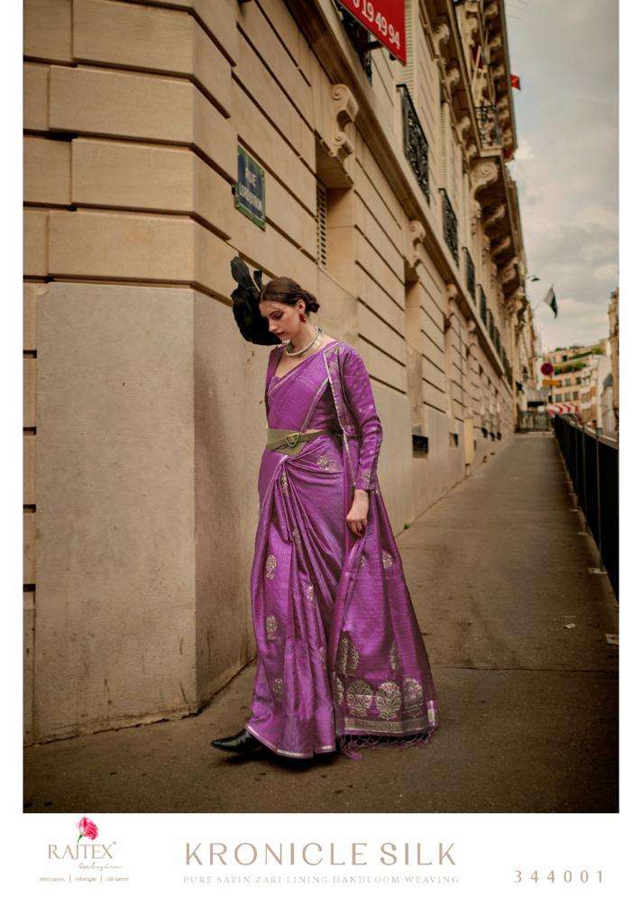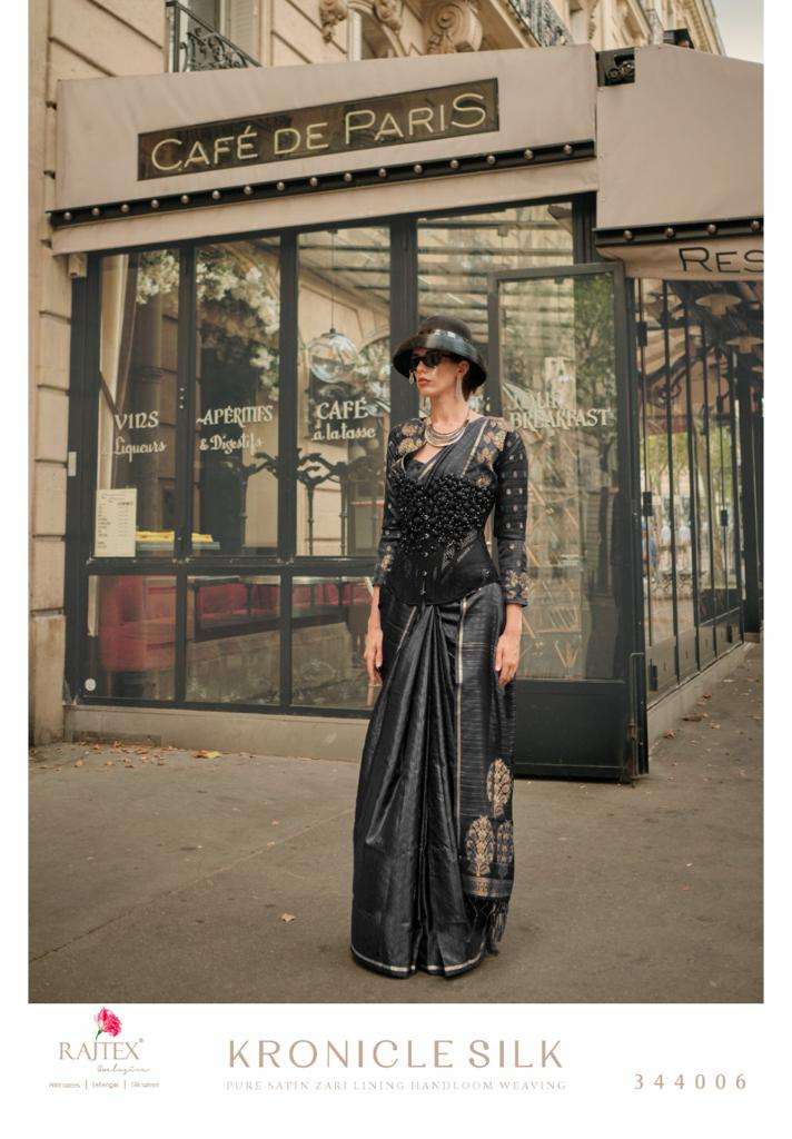 Kronicle Silk Series 344001 To 344007 by Rajtex Satin saree collection manufacturer surat