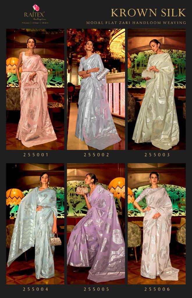 Brand Rajtex Catalogue -KROWN SILK Series -255001 to 255006 Rate-1295/- Fabric- Modal flat zari Handloom weaving Series - 255001 to 255006 Gst 5 per Extra Book your order now SINGLE AVAILABLE 100+single |