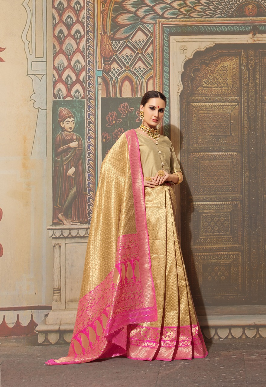 Krushika Silk Shangrila Presents chaap concept for the pure Banarasi Silk Saree with the new range of elegant colours. One of the Finest weaving catalogues with great designing. 6 pcs 1095/- Set to set only 5% GST |