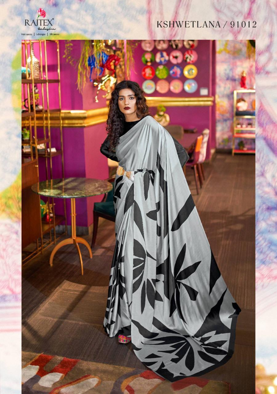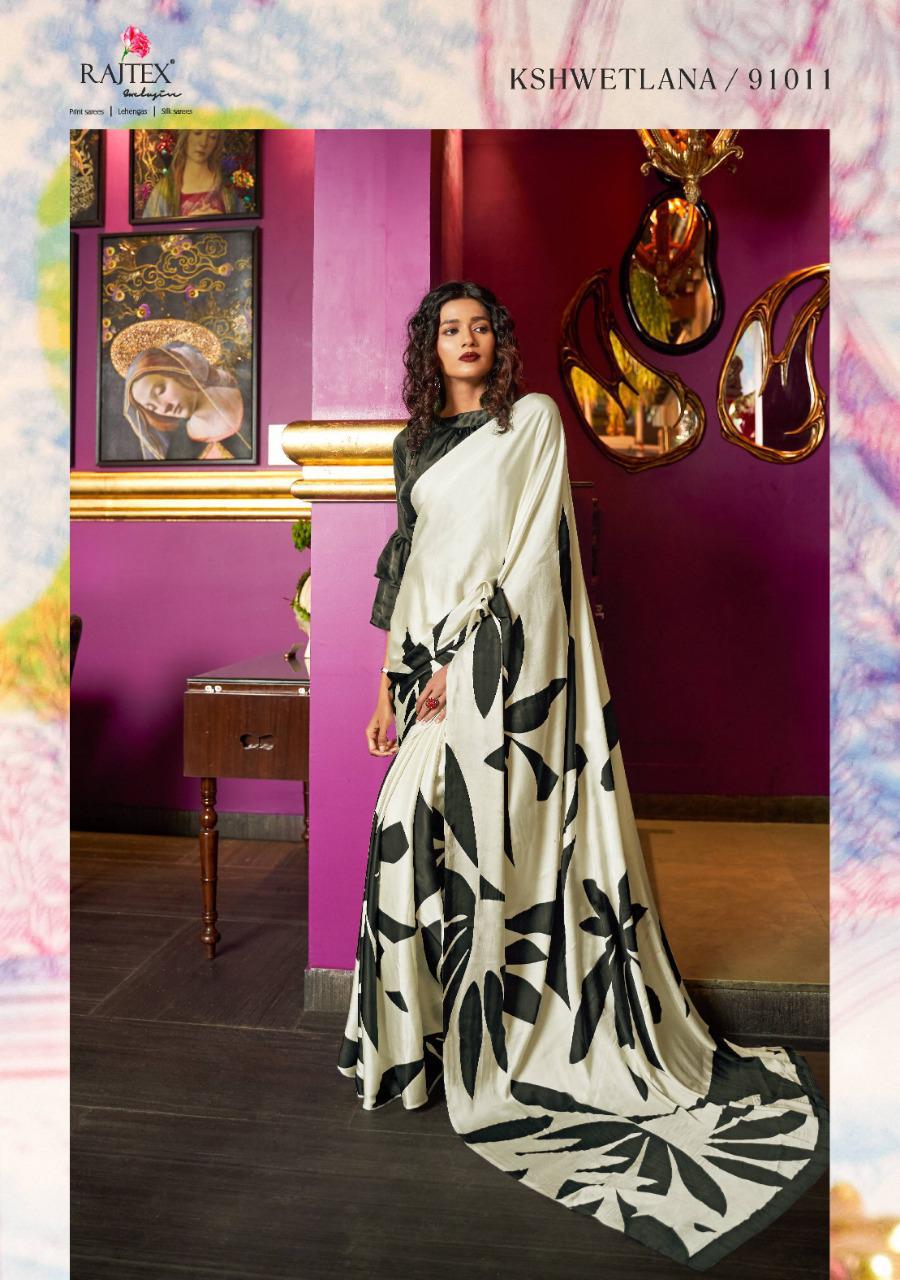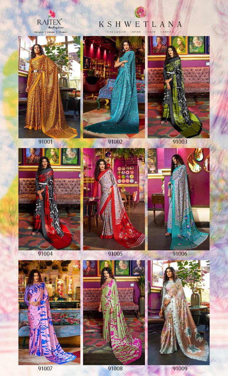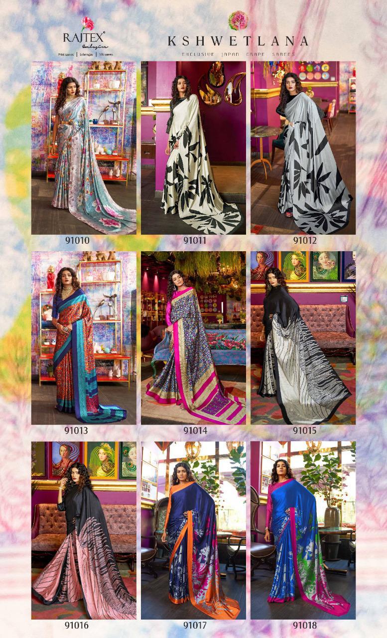 Kshwetlana By Raj Tex Series 91001 To 91018 Japan Crep Satin Sarees Wholesale Supplier And Trader Surat