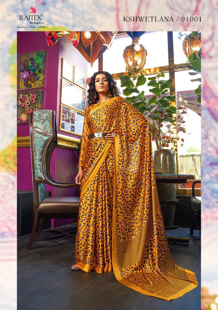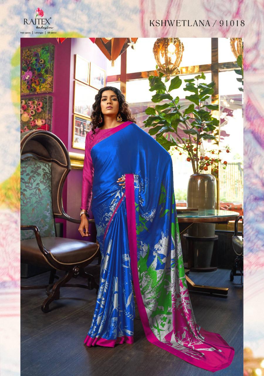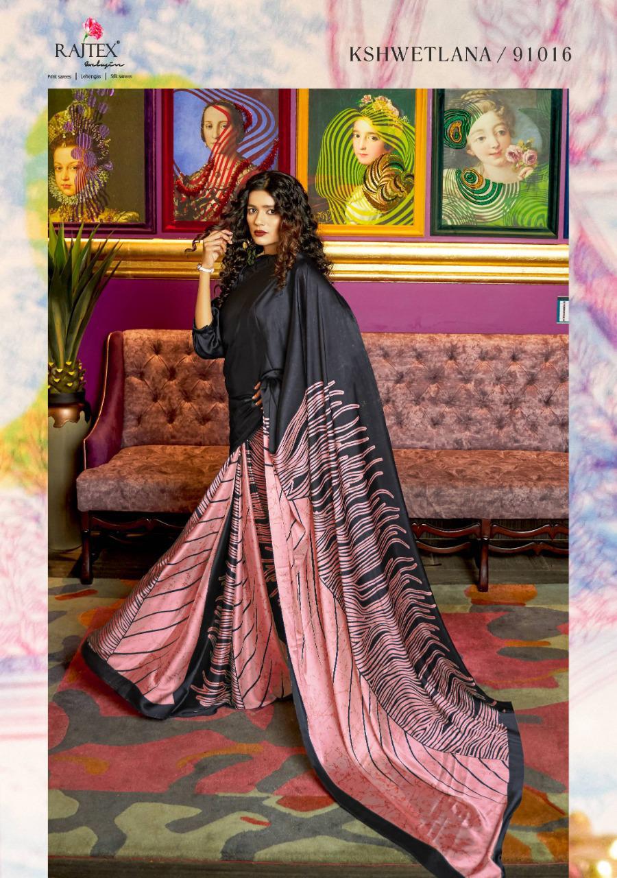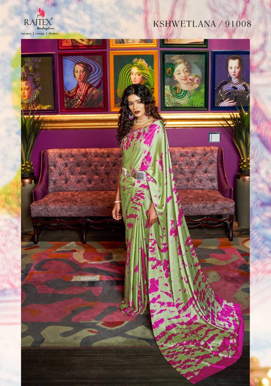 Kshwetlana By Raj Tex Series 91001 To 91018 Japan Crep Satin Sarees Wholesale Supplier And Trader Surat