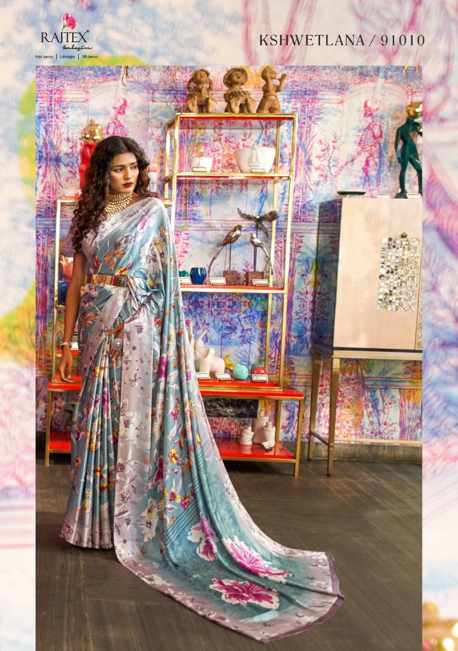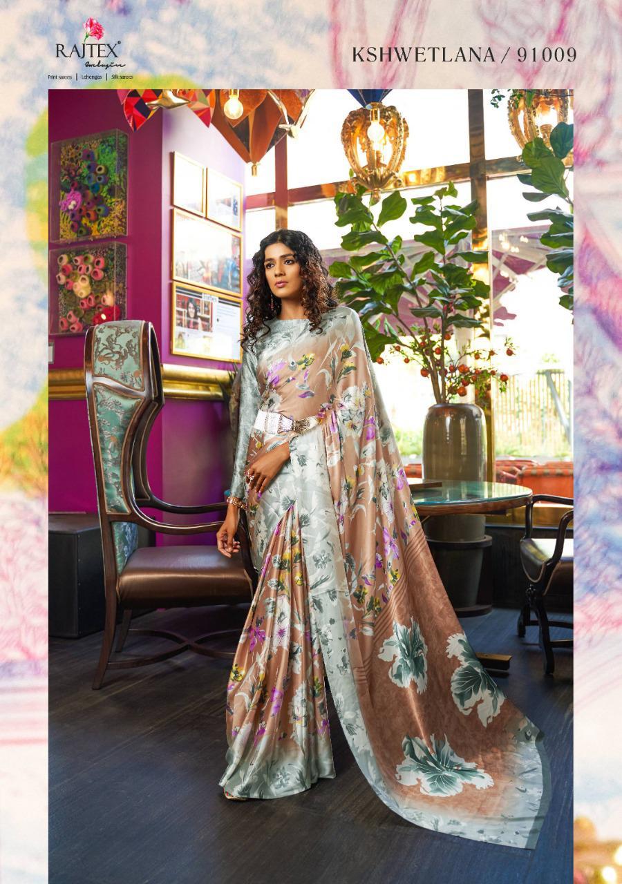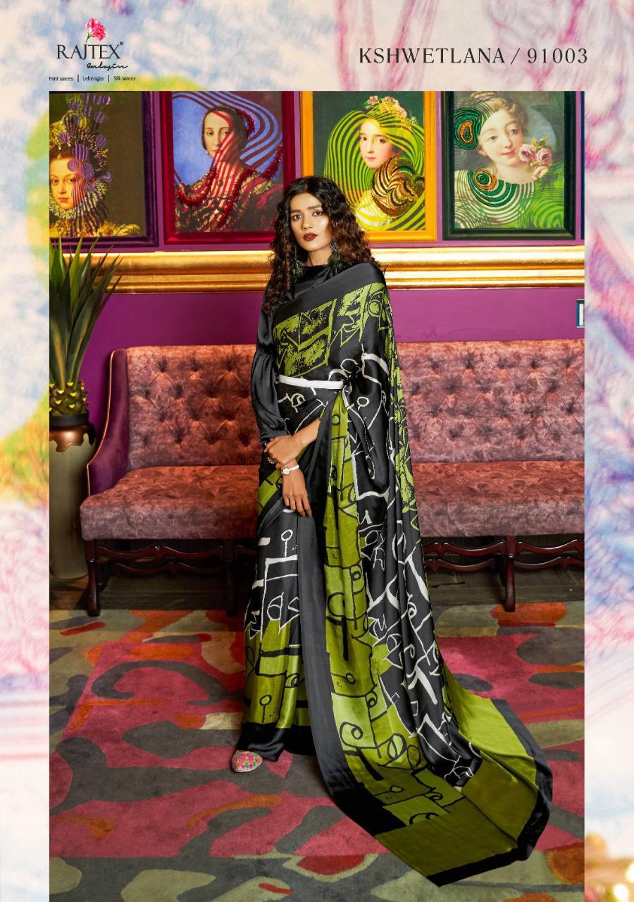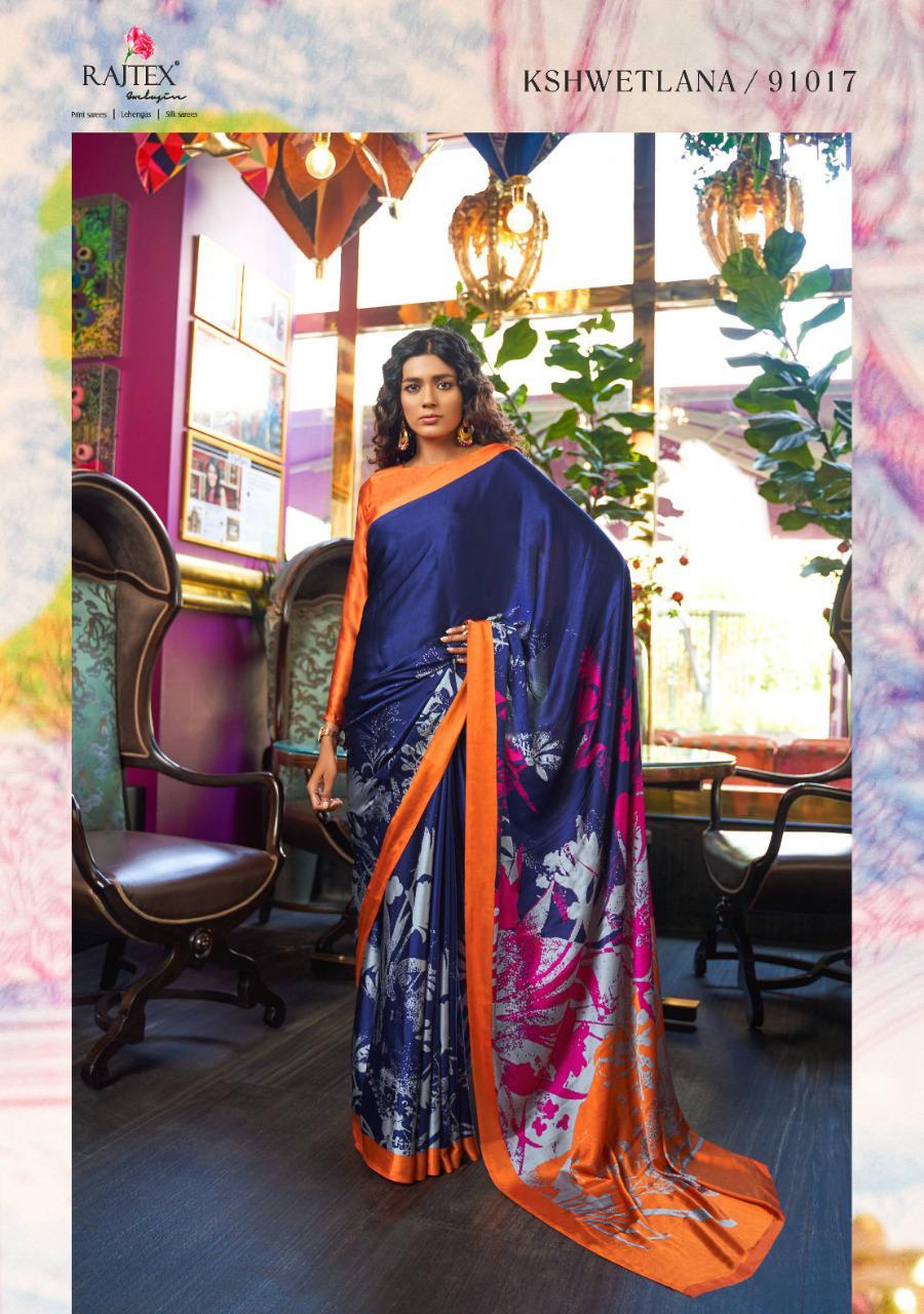 Kshwetlana By Raj Tex Series 91001 To 91018 Japan Crep Satin Sarees Wholesale Supplier And Trader Surat