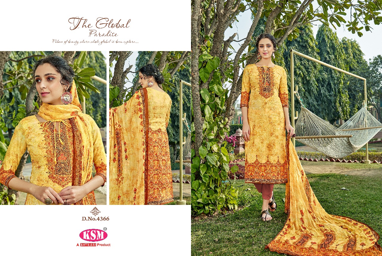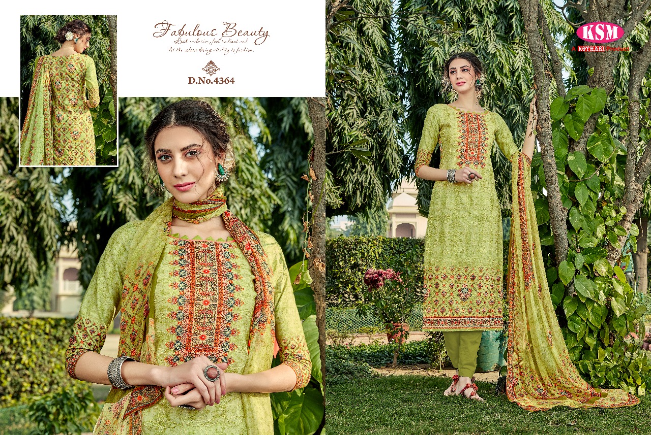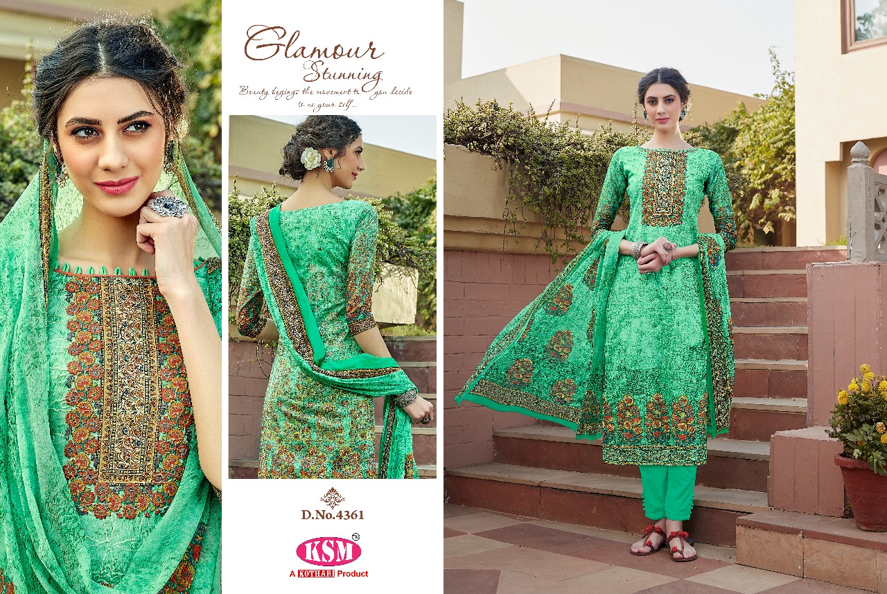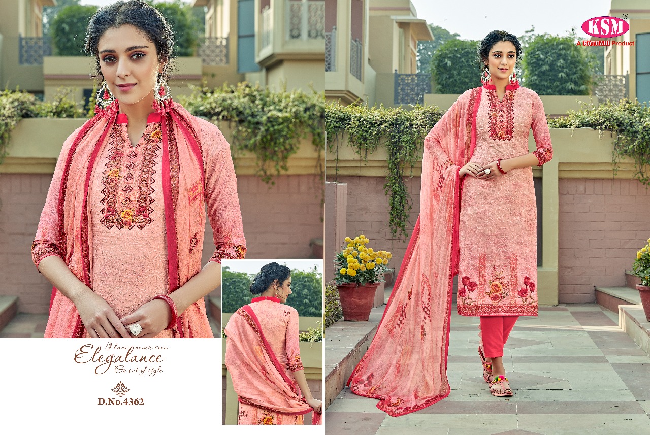 Buy Online Ksm Kothari Vela 4361 To 4368 Series Pakistani Suits Catalog 8 Pcs of Full Catalogue at Wholesale Price. Looking for Ksm Kothari Vela 4361 To 4368 Series Pakistani Suits Catalog Full Catalouge at Best Price? Buy Now Ksm Kothari Vela 4361 To 4368 Series Pakistani Suits Catalog at Wholesale Rate of Rs 10360 with Total 8 Pcs from authroized dealer and supplier of KSM Brand. Cost of Each piece is just only Rs 1295 which is very low and affordable price to resale the product in your retail store ,This is Surat based Wholesale Supplier & Dealer of KSM Brand. Click on Brand name to Know more about KSM Brand's products.Call or Whatsapp on 9898838984 for booking or enquiry