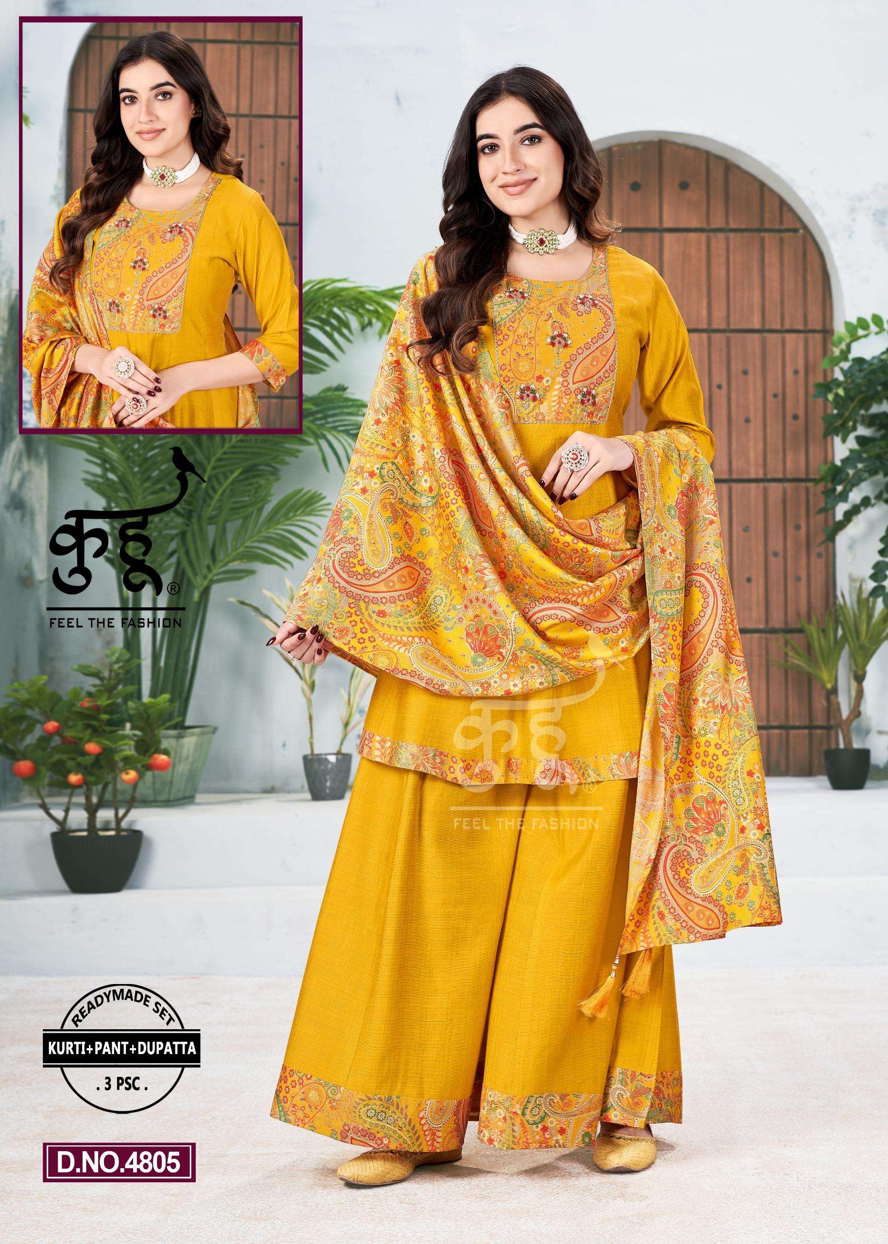 Buy Online KUHU FANCY plazzo suit collection manufacturer surat 4 Pcs of Full Catalogue at Wholesale Price. Looking for KUHU FANCY plazzo suit collection manufacturer surat Full Catalouge at Best Price? Buy Now KUHU FANCY plazzo suit collection manufacturer surat at Wholesale Rate of Rs 6996 with Total 4 Pcs from authroized dealer and supplier of BRAND'S Brand. Cost of Each piece is just only Rs 1749 which is very low and affordable price to resale the product in your retail store ,This is Surat based Wholesale Supplier & Dealer of BRAND'S Brand. Click on Brand name to Know more about BRAND'S Brand's products.Call or Whatsapp on 9898838984 for booking or enquiry