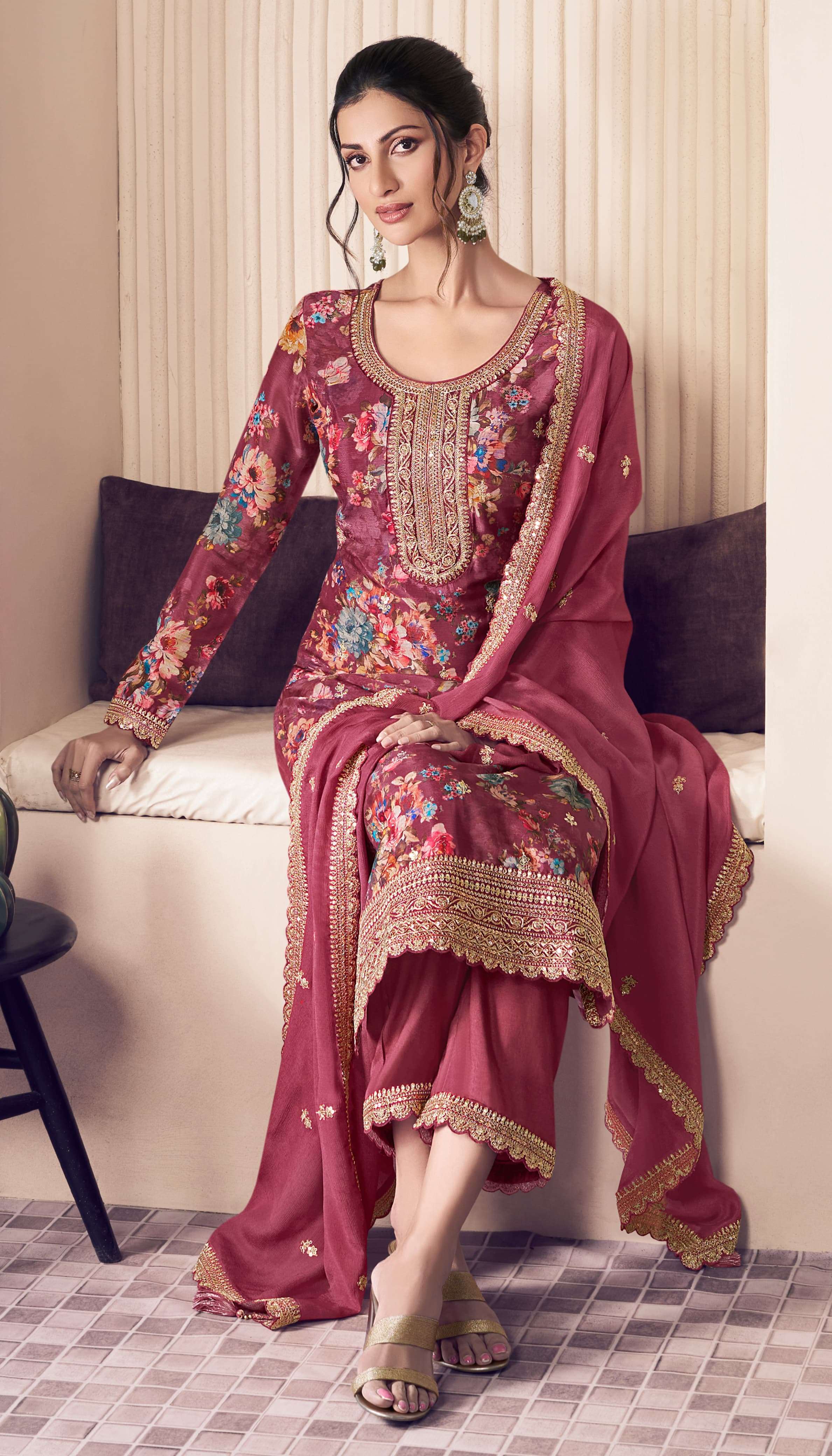*DRESS MATARIALS* * *FABRIC DETAILS :-* * *TOP : DIGITAL PRINTED CHINON WITH EMBROIDERY WORK* * *BOTTOM : EMBROIDERED SANTOON* * *DUPATTA : EMBROIDERED CHINON*