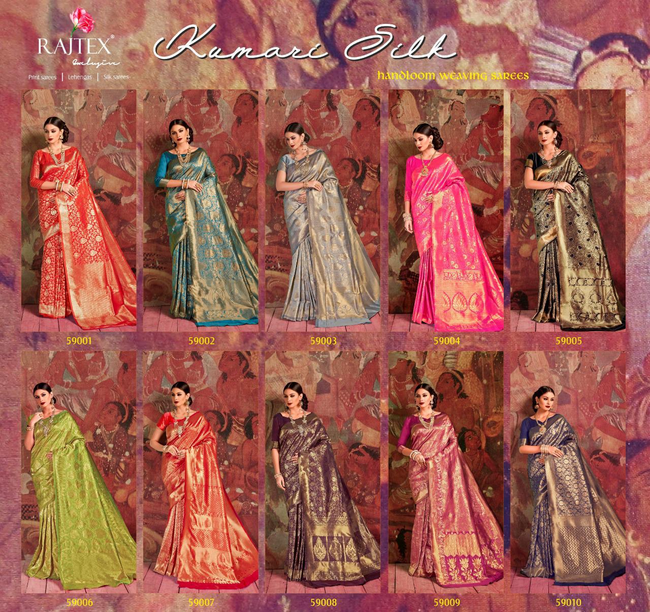 Kumari Silk By Raj Tex 59001 Series Fancy Party Wear Soft Silk Saree Catlog Wholesale Dealer Surat