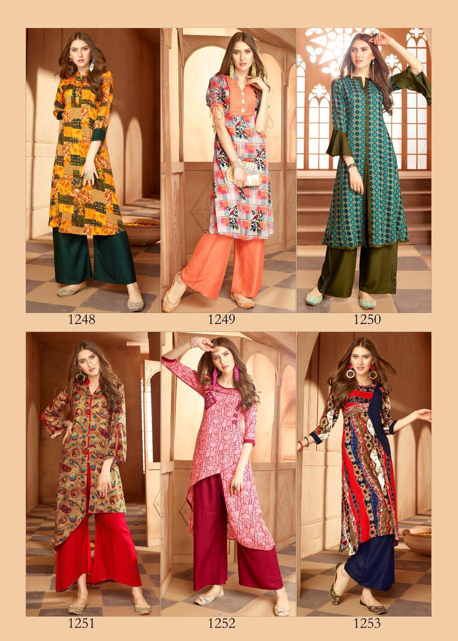 Buy Online Kumb Iconic By Seriema 1248 Series Fancy Reyon Printed Kurti With Plazzo Collection Wholesaler Surat 8 Pcs of Full Catalogue at Wholesale Price. Looking for Kumb Iconic By Seriema 1248 Series Fancy Reyon Printed Kurti With Plazzo Collection Wholesaler Surat Full Catalouge at Best Price? Buy Now Kumb Iconic By Seriema 1248 Series Fancy Reyon Printed Kurti With Plazzo Collection Wholesaler Surat at Wholesale Rate of Rs 5800 with Total 8 Pcs from authroized dealer and supplier of SPARROW Brand. Cost of Each piece is just only Rs 725 which is very low and affordable price to resale the product in your retail store ,This is Surat based Wholesale Supplier & Dealer of SPARROW Brand. Click on Brand name to Know more about SPARROW Brand's products.Call or Whatsapp on 9898838984 for booking or enquiry