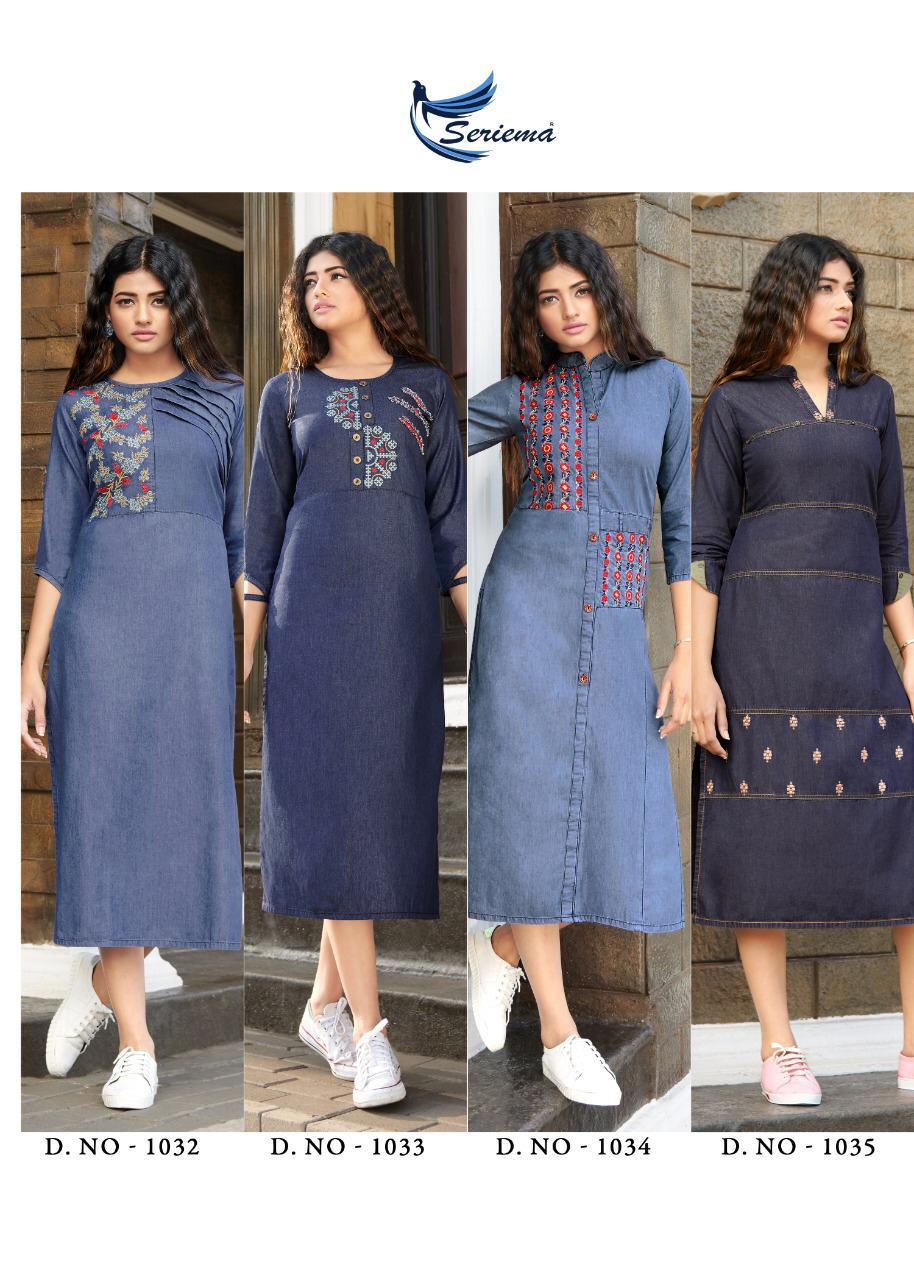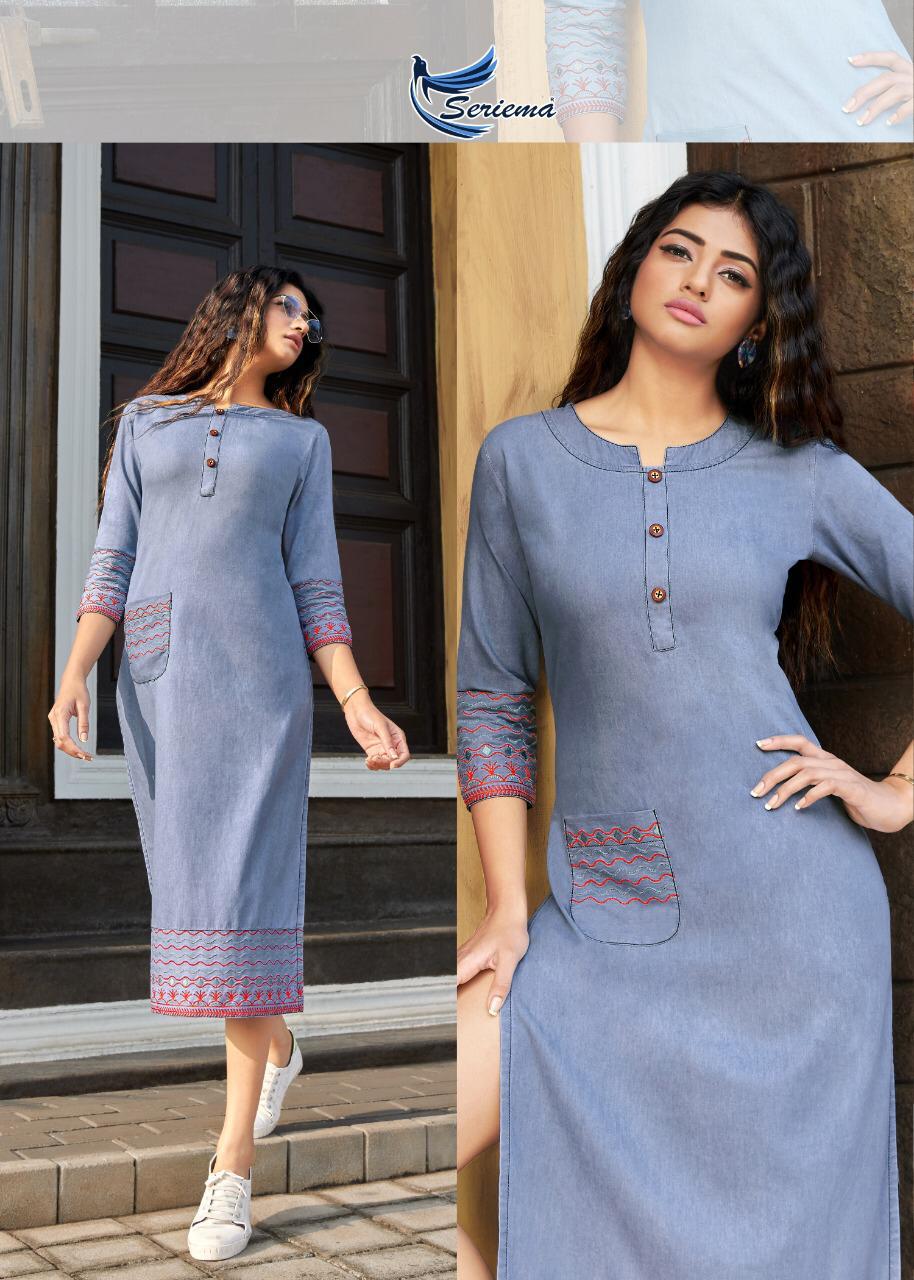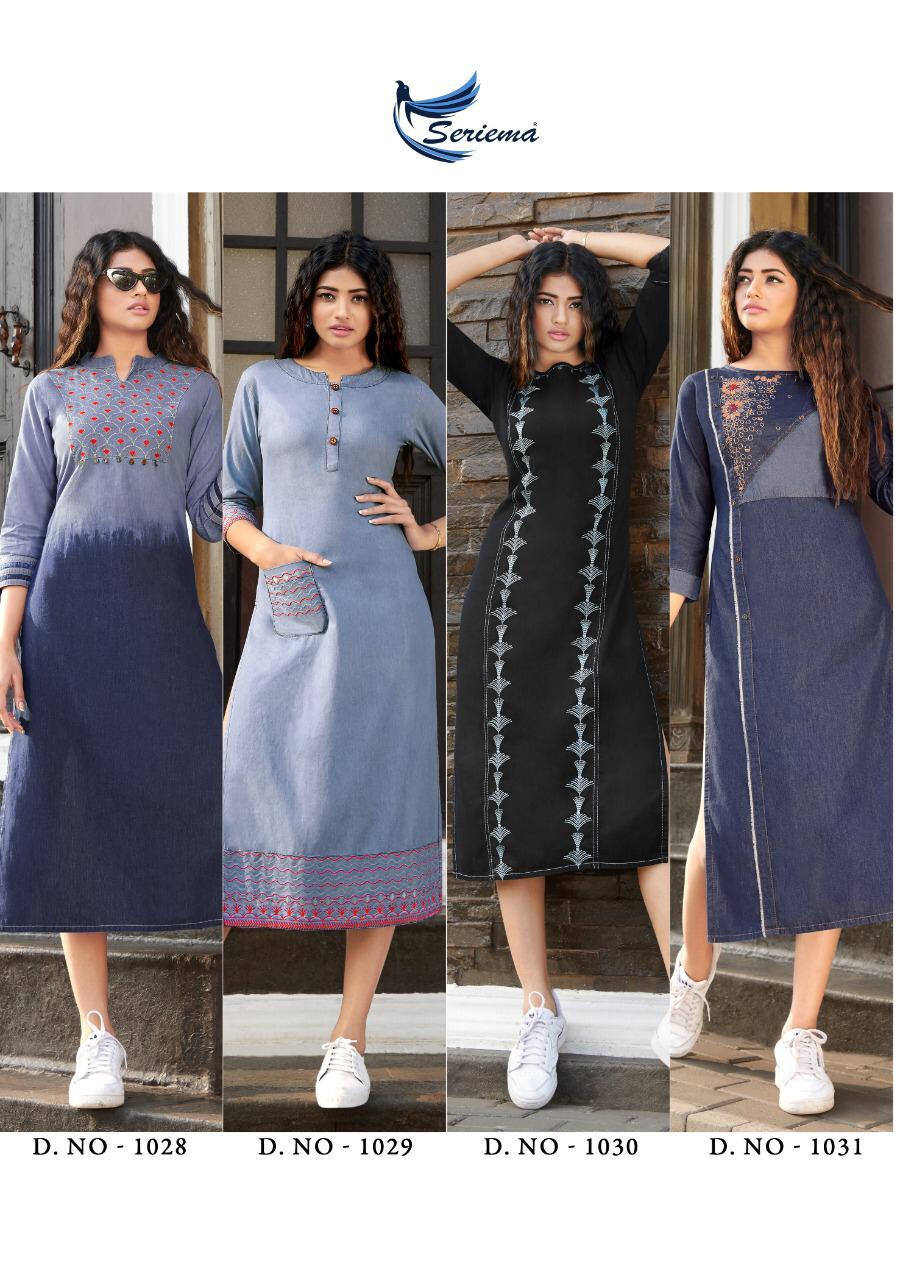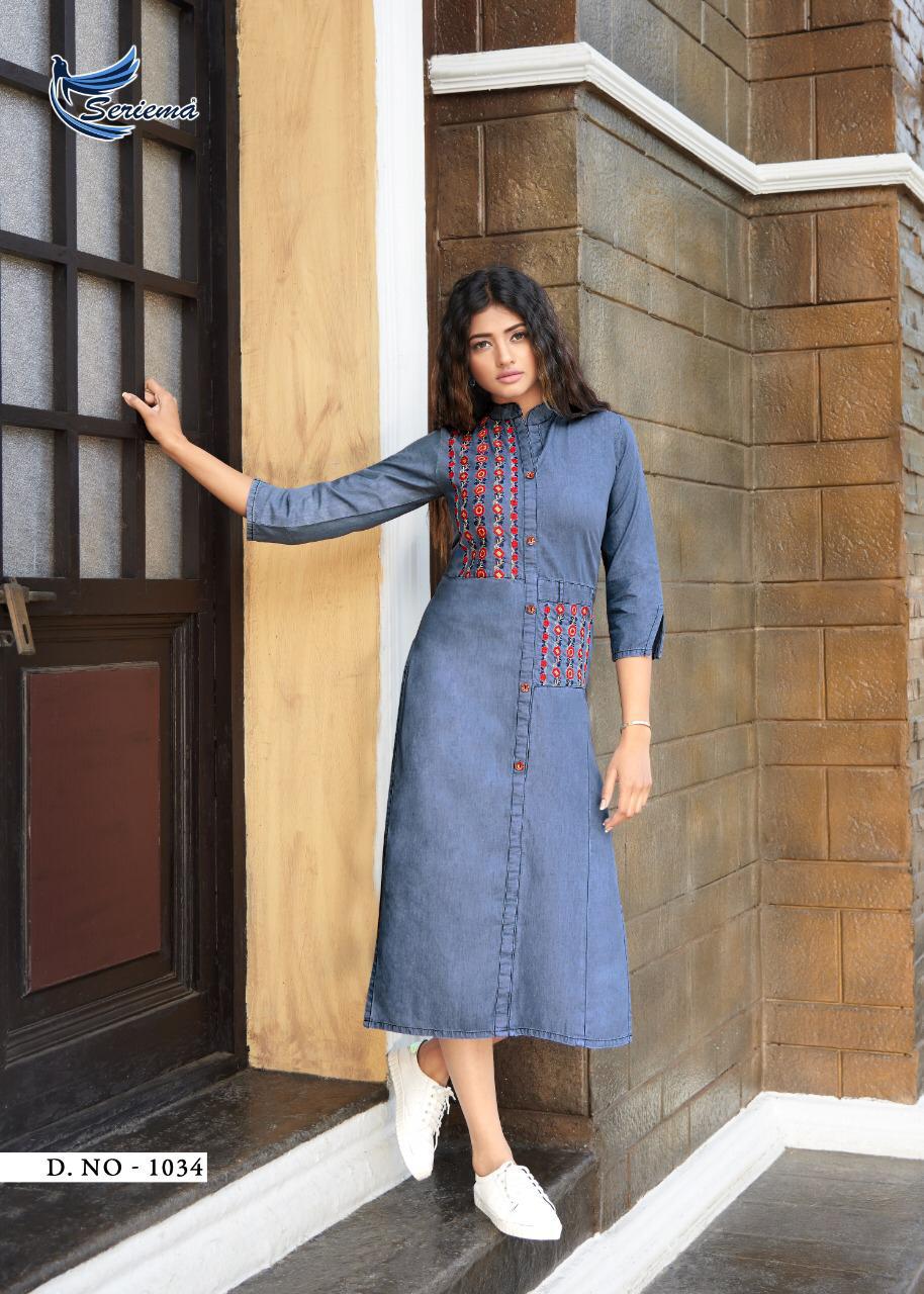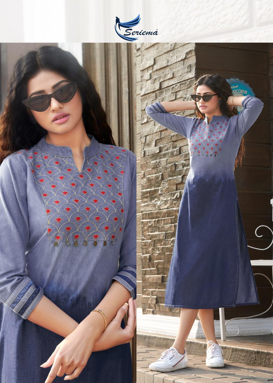 Hello sir /madam 8 Dresses beautiful catalogue having designer * FUNKY LOOK * *concept of EMBORIDERY WORK AND DIFFERENT SHADES of DENIM* in combo of Traditional n western fashion�.. SERIEMA®? Always rock & Having always limited stock So please hurry up Book ur order now�.. SERIEMA®?? *Catalogue name* *KUMB PREMIER* ?DetailsFabrics �: *PURE COTTON DENIM * *DIFFERENT SHADES OF DENIM* SIZE : *S* *M* *L* *XL* *2XL* *3XL*      *36* *38* *40* *42* *44* *46* * RATE ?:- 695* *5%GST EXTRA* Set to set Delivery soon *#Merging style with elegance* *#Try it, wear it, love it.* *#Unbeatable_price* *#Summer_collection* *Like and share with your customers ... l* Regards *SERIEMA* |