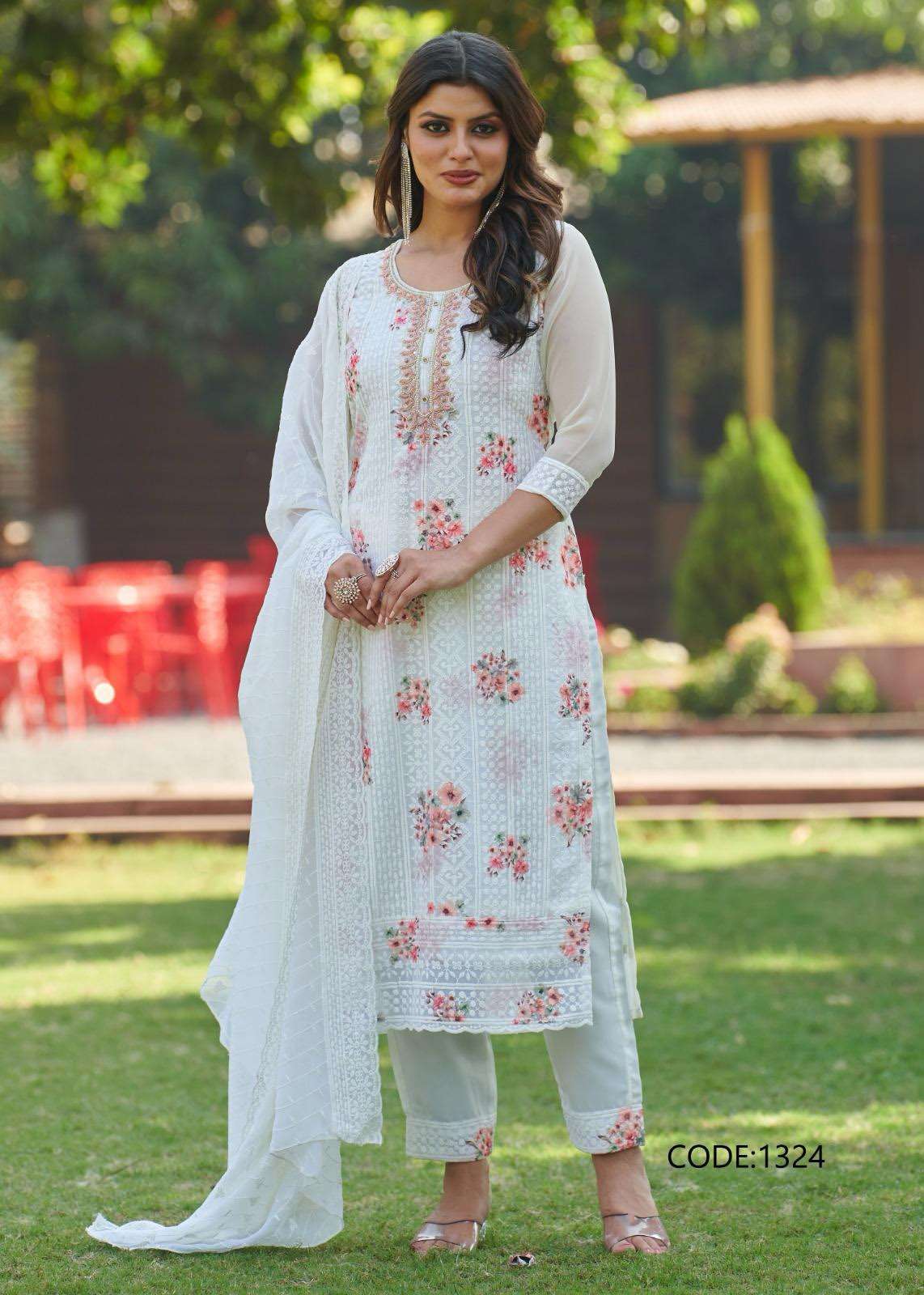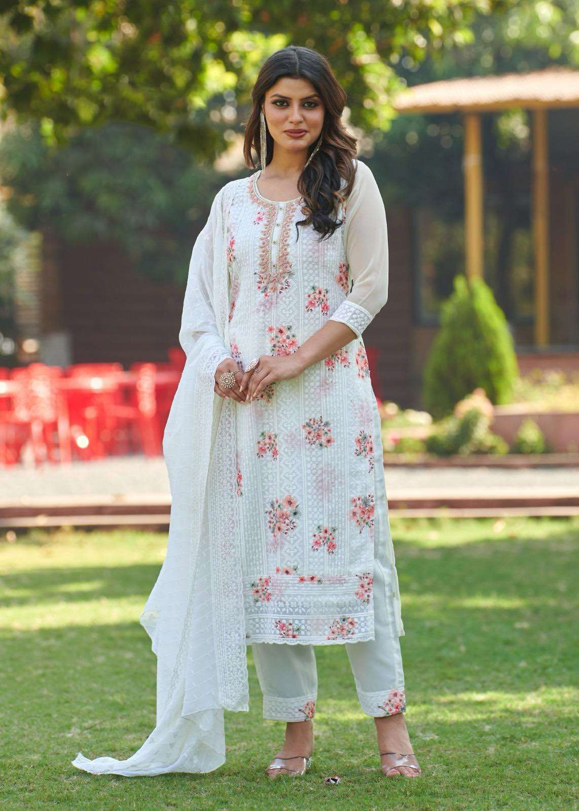 TOP- HEAVY GEORGETTE SHIFFLI WORK WITH HAND WORK NACK WITH WITH DIGITAL PRINT