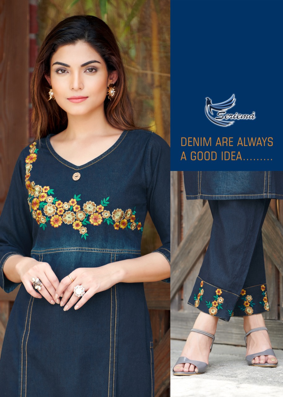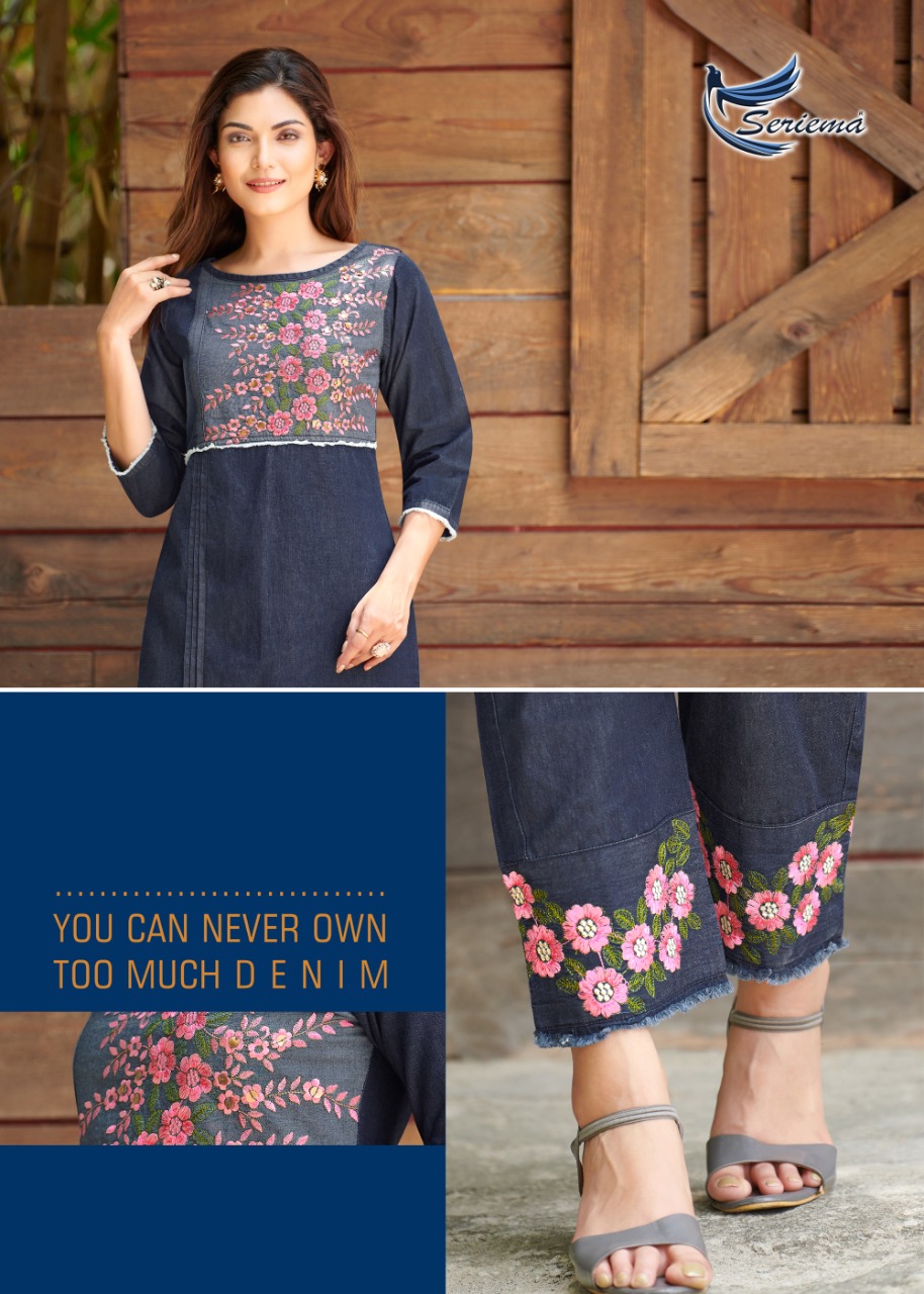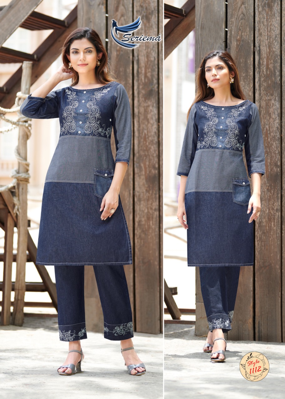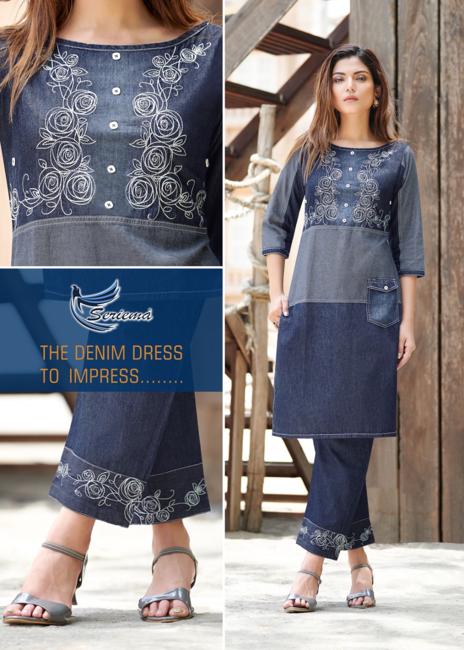 Buy Online Kumb Westin By Seriema Different Shades Of Denim Kurti Pant 6 Pcs of Full Catalogue at Wholesale Price. Looking for Kumb Westin By Seriema Different Shades Of Denim Kurti Pant Full Catalouge at Best Price? Buy Now Kumb Westin By Seriema Different Shades Of Denim Kurti Pant at Wholesale Rate of Rs 0 with Total 6 Pcs from authroized dealer and supplier of Seriema Brand. Cost of Each piece is just only Rs 0 which is very low and affordable price to resale the product in your retail store ,This is Surat based Wholesale Supplier & Dealer of Seriema Brand. Click on Brand name to Know more about Seriema Brand's products.Call or Whatsapp on 9898838984 for booking or enquiry