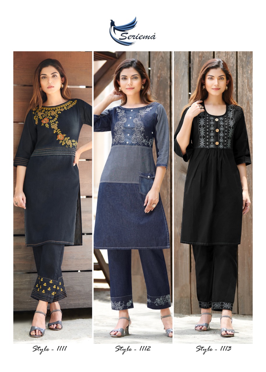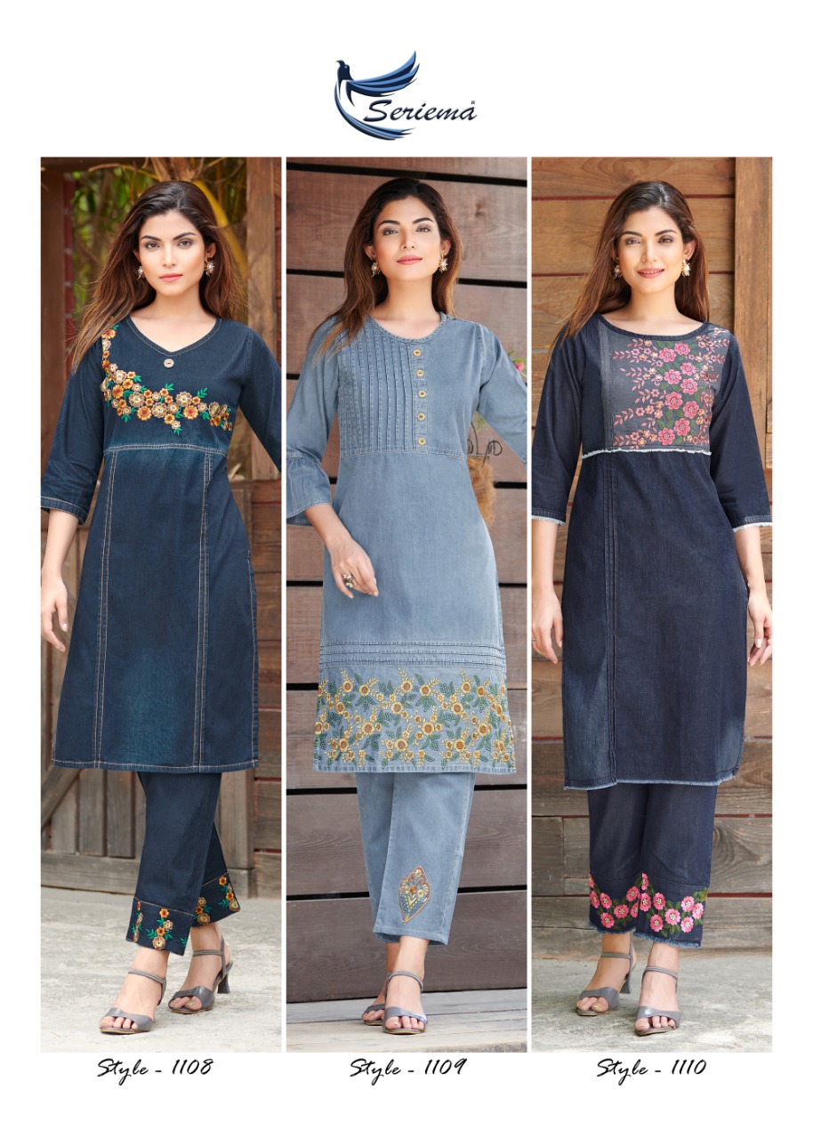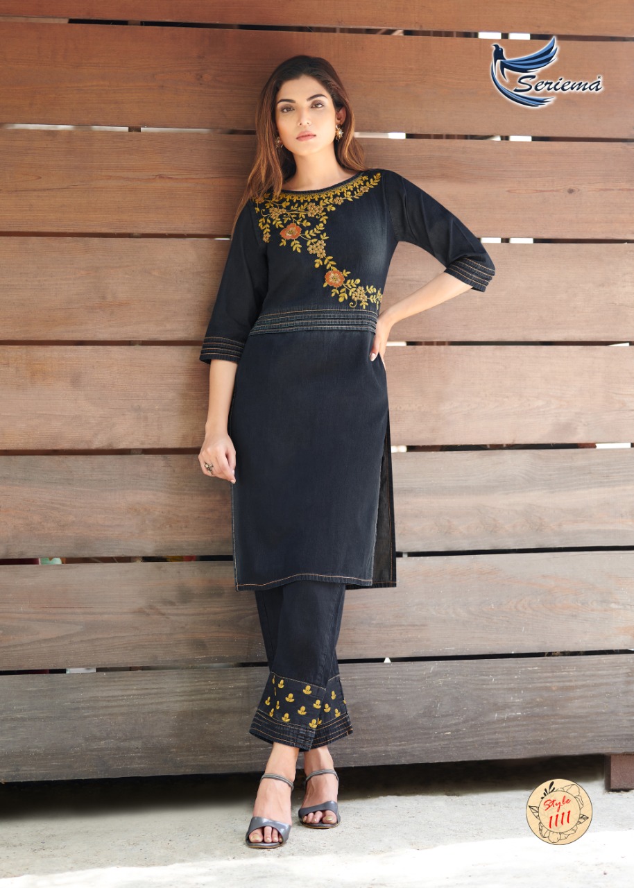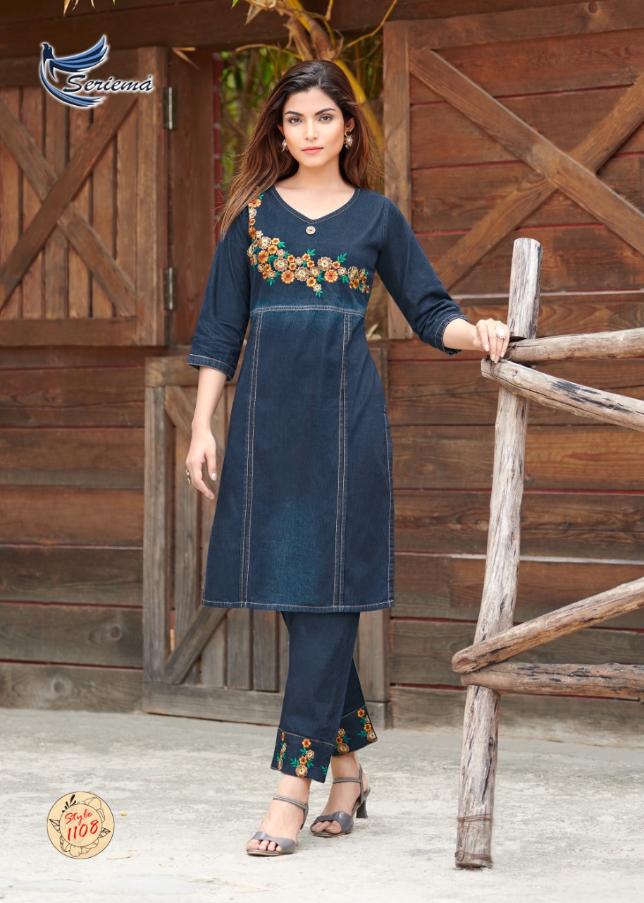 Buy Online Kumb Westin By Seriema Different Shades Of Denim Kurti Pant 6 Pcs of Full Catalogue at Wholesale Price. Looking for Kumb Westin By Seriema Different Shades Of Denim Kurti Pant Full Catalouge at Best Price? Buy Now Kumb Westin By Seriema Different Shades Of Denim Kurti Pant at Wholesale Rate of Rs 0 with Total 6 Pcs from authroized dealer and supplier of Seriema Brand. Cost of Each piece is just only Rs 0 which is very low and affordable price to resale the product in your retail store ,This is Surat based Wholesale Supplier & Dealer of Seriema Brand. Click on Brand name to Know more about Seriema Brand's products.Call or Whatsapp on 9898838984 for booking or enquiry