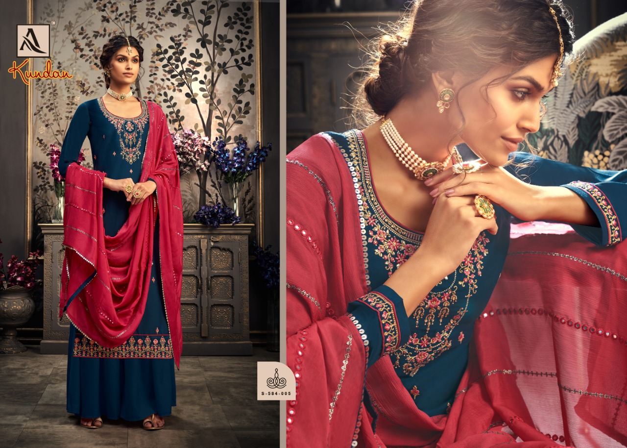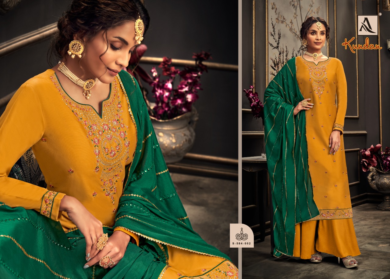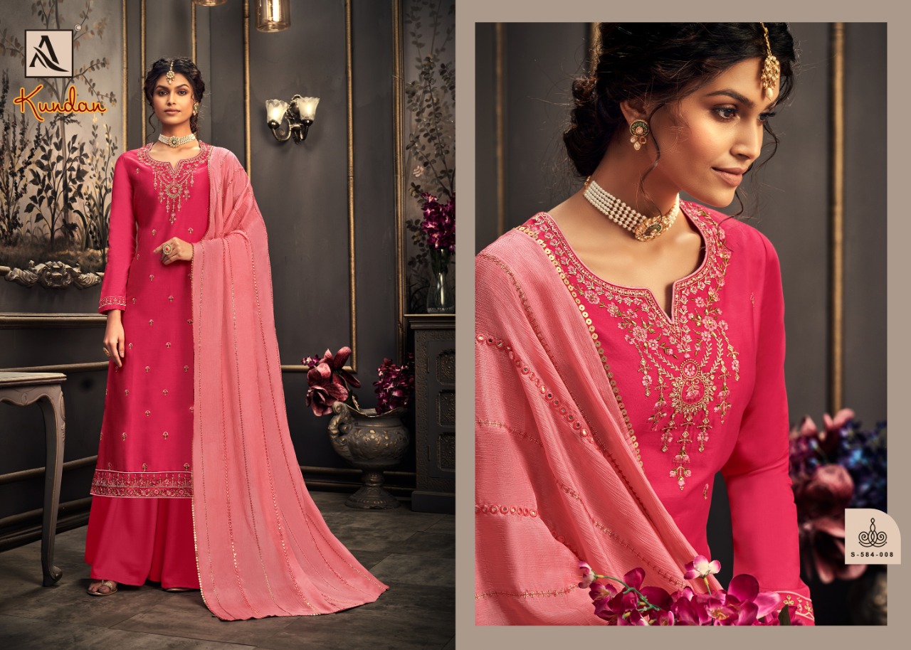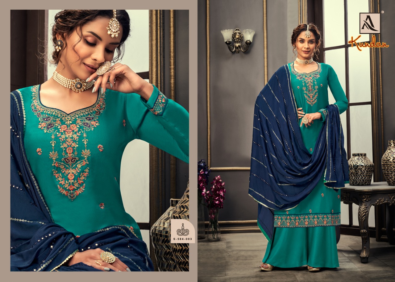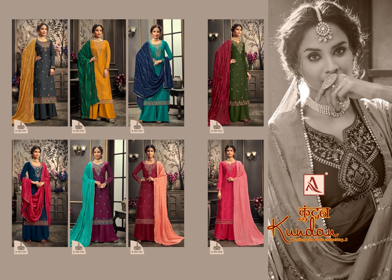 Buy Online Kundan By Alok Suit Manufacturer And Dealer From India 8 Pcs of Full Catalogue at Wholesale Price. Looking for Kundan By Alok Suit Manufacturer And Dealer From India Full Catalouge at Best Price? Buy Now Kundan By Alok Suit Manufacturer And Dealer From India at Wholesale Rate of Rs 7400 with Total 8 Pcs from authroized dealer and supplier of Brand. Cost of Each piece is just only Rs 925 which is very low and affordable price to resale the product in your retail store ,This is Surat based Wholesale Supplier & Dealer of Brand. Click on Brand name to Know more about Brand's products.Call or Whatsapp on 9898838984 for booking or enquiry