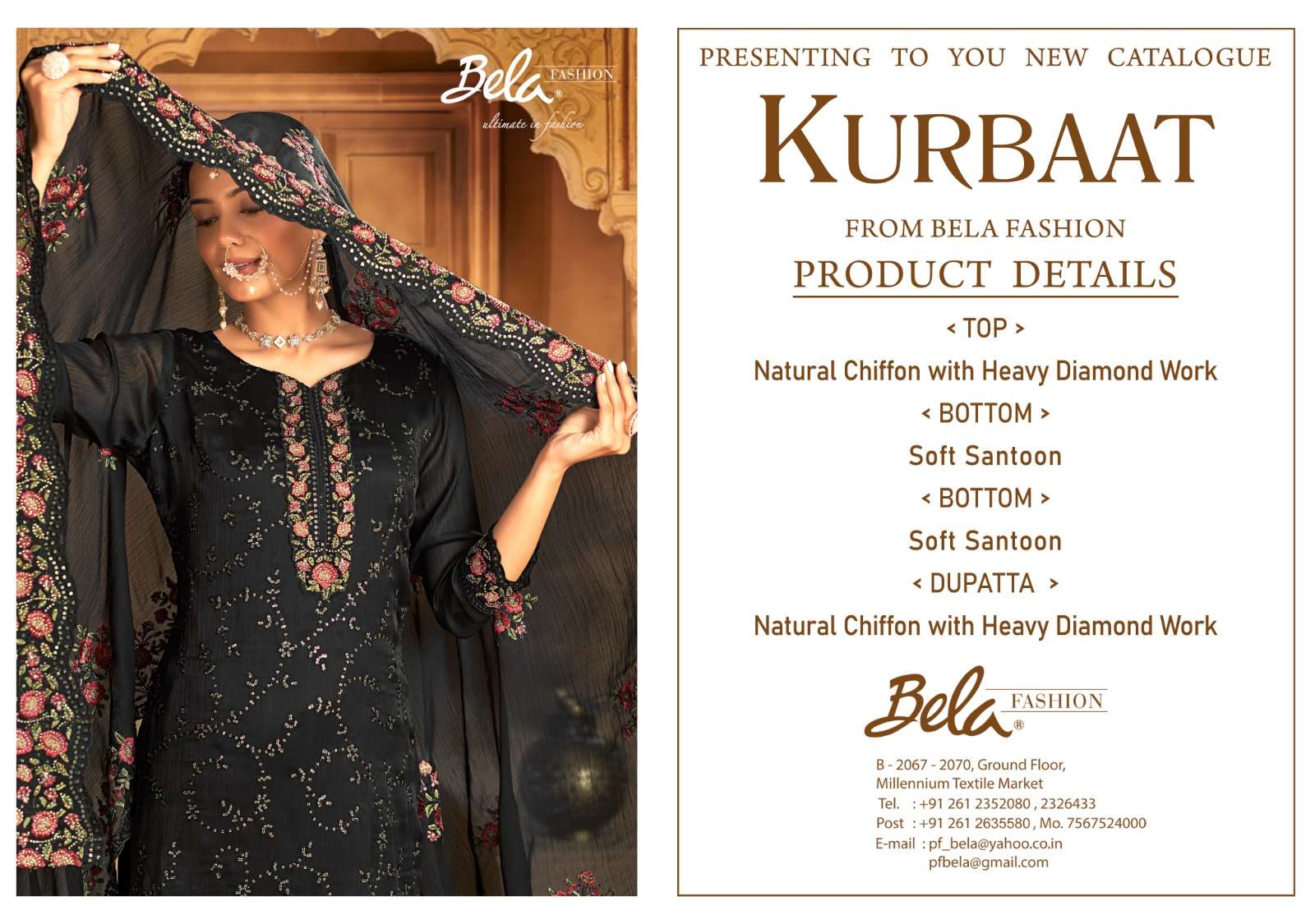 KURBAAT by bela fashion chiffon suit collection manufacturer surat